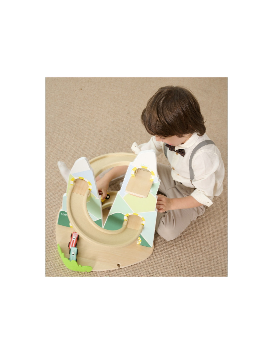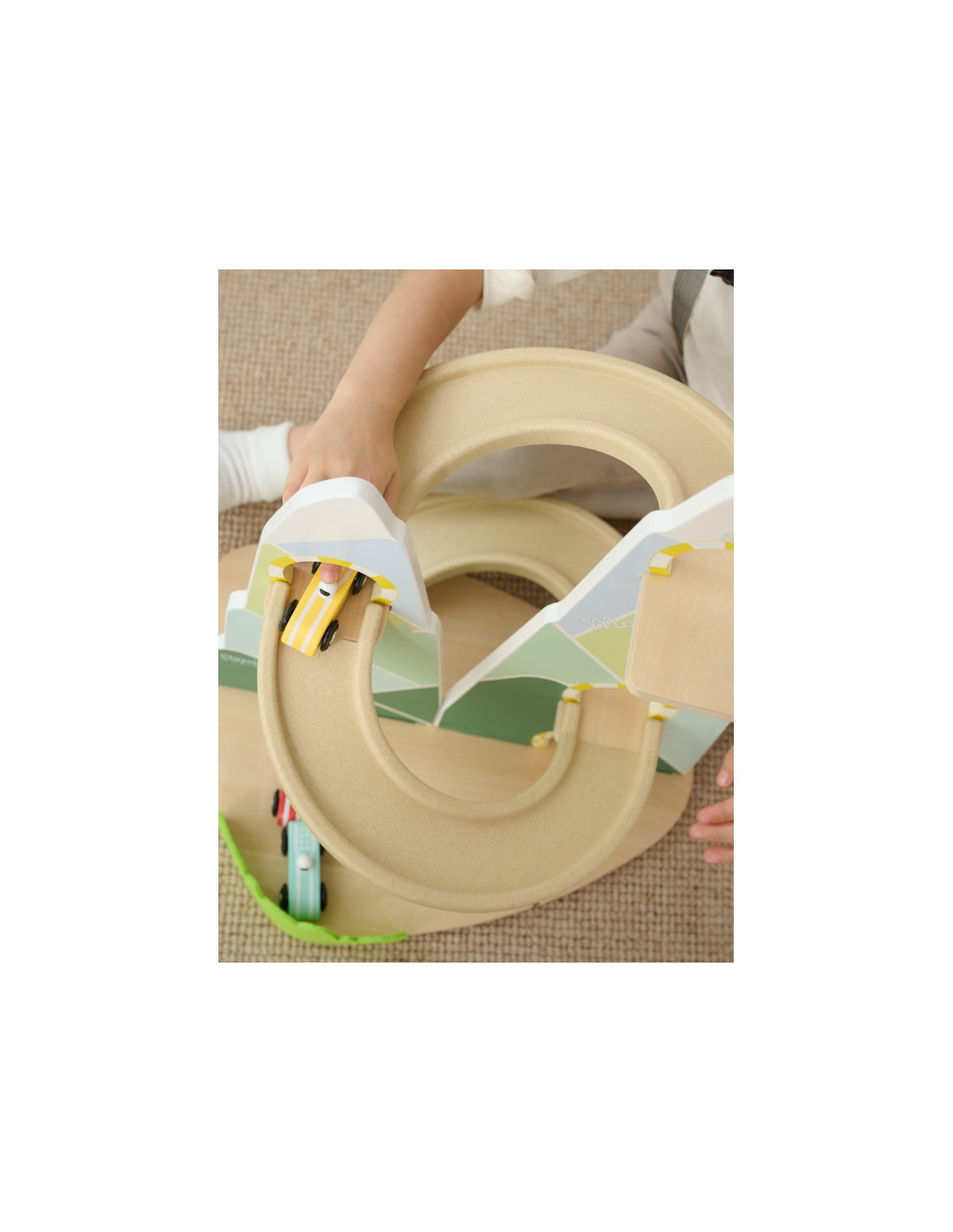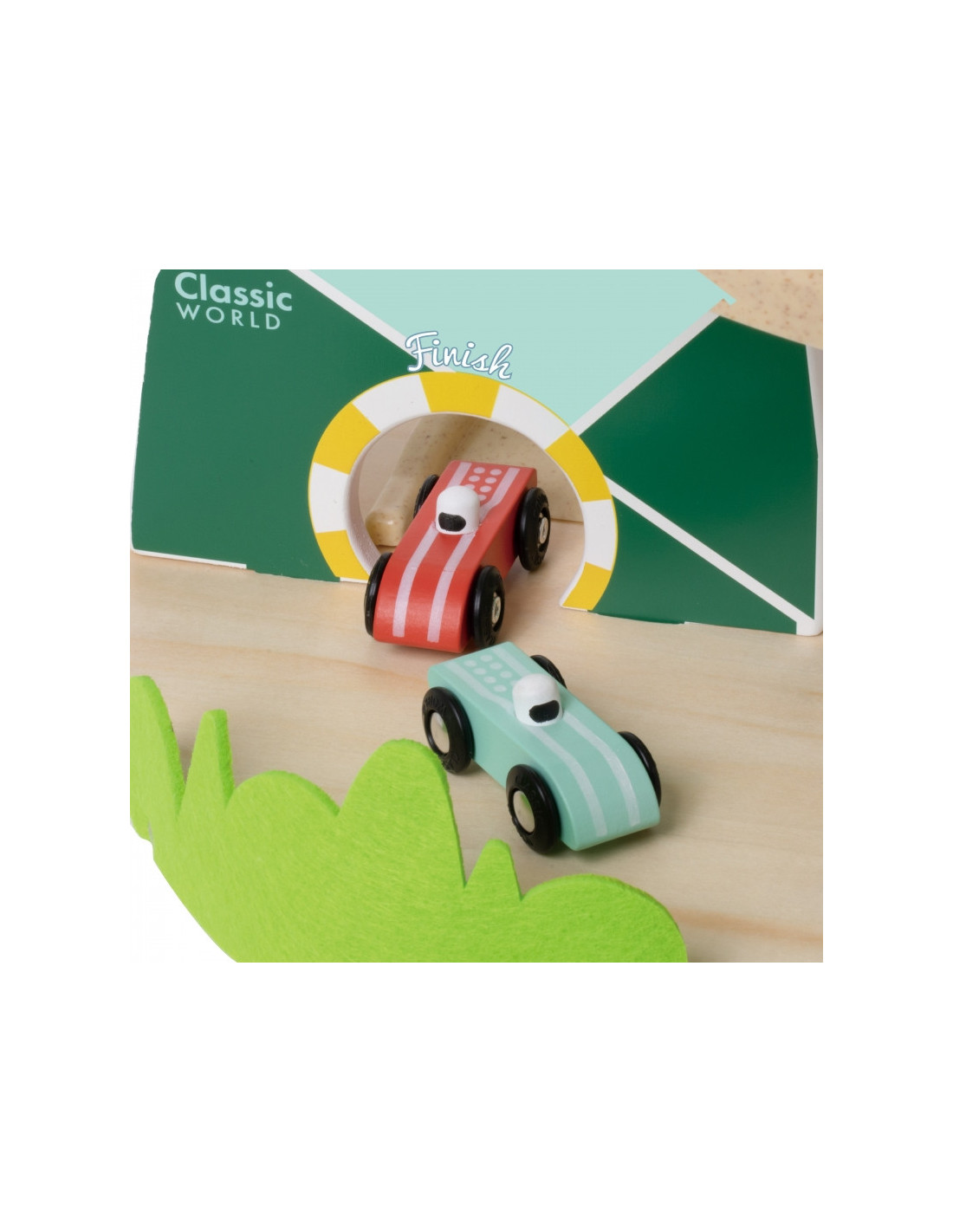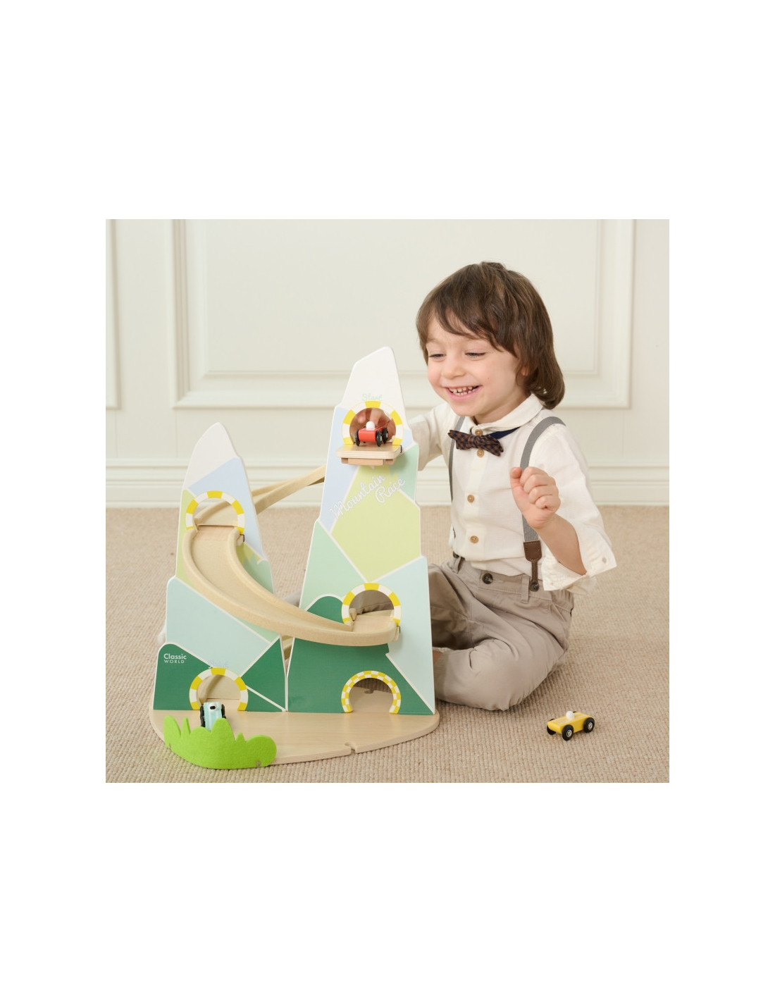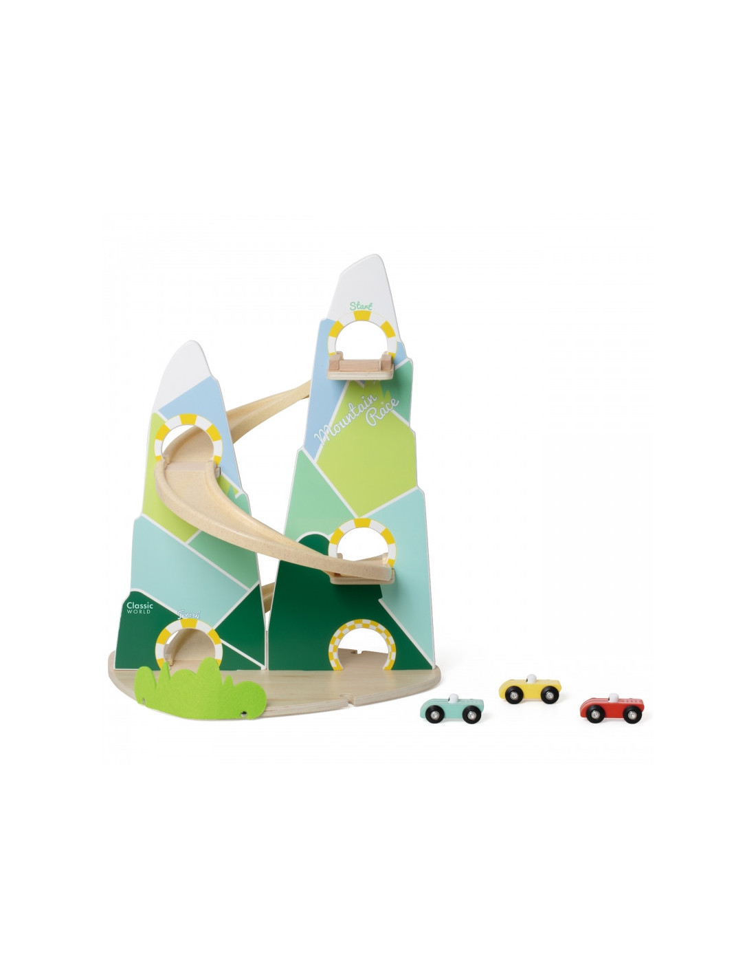 Drewniany Tor wyścigowy od marki Classic World to niezwykła zabawa, która przenosi dzieci w świat pełen emocji wyścigów! Zainspirowany pięknym górskim krajobrazem, jego unikalny kształt dwóch gór zachwyci każdego malucha, a starannie wykonana konstrukcja z drewna i pastelowe kolory będą przyciągać wzrok. Zestaw zawiera 3 kolorowe samochodziki, które zmierzą się na torze pełnym zakrętów. Dzięki bezpiecznemu, pozbawionemu ostrych krawędzi projektowi, tor jest idealny do zabawy nawet dla najmłodszych. To zabawa, która nie tylko rozwesela, ale i uczy logicznego myślenia, wspiera rozwój koordynacji ręka-oko oraz rywalizacji w zdrowej atmosferze.
