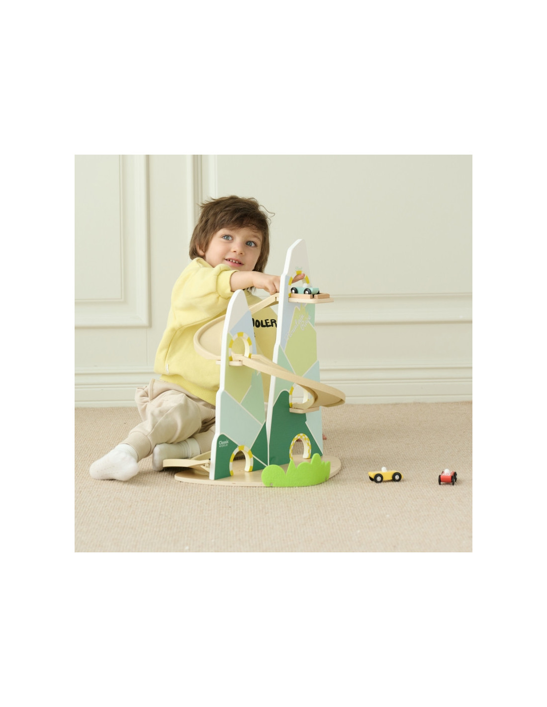 - - Zestaw zawiera tor w kształcie dwóch gór oraz 3 kolorowe samochodziki