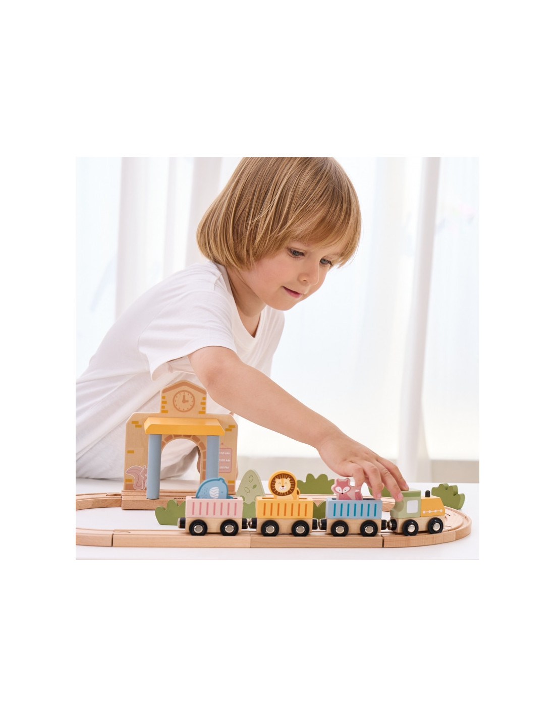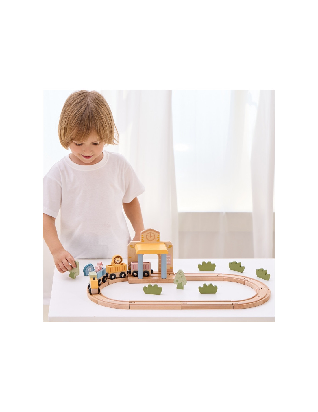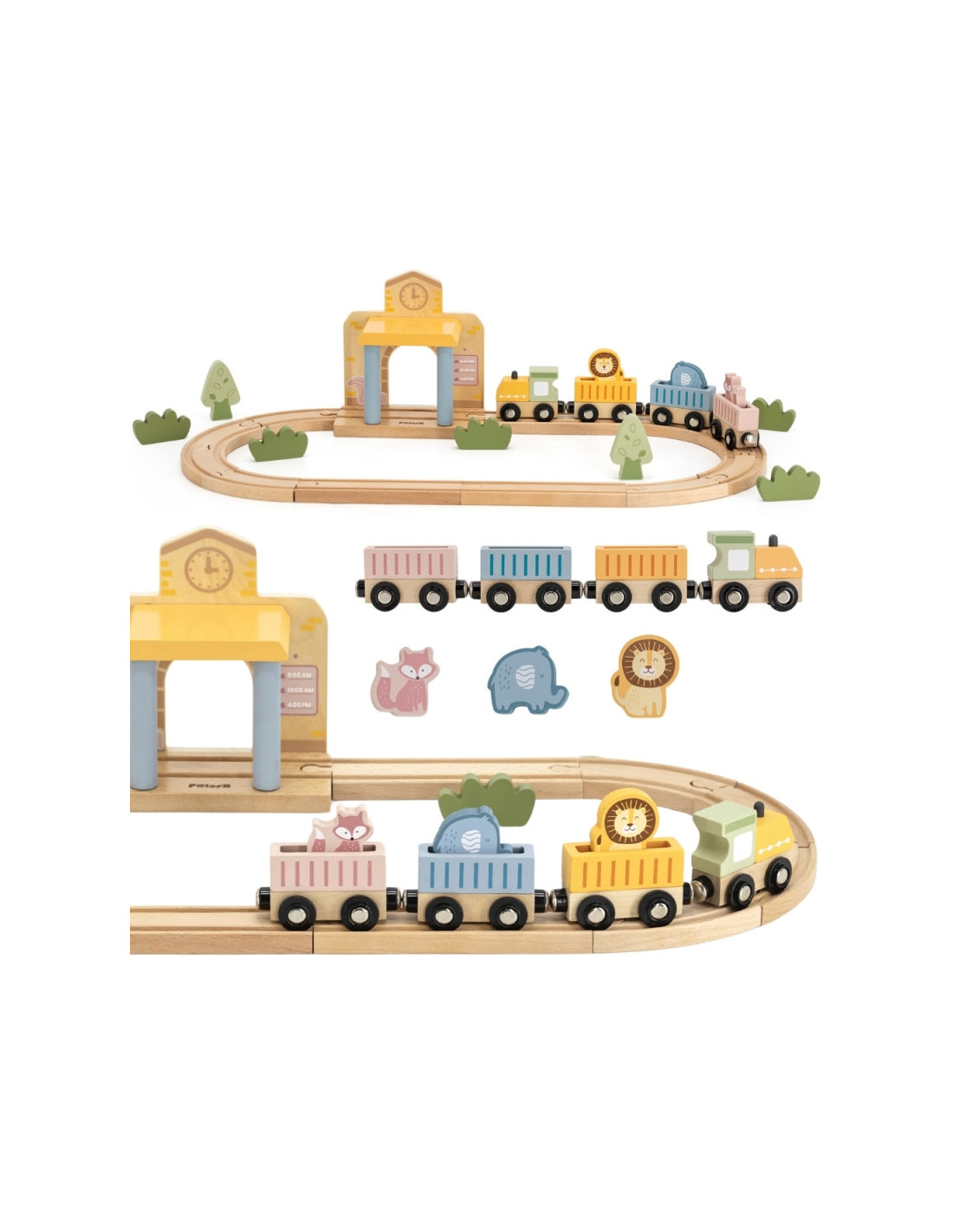 PolarB Drewniany Zestaw Kolejowy 30 el. to doskonała propozycja dla małych miłośników pociągów! Zawiera 30 elementów, w tym różnorodne tory, interaktywną stację oraz akcesoria, które pozwalają na tworzenie własnych scenariuszy zabawy. Dodatkowo dołączona książeczka z przewodnikiem ułatwia budowanie realistycznej scenerii stacji kolejowej. Dzięki funkcji dźwiękowej, uruchamianej magnetycznie podczas przejazdu pociągu przez stację, zabawa staje się jeszcze bardziej angażująca. Drewniane elementy są solidne i trwałe, a ich uniwersalność zachęca dzieci do swobodnej i kreatywnej zabawy.