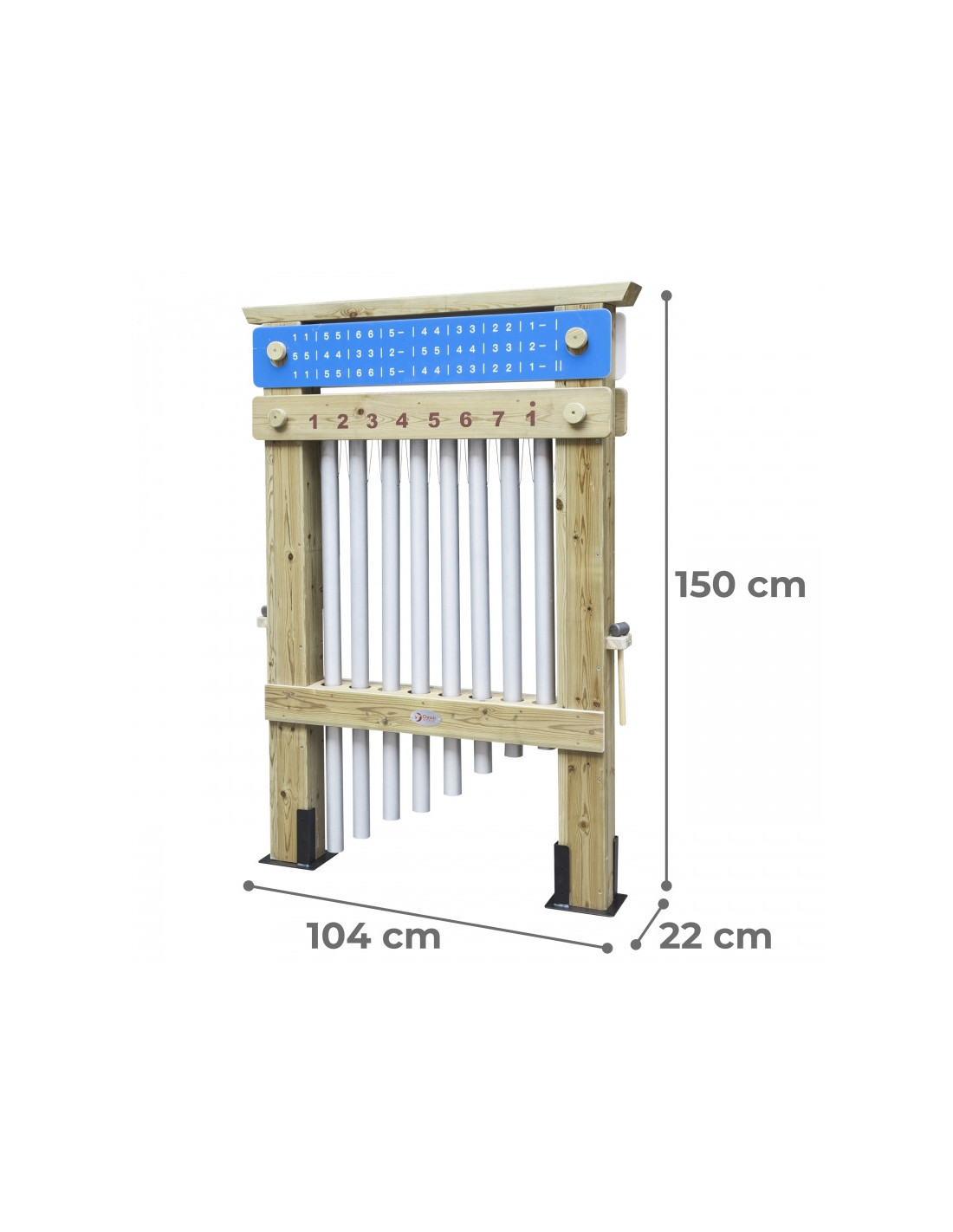 EDU serijos prekės ženklo CLASSIC WORLD didieji varpai pripildys jūsų sodą, žaidimų aikštelę ar bet kurią lauko vietą muzika! Šis nuostabus instrumentas yra puikus būdas įvairaus amžiaus vaikams kurti harmonijas ir ritmus. Be to, tai sukuria galimybes išreikšti save kuriant - tai teigiamai paveiks vaiko drąsą ir pasitikėjimą savimi. Vienoje instrumento pusėje yra kompozicijų pavyzdžiai, kurie supažindins vaiką vėliau kurti savo melodijas. Pagaminta iš aukštos kokybės, oro sąlygoms atsparios medienos iš tvarių šaltinių.