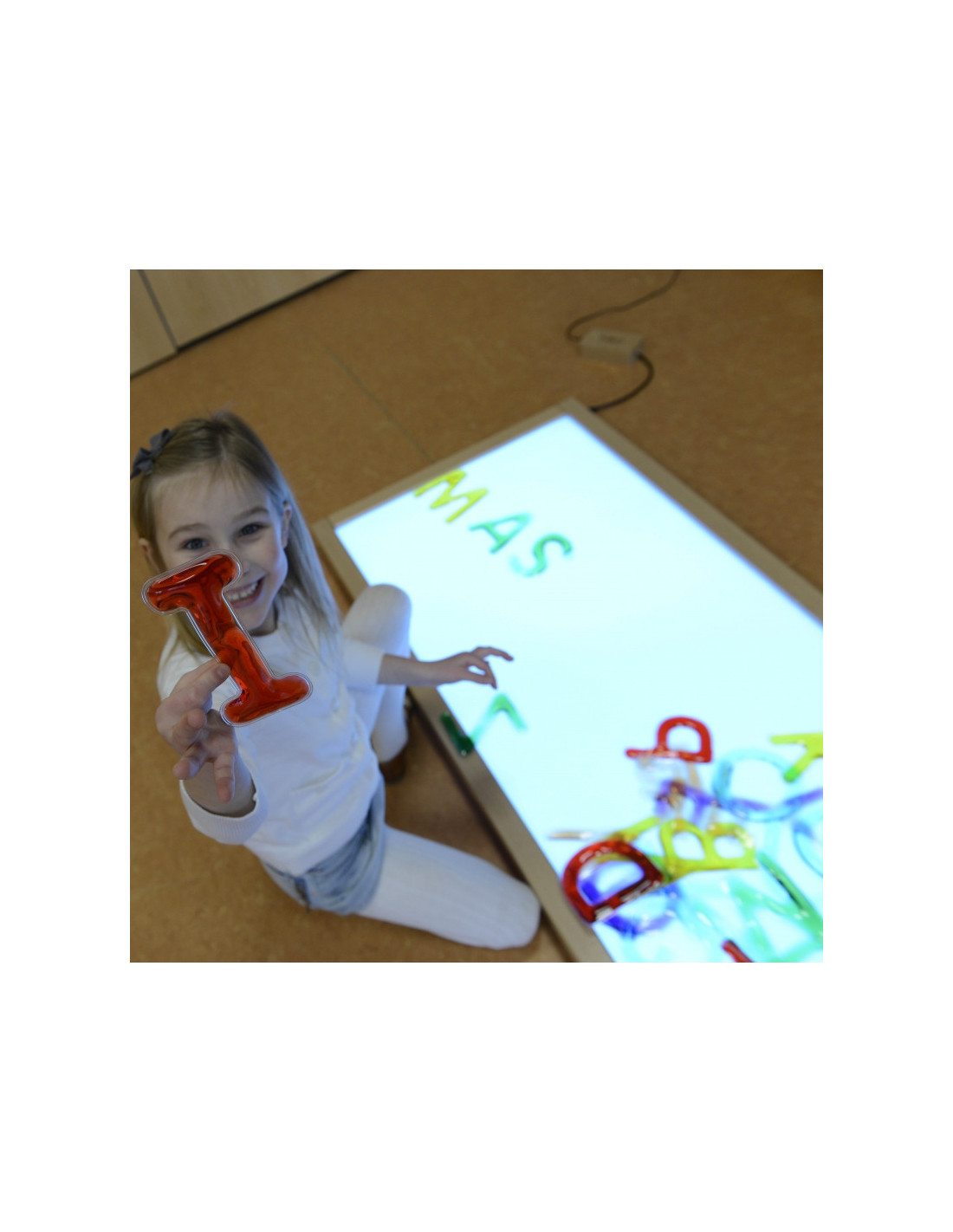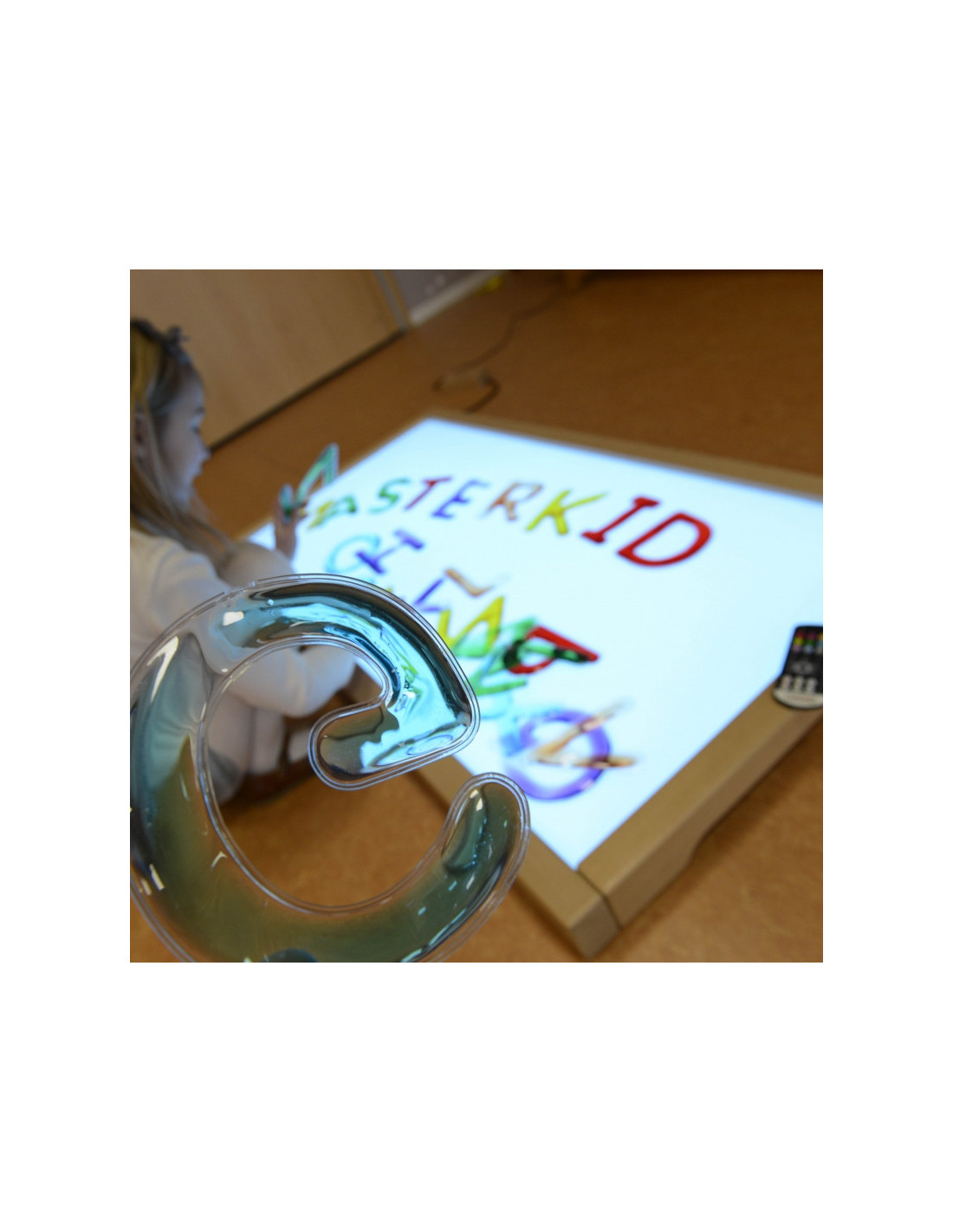 - - dėl skirtingų spalvų ir minkštos struktūros vaikams patiks žiūrėti į elementus prieš šviesą arba dėti elementus ant apšviestos LED plokštės