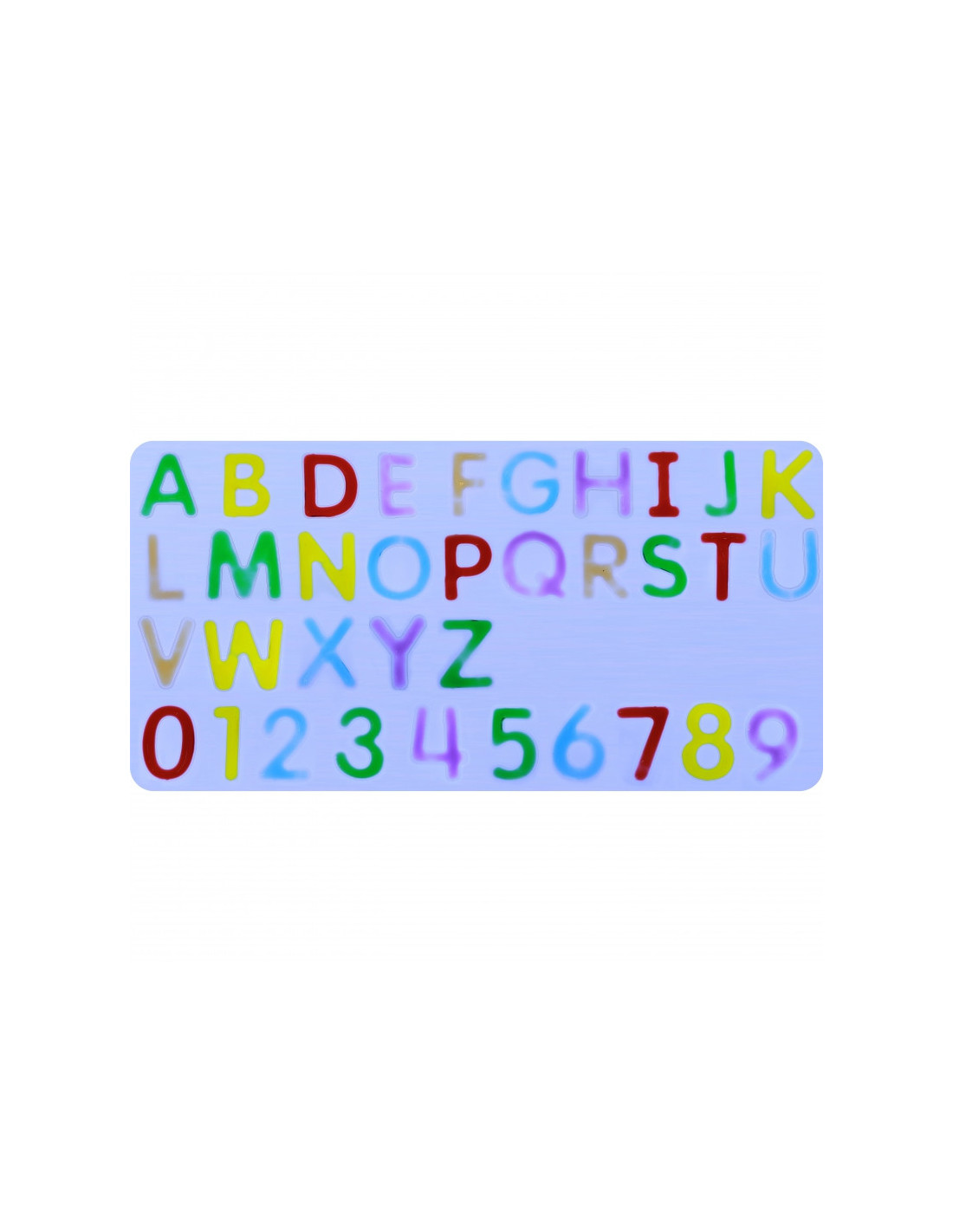 - - rinkinį sudaro 36 minkšti elementai - raidės iš abėcėlės ir skaičiai - skaidriomis spalvomis
