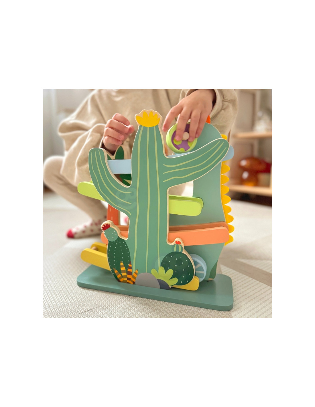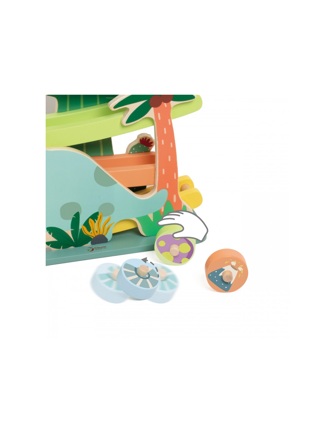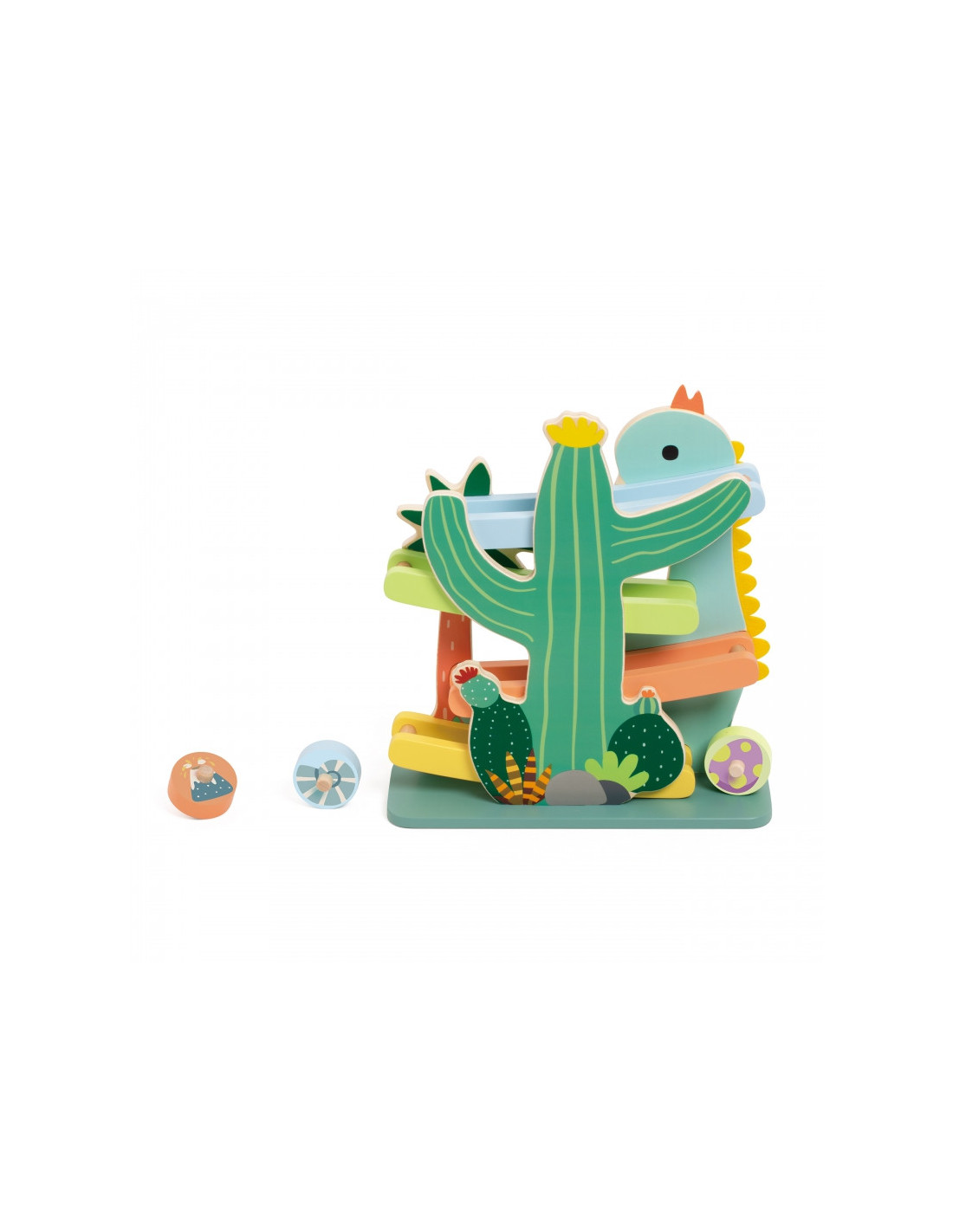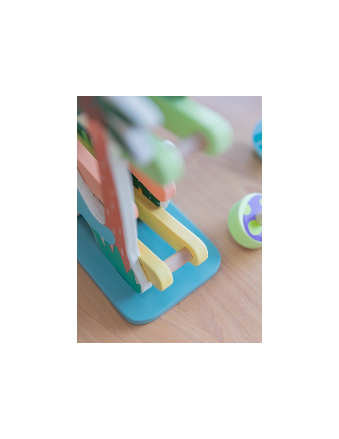 Ta kolorowa zjeżdżalnia dla dinozaurów od marki CLASSIC WORLD to fantastyczna zabawka, która zapewni Twojemu dziecku mnóstwo radości. Składa się z solidnej, drewnianej konstrukcji i 4 uroczych, okrągłych elementów, które inspirują wyobraźnię do przygód w świecie dinozaurów. Poprzez zabawę kinetyczną, maluch może obserwować, jak elementy zjeżdżają w dół toru, co w naturalny sposób uczy go podstawowych zasad fizyki.