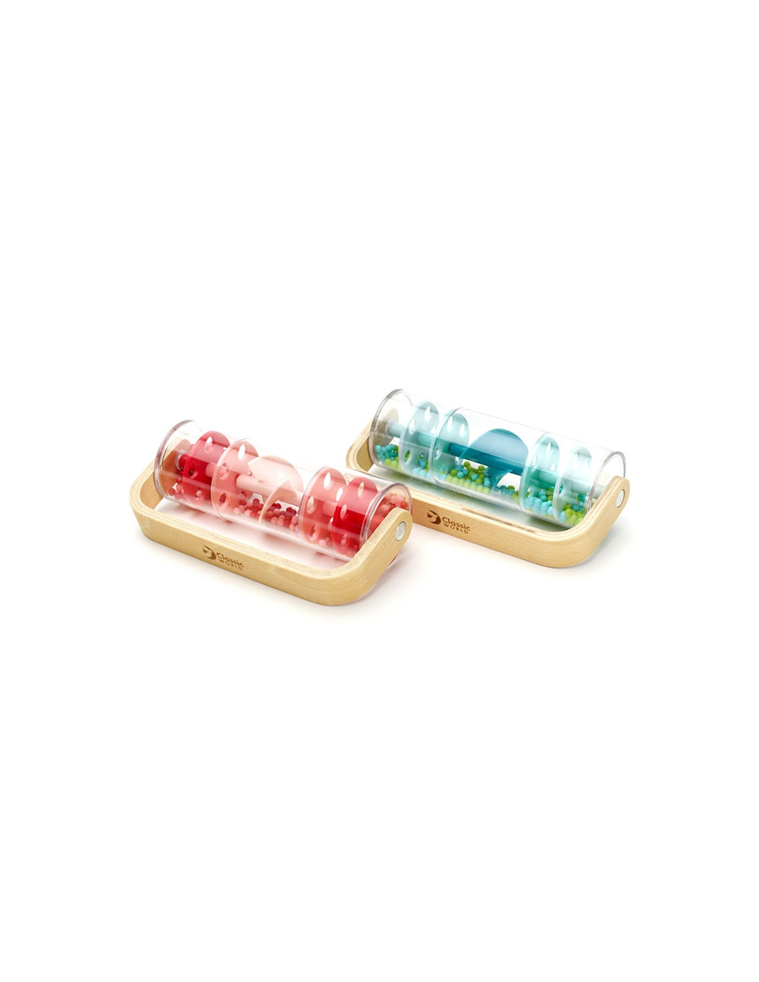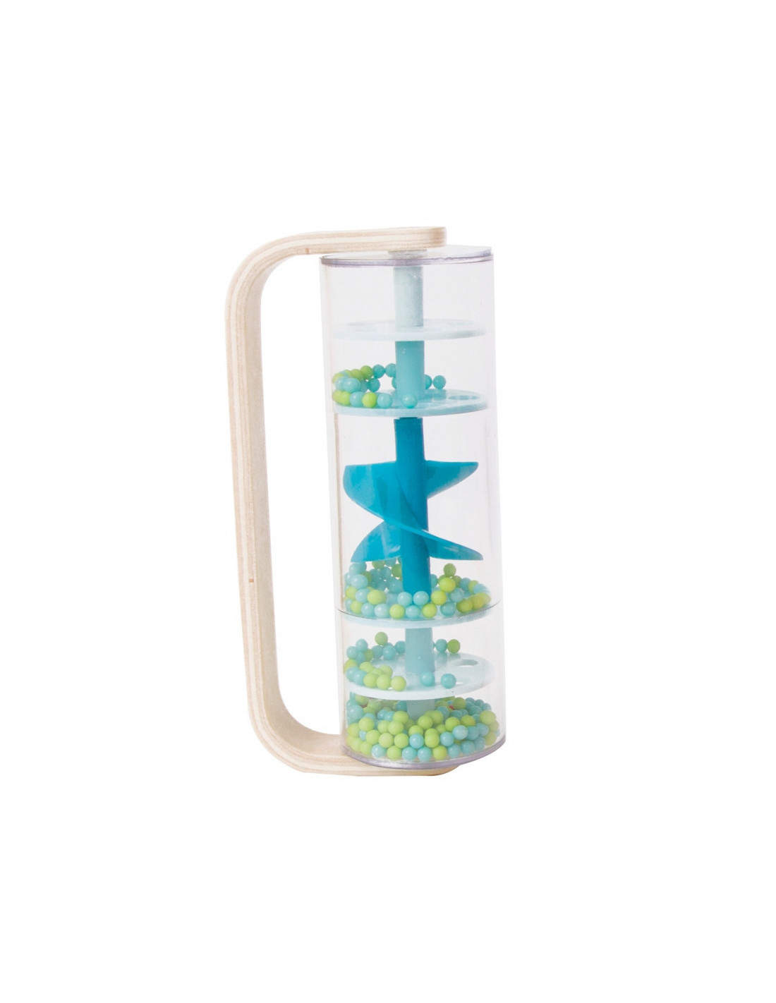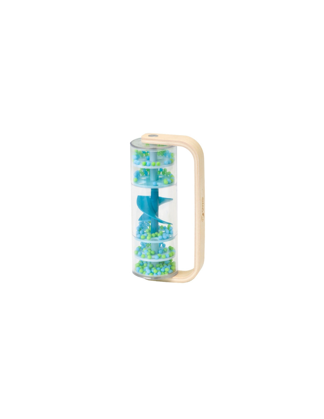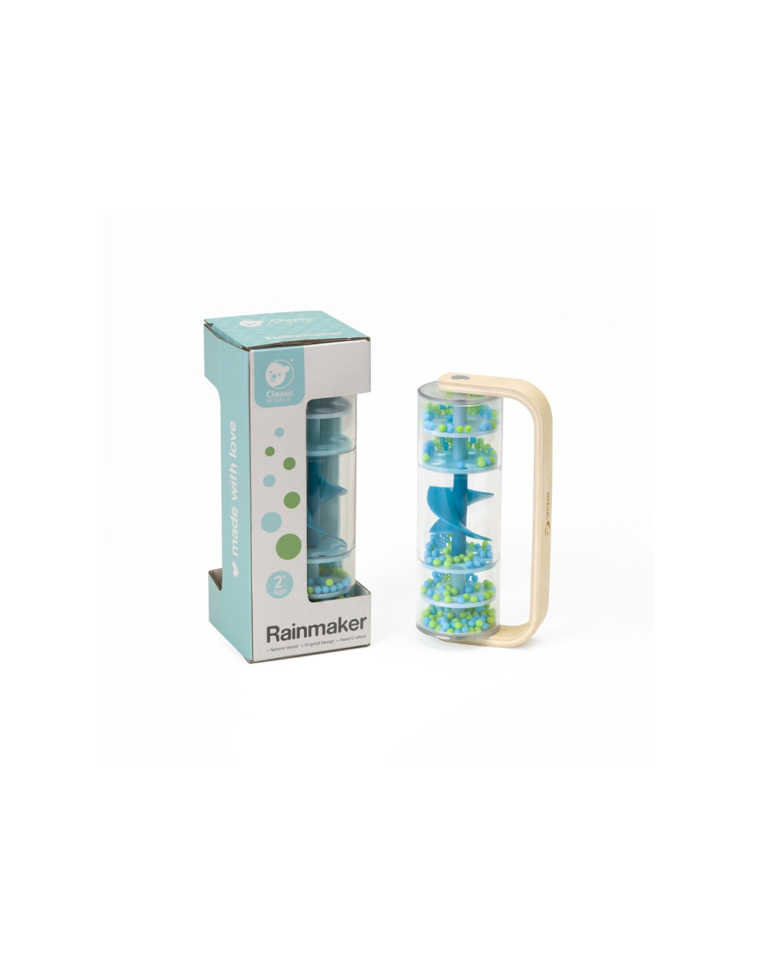 Drewniano-Plastikowa Niebieska Deszczownica z Kuleczkami marki CLASSIC WORLD z przesypującymi się kuleczkami dającymi kojący dźwięk padającego deszczu. Potrząśnij, obróć i obróć, zobacz jak koraliki spadną z góry na dół. Jednym szybkim chwytem możesz przemienić tę zabawkę w grzechotkę, która obraca się o 360 stopni. Świetna propozycja dla rozwoju czuciowego. Idealny rekwizyt do zajęć z rytmiki!
