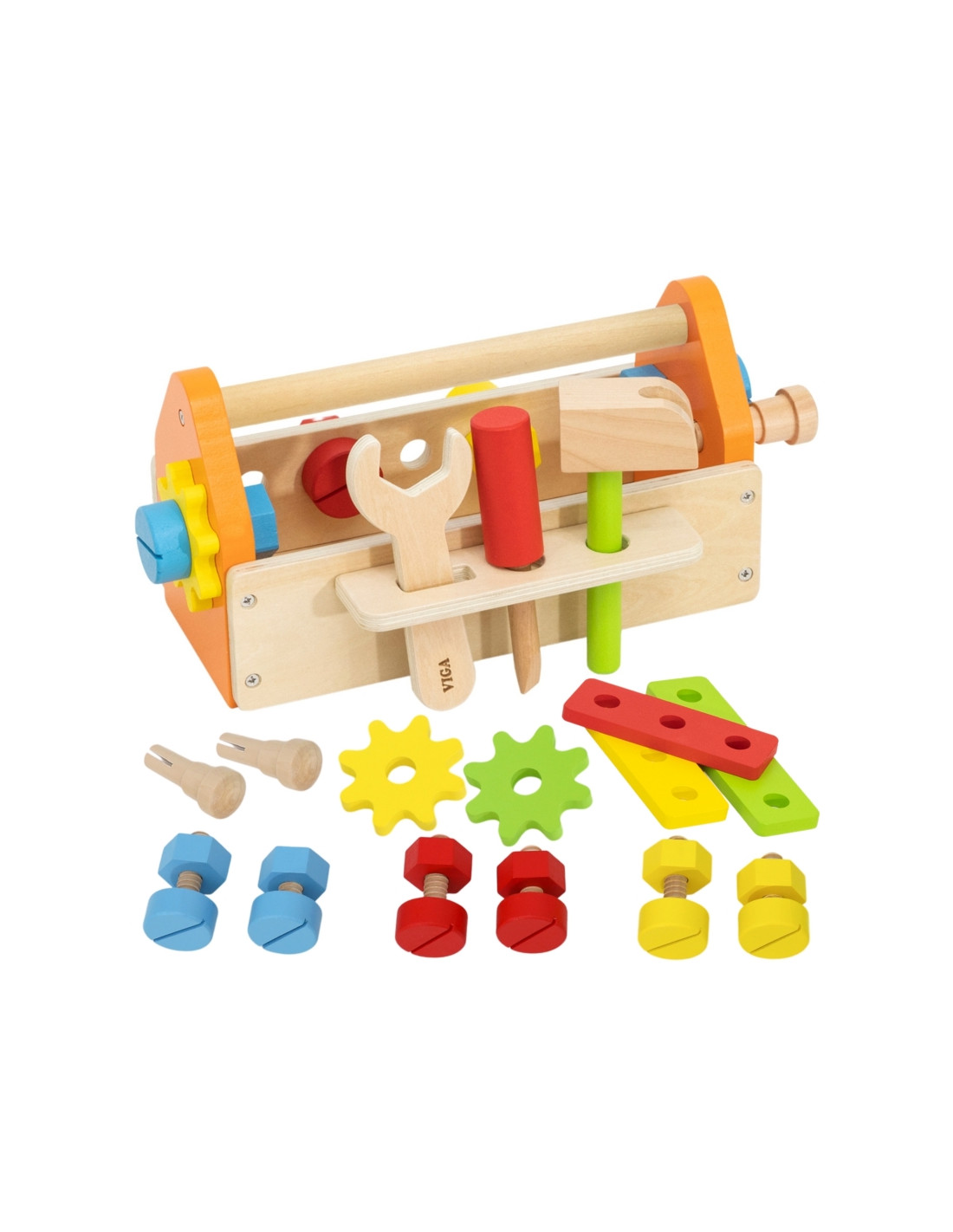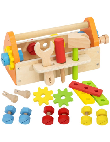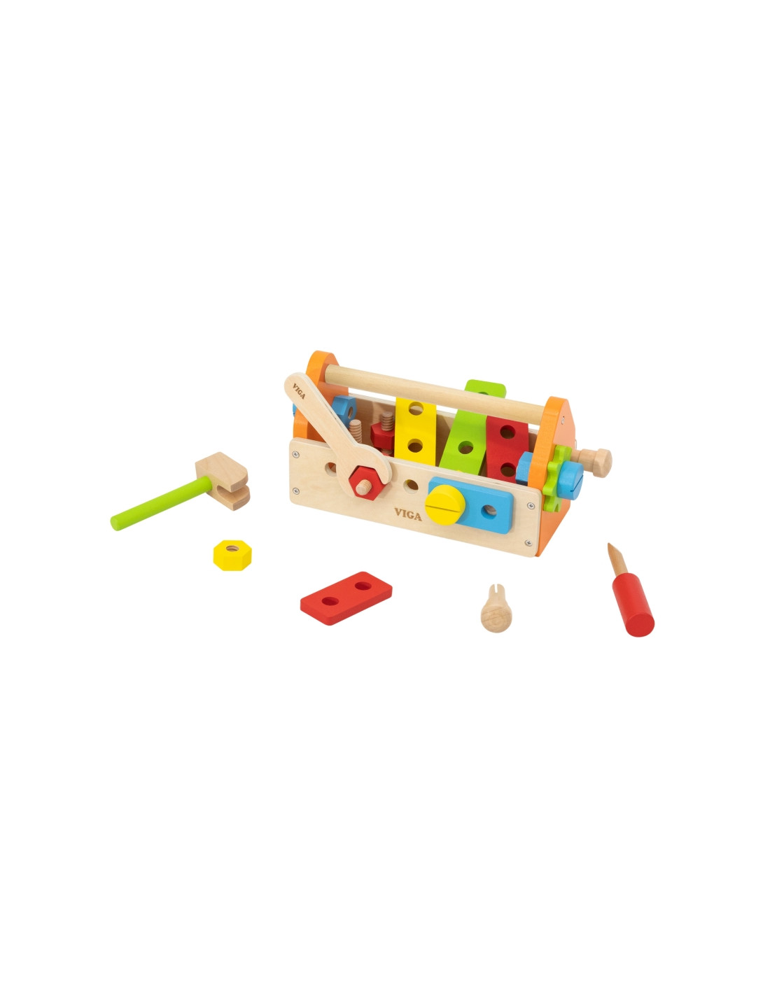 Medinė „Viga“ įrankių dėžė iš „PolarB“ kolekcijos suteiks puikių pramogų bet kuriam mažajam „pasidaryk pats“ entuziastui. Rinkinį sudaro plaktukas , veržliaraktis , atsuktuvas , 4 poros varžtų ir veržlių , kaištis , 2 krumpliaračiai ir 2 plokštės su skylėmis . Vaikai gali tyrinėti įvairius įrankius ir lavinti savo tekinimo, kalimo ir derinimo įgūdžius. Medžioklės užsiėmimas padės lavinti rankų miklumą , žadins smalsumą ir skatins vaikų vaizduotę .