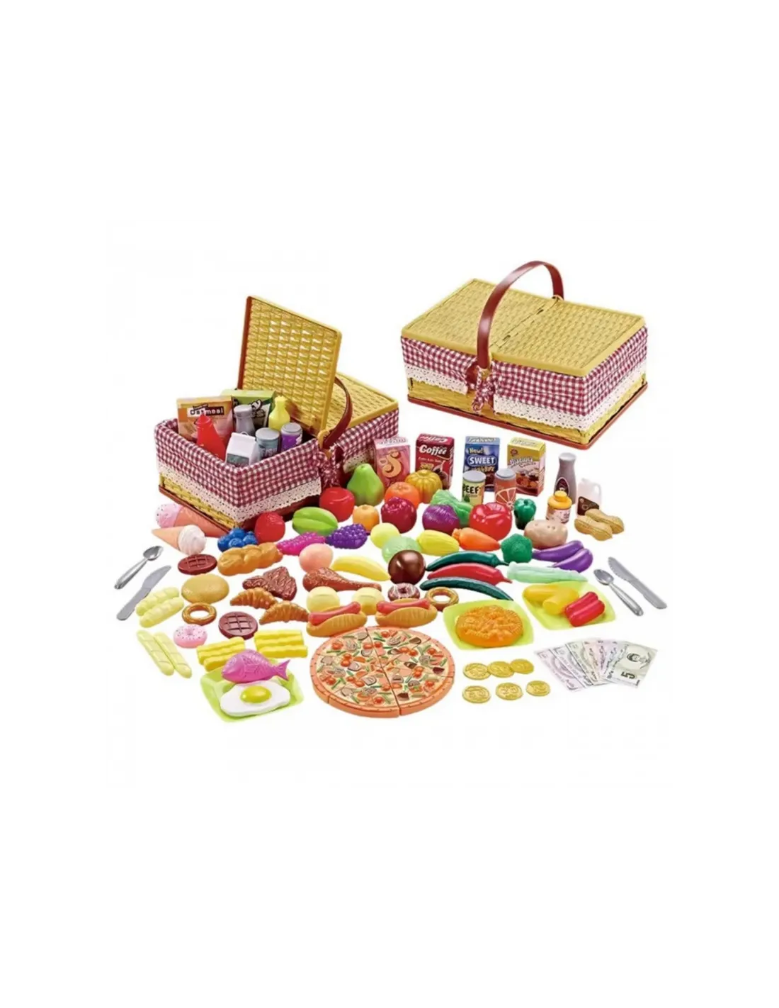 Šis vaikiškas iškylų krepšelis iš Woopie – tikras malonumas mažiesiems, kurie mėgsta žaisti su nameliais, apsipirkti ar gaminti! Tai puikus žaislas praleisti laiką kartu kaip šeima! Nusineškite krepšelį į sodą, terasą, paplūdimį ar iškylą parke ir surengkite nedidelį vakarėlį lauke. Vaikai gali savarankiškai rinkti maistą, ruošti vaišes meškiukams ir lėlėms arba pavaišinti tėvelius pica ir desertu. Šis rinkinys supažindina vaikus su vaidmenų žaidimų, socialinės sąveikos ir kulinarinių nuotykių pasauliu, kartu skatindamas jų vystymąsi. Valgymas lauke, net ir žaidžiant, moko maisto etiketo, dalijimosi ir ugdo socialinį sąmoningumą. Su 103 realistiškomis detalėmis žaidimas tampa neįtikėtinai įvairus ir įkvepiantis. Rinkinys supakuotas žavingame iškylų krepšelyje su rankena ir užrakinamu dangteliu, primenančiame klasikinį pintą krepšį – papuoštą raudonai baltu languotu raštu ir nėrinių juostele. Jį lengva surinkti ir išardyti , todėl jis puikiai tinka tiek namams, tiek kelionėms. Pagamintas iš patvarių, saugių medžiagų , atitinkančių visus vaikų saugos standartus, šis rinkinys leidžia jūsų vaikui žaisti vienam arba su broliais ir seserimis bei draugais, mokantis dalintis, planuoti valgius ir prekybos pagrindų.
