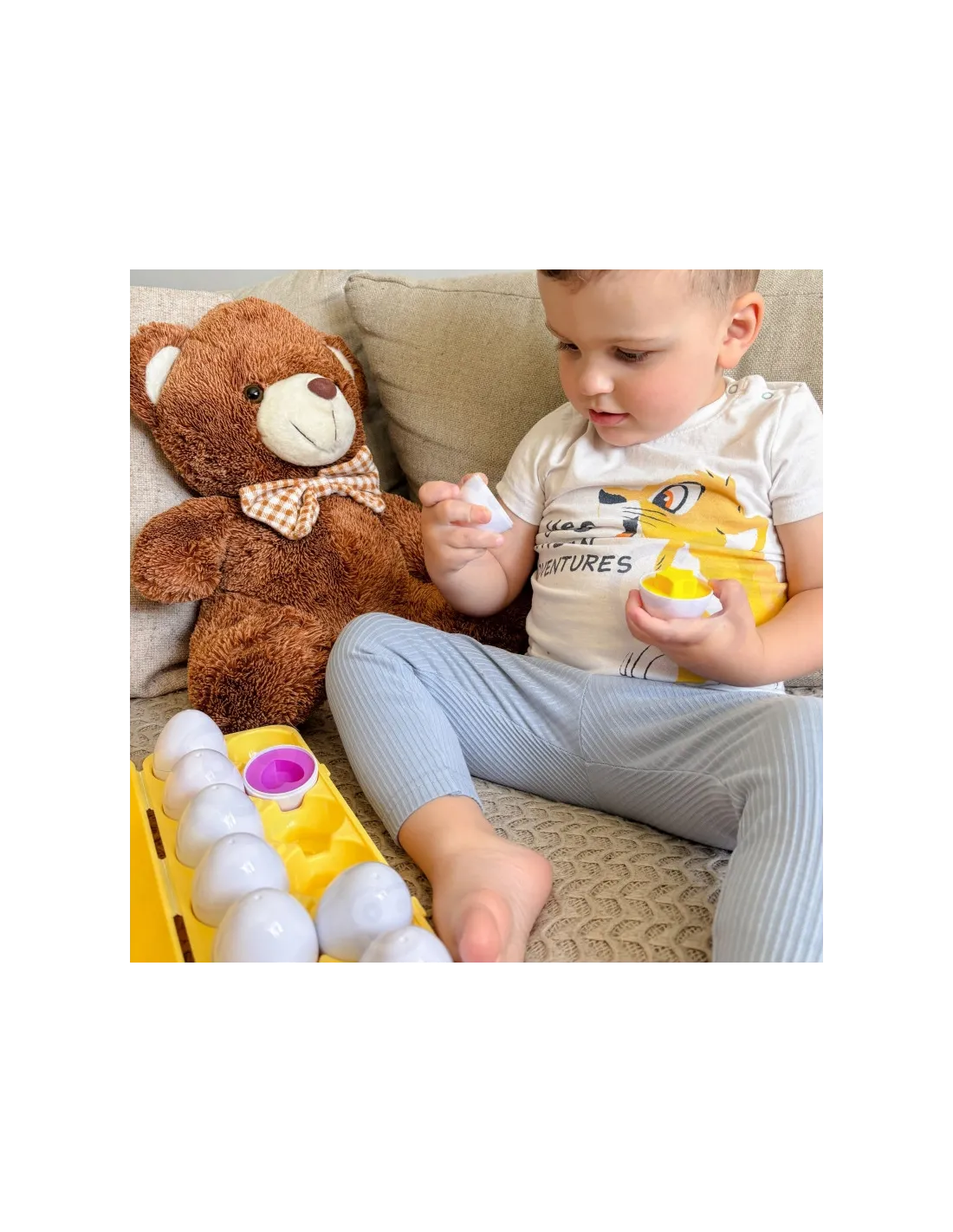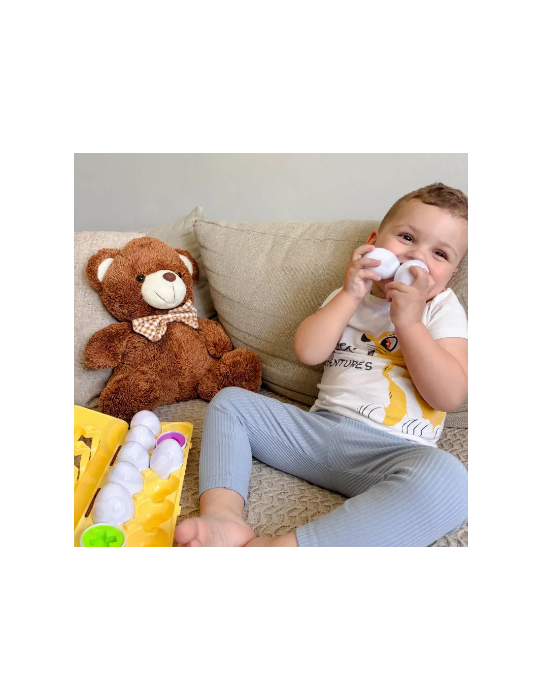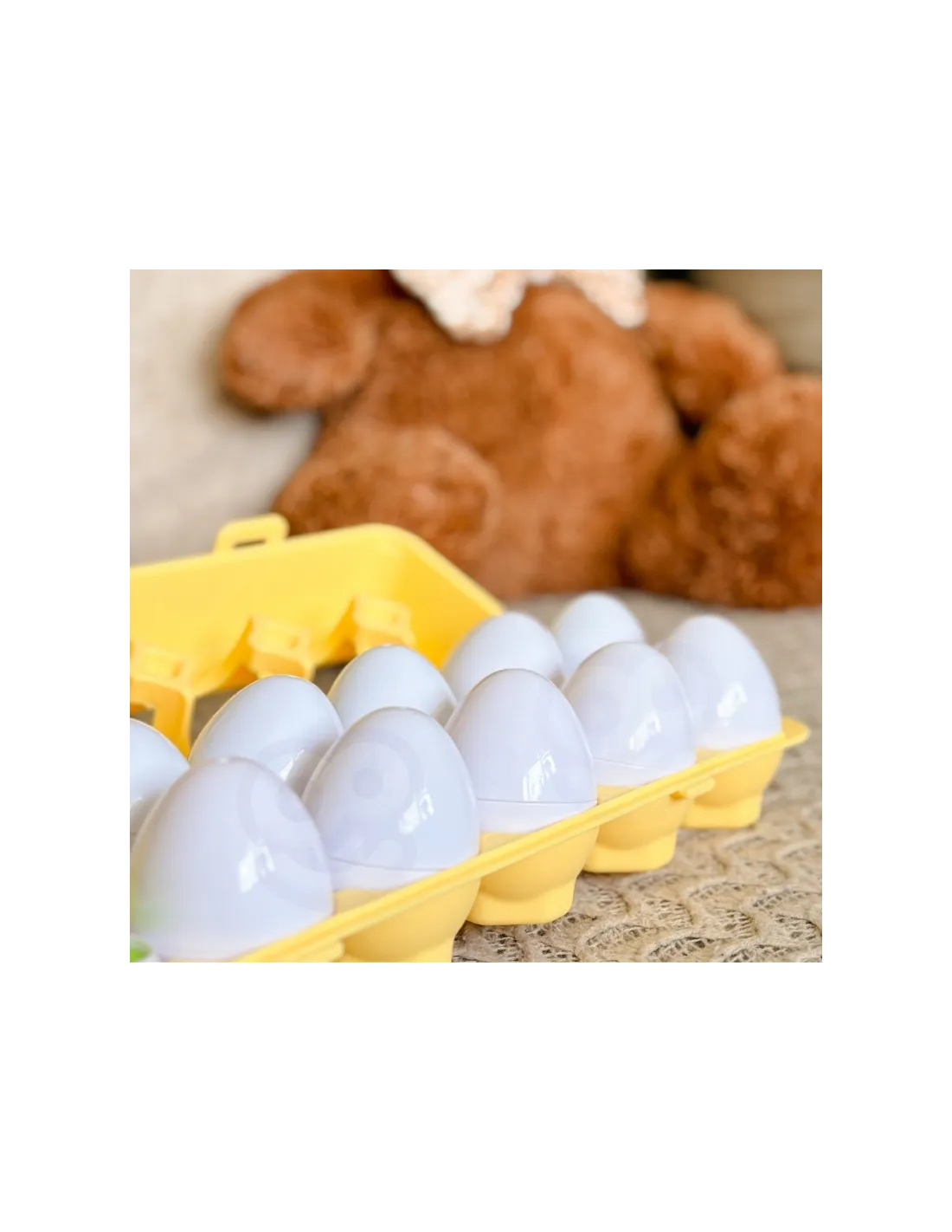„WOOPIE“ Montessori kiaušiniai yra lavinamasis žaislas, lavinantis vaikų motorinius įgūdžius ir akių bei rankų koordinaciją. Rinkinį sudaro 12 baltų, kartoninių kiaušinių , kurie skatina žaisti su spalvingais, įvairių formų vidumi. Žaidimas susideda iš dviejų kiaušinių pusių, kurios sujungiamos, kad sudarytų visumą. Kiaušiniai turi būti vienodos spalvos ir formos .