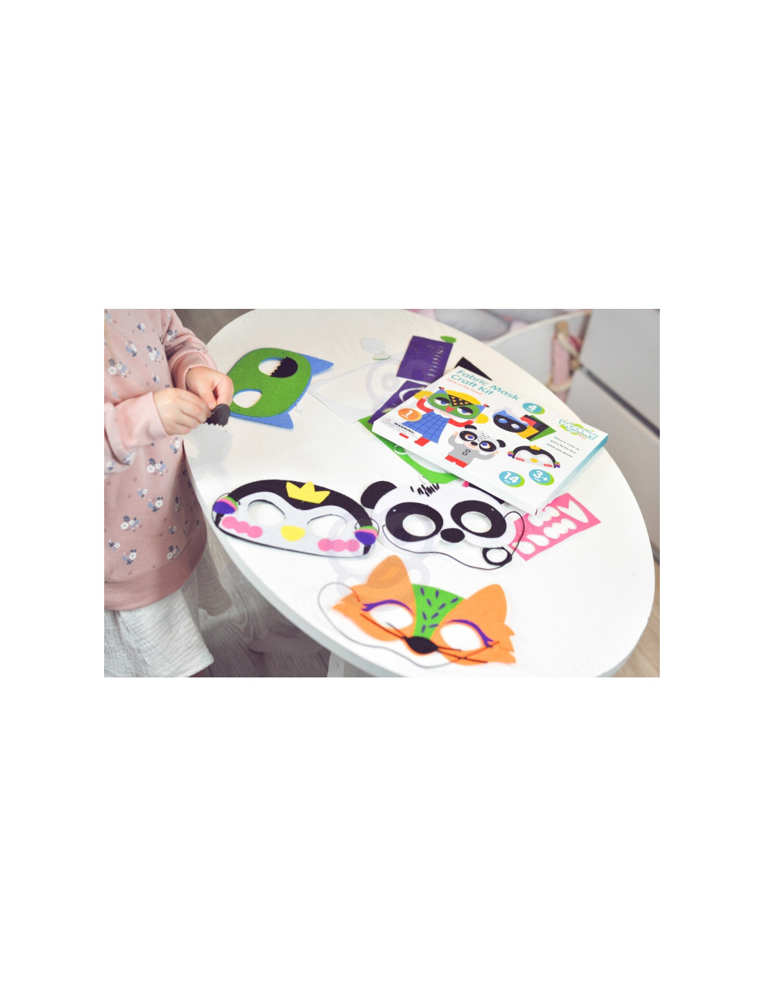 ART&FUN serijos WOOPIE prekės ženklo "Mask Factory Party Creative Set in the Forest" suteiks kūrybinių pramogų vienam ar su draugais! Rinkinys suteikia įdomią žaidimo formą, kuri suteiks daug pasitenkinimo kūryba. Vaikas gali susikurti savo gyvūnų kaukę iš miško. Rinkinys leidžia sukurti 4 skirtingas kaukes. Rinkinyje yra 14 dalių: be 4 kaukių pagrindų, 5 lentos su 75 elementais 5 skirtingų spalvų dekoravimui ir 4 stygos, kurias galima lengvai reguliuoti, kad kaukė priglustų prie vaiko galvos. Lengva pagaminti - elementus nuo lentų galima lengvai atskirti ir tiesiog nuplėšti popierių nuo lipnaus dugno ir uždėti elementus ant kaukės - Nereikia klijų ir žirklių. Kaukės ir elementai pagaminti iš veltinio. Galite laisvai derinti elementus tarpusavyje - vienintelė riba yra jūsų vaizduotė! Pakuotės gale yra kaukių gamybos pavyzdžiai. Sukūrę kaukes, vaikas ir draugai gali žaisti meno žaidimus, papildomai lavinti vaikų rankinius įgūdžius, vadinamuosius "smulkiąją motoriką". Rinkinys yra puiki idėja žaisti su draugais, sukūrę kaukes, vaikai gali žaisti ir atlikti įvairius vaidmenis!