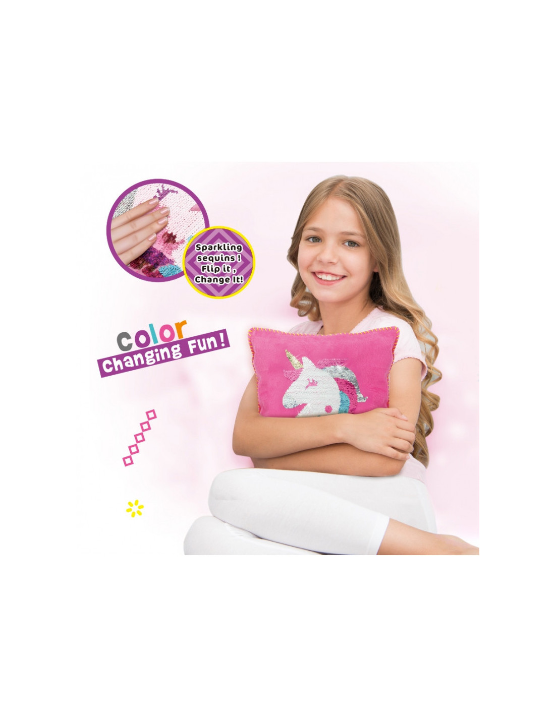 ART&FUN serijos WOOPIE prekės ženklo vienaragio pagalvė supažindins jūsų vaiką su mados pasauliu! Kūrybinis rinkinys kiekvienam. Komplektą sudaro: pagalvės užvalkalas, pagalvė, blizgučiai, adata ir nieko. Pati pagalvės siuvimas yra paprastas, tai gali padaryti kiekvienas - tereikia šiek tiek vaizduotės ir kūrybiškumo! Paruošta pagalvė turi įdomią savybę: ją trinant, ji keičia spalvą. Rinkinys lavina pirmuosius pomėgius, tokius kaip siuvimas ir mada, kantrybė ir, svarbiausia, rankiniai įgūdžiai!