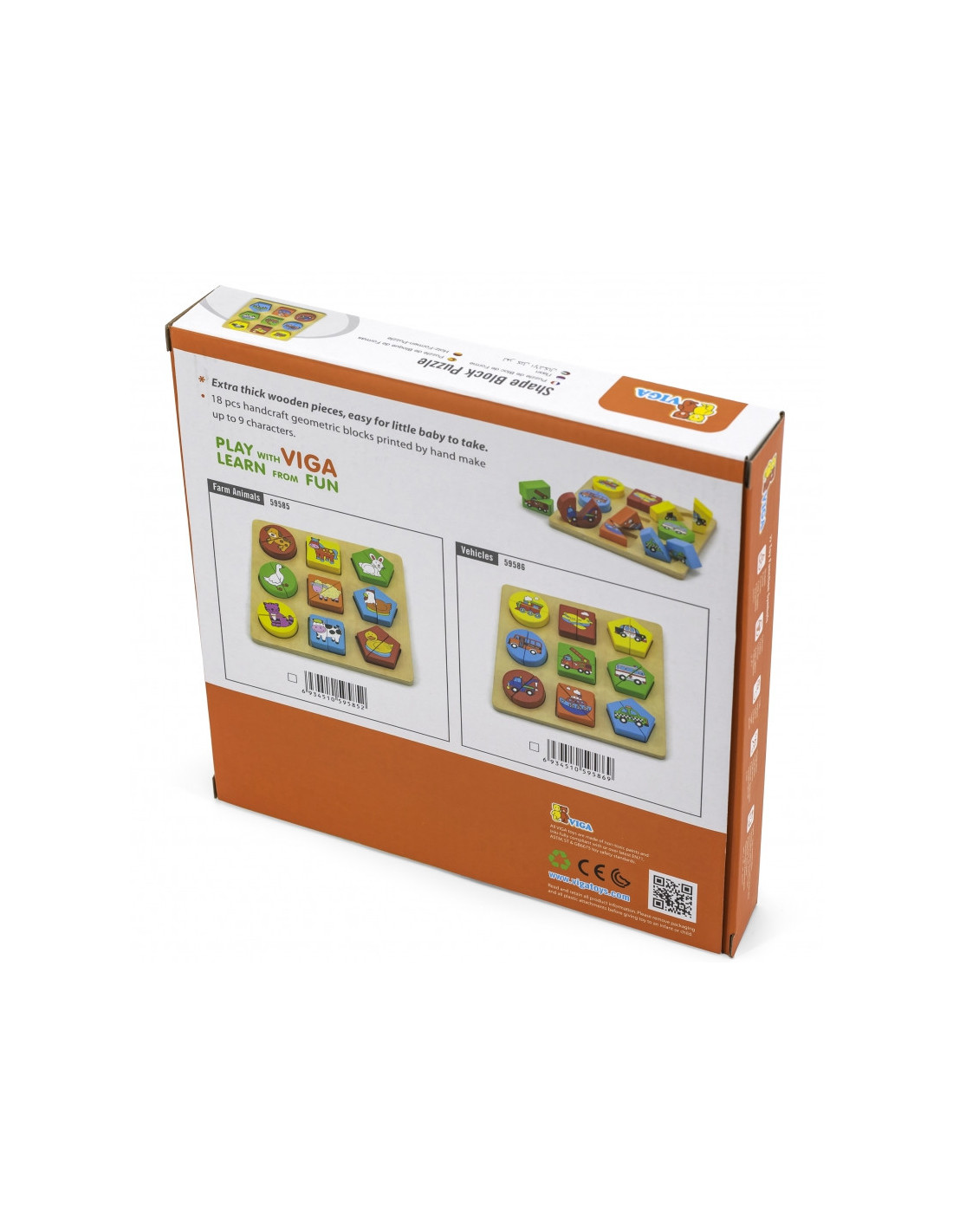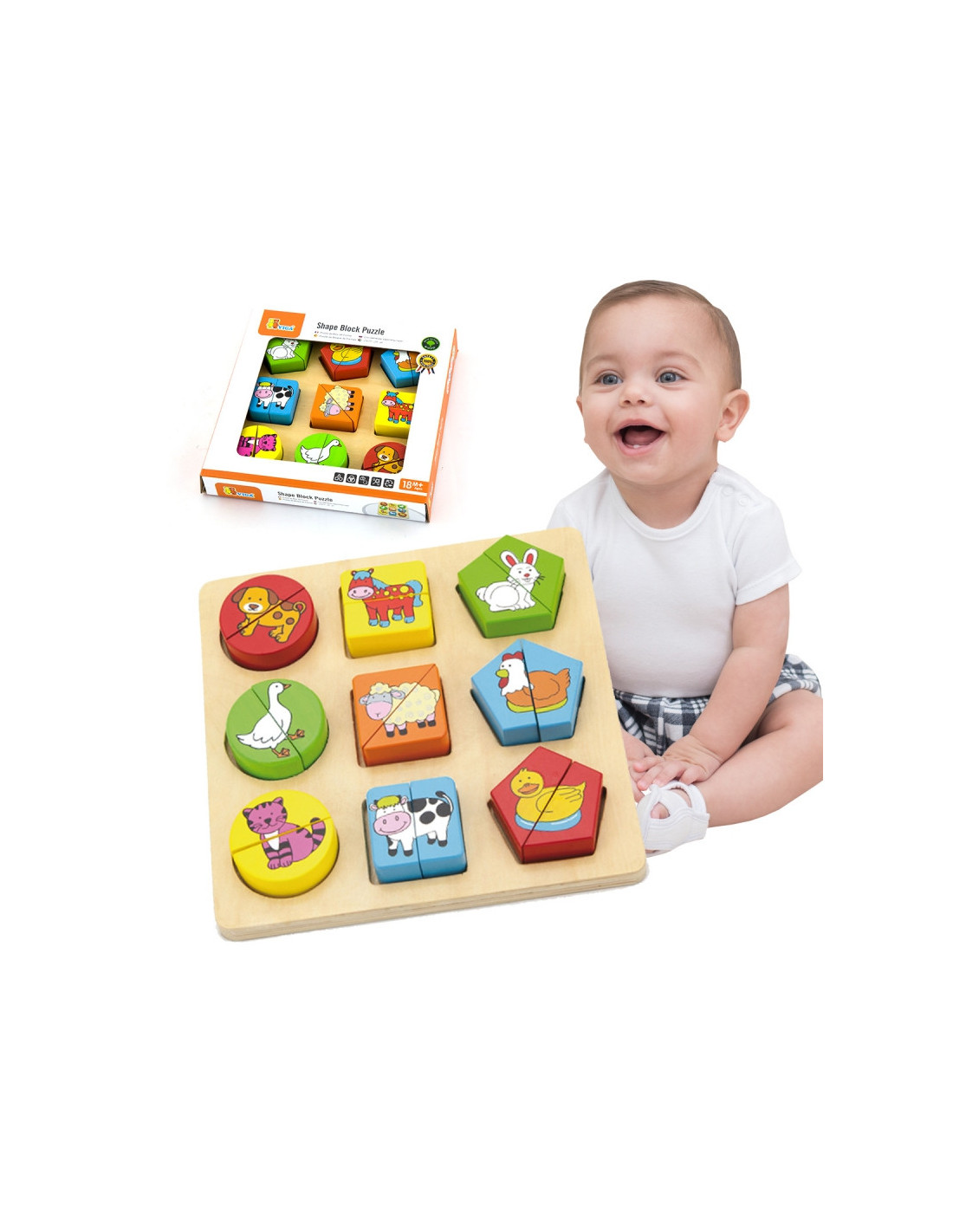 Edukaciniai blokai su paveikslėliais, vaizduojančiais gyvūnus. Jie pagaminti tik iš medžio ir dažyti spalvingais dažais. Blokai turi 18 elementų - kiekvienas iš jų yra padalintas per pusę, o vaiko užduotis yra juos sujungti ir sudėti į specialius rėmus. Tokiu būdu vaikas pirmiausia mokosi spalvų ir formų.