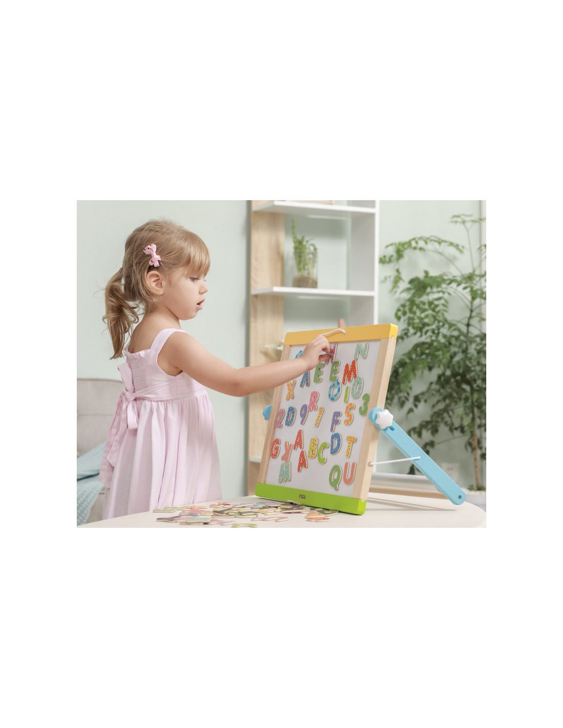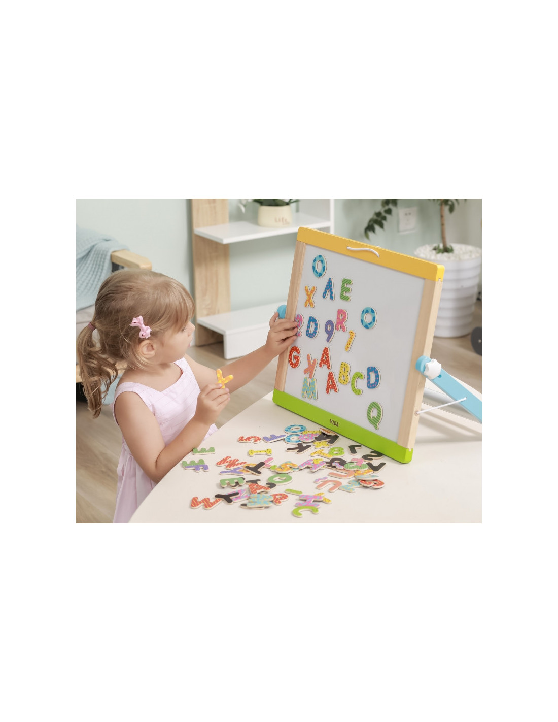 Šis medinis magnetinių raidžių ir skaičių rinkinys iš VIGA yra puiki dėlionė, kuri lavina rankinius įgūdžius, moko abėcėlės ir padeda vaikams įgyti pirmųjų matematikos įgūdžių. Jį sudaro 77 detalės , įskaitant skaičius ir raides. Jas galima pritvirtinti prie magnetinės lentos arba šaldytuvo. Žaisdamas jūsų vaikas mokosi spalvų, abėcėlės ir skaičiavimo. Jie sudaro žodžius, o vėliau ir sakinius. Matematinių simbolių dėka jie gali išmokti sudėti ir atimti. Dabar jūsų vaikas lengvai įgis ankstyvojo ikimokyklinio amžiaus žinių.