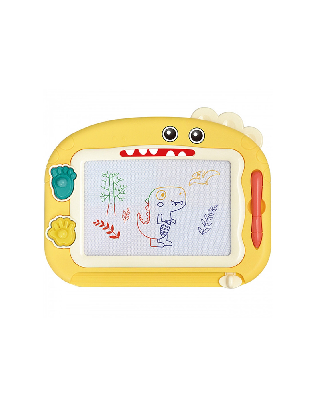 Znikopis Tablica Magnetyczna daje możliwość kreatywnej zabawy na długi czas! Tablica zachęca do pisania i rysowania. Rysowanie pozwoli skoncentrować, wyciszyć i uspokoić Twoje dziecko. Znikopis pozwala na tworzenie nieskończonej ilość obrazków – wystarczy przejechać specjalnym suwakiem, a rysunek zniknie i można rysować od nowa! Zestaw dodatkowo zawiera wygodny magiczny długopis oraz 2 stempelki, które urozmaicą dzieło. Tablica posiada wygodny uchwyt, dzięki czemu dziecko może zabrać ją wszędzie. Znikopis rozwinie u dziecka zdolności manualne, wyobraźnie, kreatywność oraz da szansę na rozwinięcie artystycznej strony dziecka!