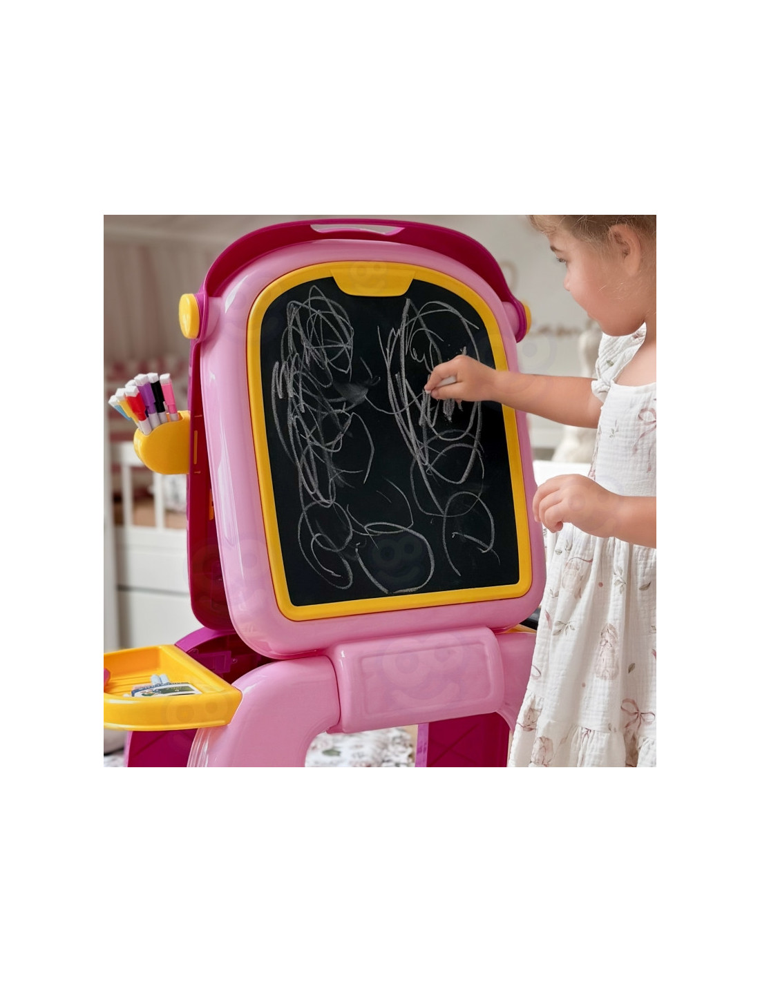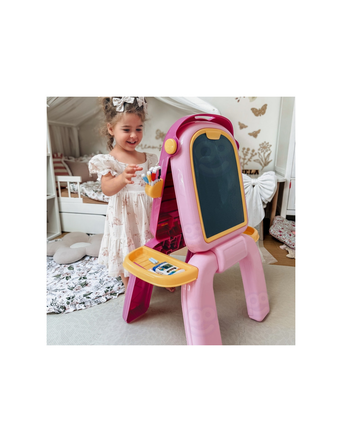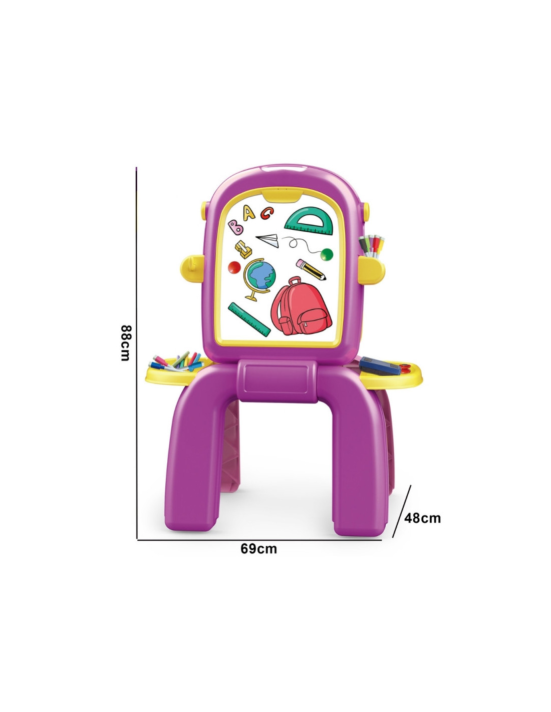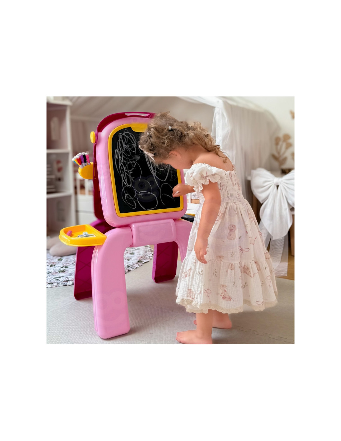 Ši unikali, spalvinga 2 viename lenta yra puikus sprendimas kiekvienam mažajam menininkui, tyrinėtojui ir mokiniui . Jūsų vaikas galės piešti, rašyti, mokytis raidžių ir skaičių, mokytis spalvų, lavinti smulkiąją motoriką ir kūrybiškai leisti laiką – nežiūrėdamas į ekraną! Žaidimas prie lentos yra ne tik labai smagus, bet ir lavina vaizduotę, susikaupimą bei smulkiąją motoriką. Dvipusis paviršius (baltas ir juodas) ir platus priedų asortimentas (žymekliai, kreidelės, magnetai) paverčia galimybes praktiškai neribotomis.