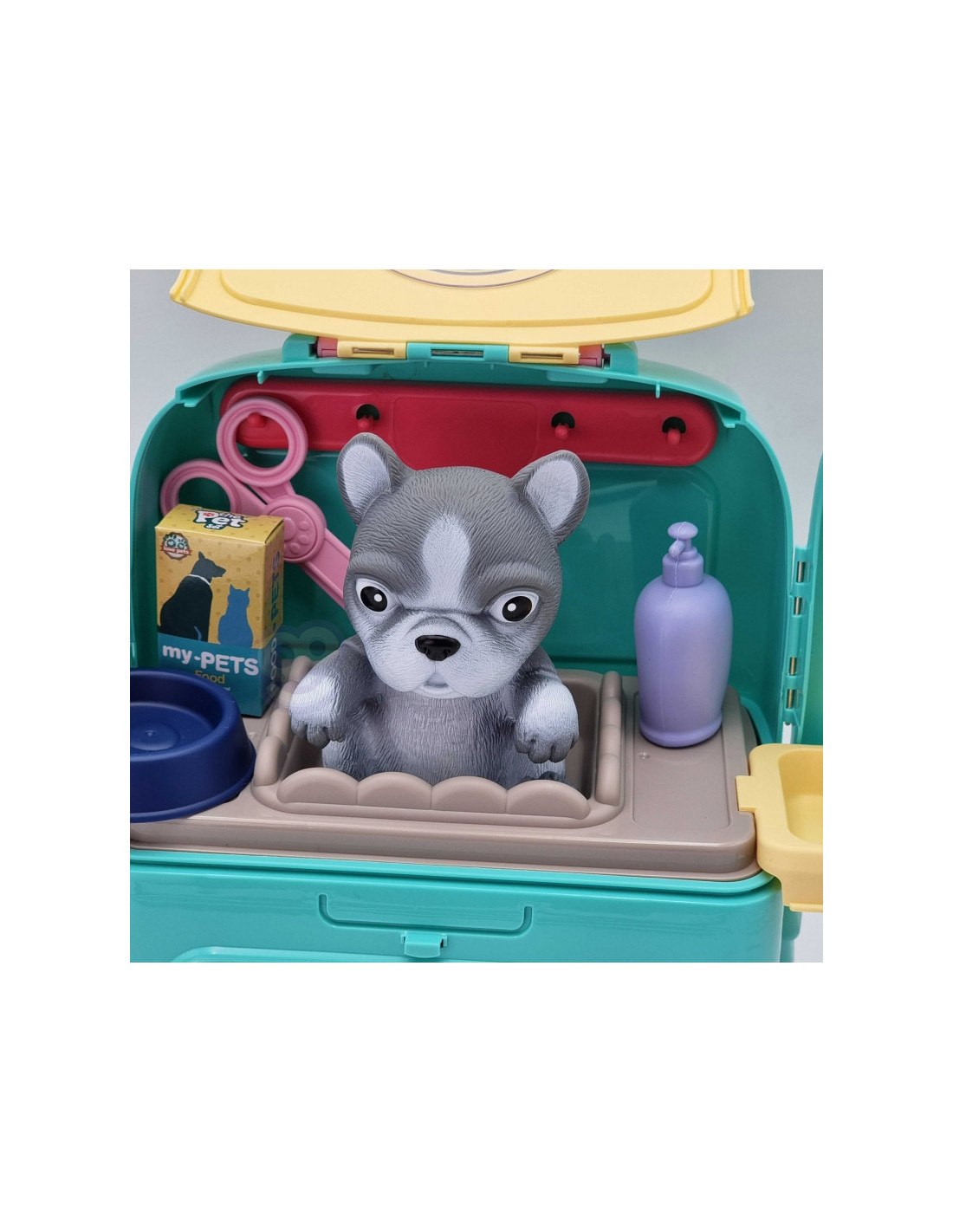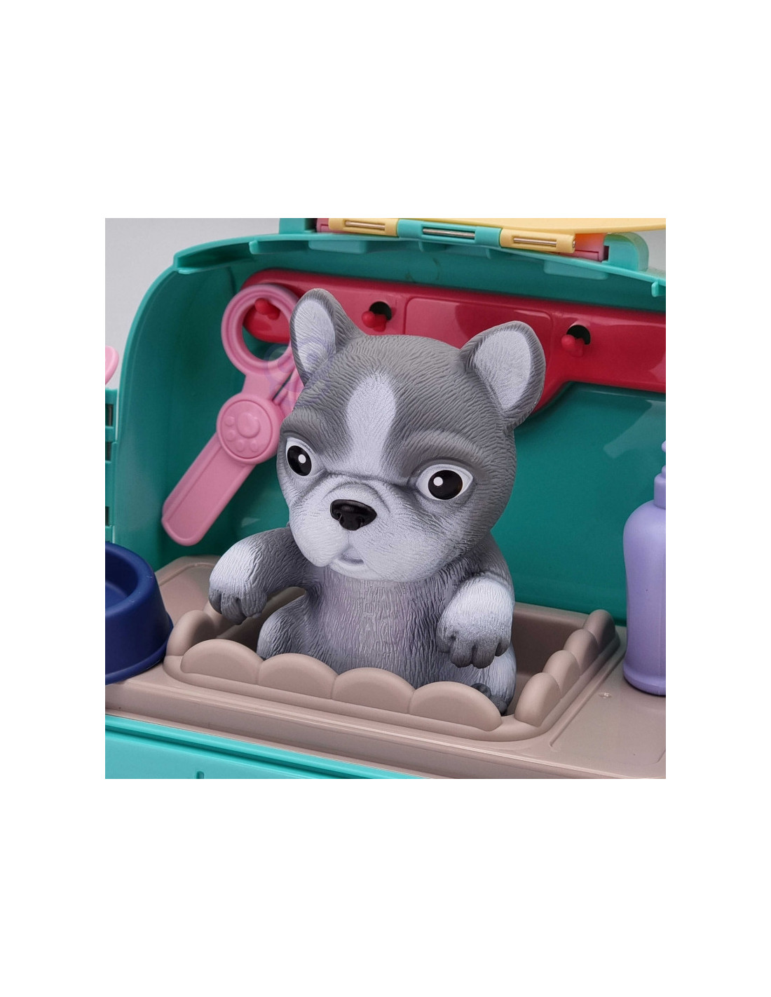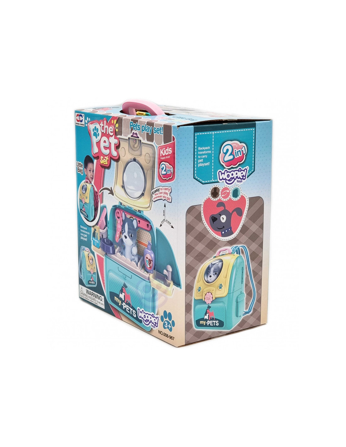 WOOPIE prekės ženklo nešiojamas šunų kirpimo rinkinys leis jūsų vaikui pasirūpinti savo mėgstamu augintiniu. Patogioje nešiojamoje kuprinėje šunį galite pasiimti bet kur: į kelionę, į žaidimų aikštelę ar į darželį. Kuprinė turi pakeliamą rankeną ir specialų užsegimą, kuris neleis kabinai atsidaryti nešiojant ir užtikrins maksimalų augintinio saugumą. 2-in-1 kirpimo rinkinį sudaro: šuns figūrėlė, kuprinė, dirželis (kabinai uždėti ant nugaros), dubuo, žirklės, šukos, aksesuarų krepšelis, 2 maisto dėžutės, šampūnas, kriauklė, čiaupas, lentyna ir pakaba. Rinkinyje yra viskas, ko reikia norint pasirūpinti savo augintiniu. Vaikas gali nusiprausti ir maitinti savo šunį. Vaidindamas slaugytojo ar veterinarijos gydytojo vaidmenį, vaikas lavina vaizduotę ir empatijos jausmą. Gali būti, kad žaislas bus aistros ugdymo pradžia ir kelias tapti veterinaru.