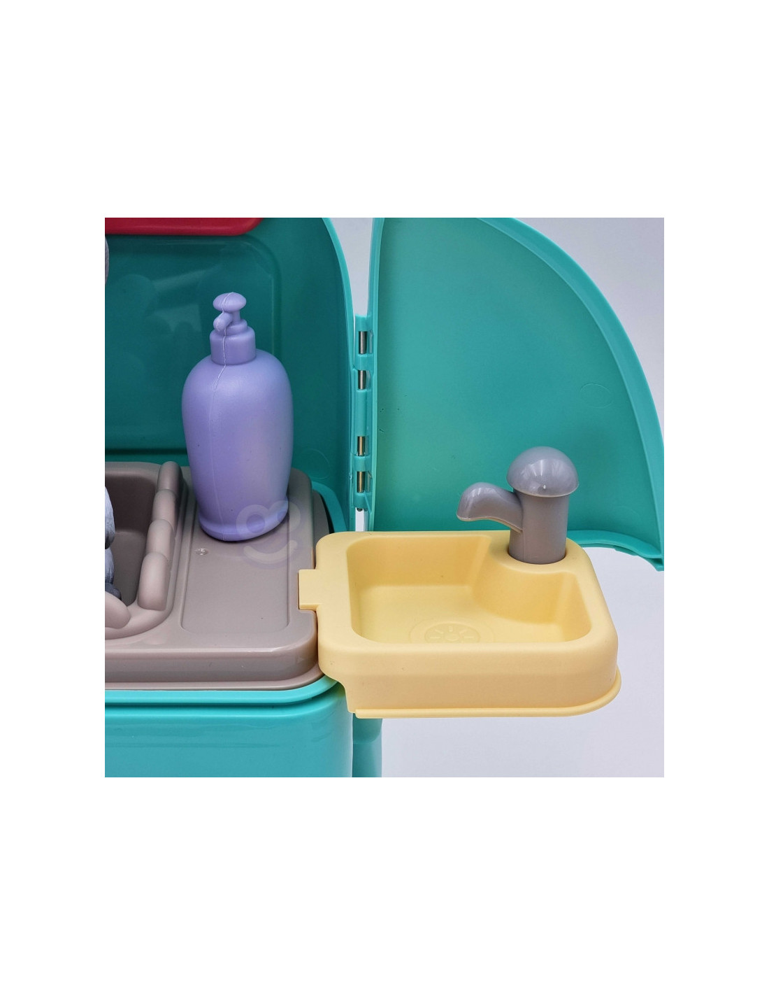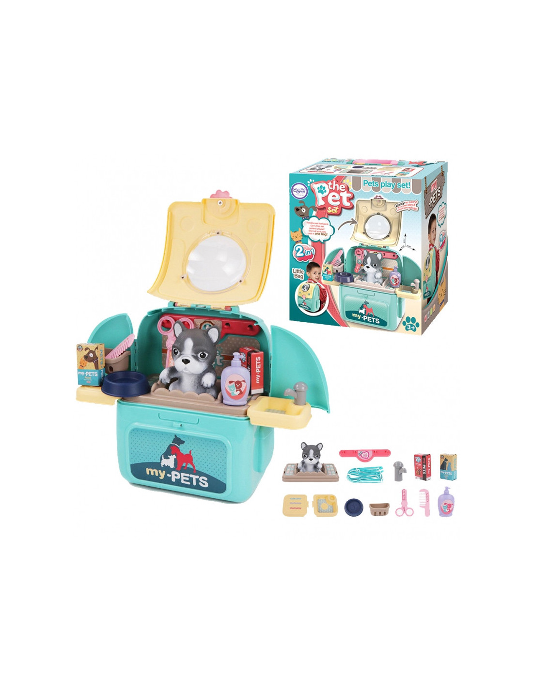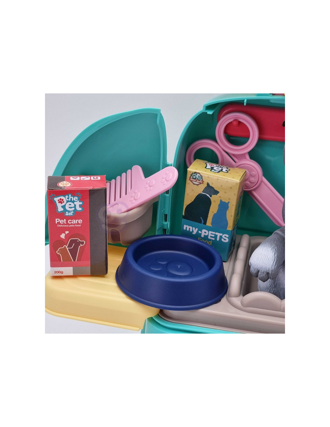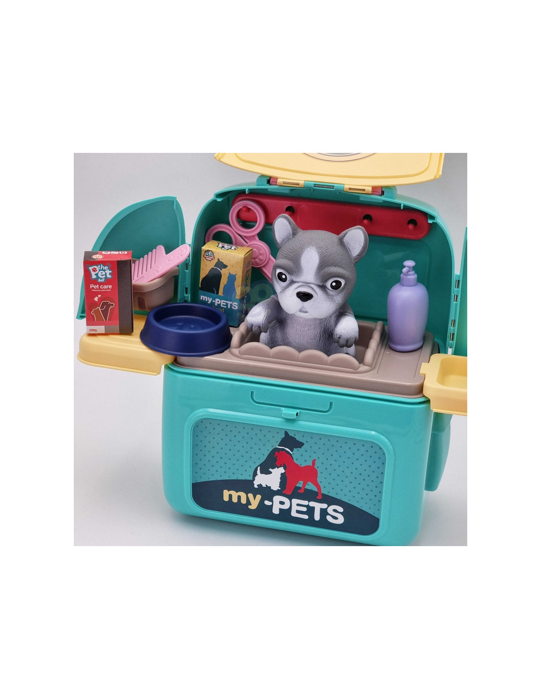 WOOPIE prekės ženklo nešiojamas šunų kirpimo rinkinys leis jūsų vaikui pasirūpinti savo mėgstamu augintiniu. Patogioje nešiojamoje kuprinėje šunį galite pasiimti bet kur: į kelionę, į žaidimų aikštelę ar į darželį. Kuprinė turi pakeliamą rankeną ir specialų užsegimą, kuris neleis kabinai atsidaryti nešiojant ir užtikrins maksimalų augintinio saugumą. 2-in-1 kirpimo rinkinį sudaro: šuns figūrėlė, kuprinė, dirželis (kabinai uždėti ant nugaros), dubuo, žirklės, šukos, aksesuarų krepšelis, 2 maisto dėžutės, šampūnas, kriauklė, čiaupas, lentyna ir pakaba. Rinkinyje yra viskas, ko reikia norint pasirūpinti savo augintiniu. Vaikas gali nusiprausti ir maitinti savo šunį. Vaidindamas slaugytojo ar veterinarijos gydytojo vaidmenį, vaikas lavina vaizduotę ir empatijos jausmą. Gali būti, kad žaislas bus aistros ugdymo pradžia ir kelias tapti veterinaru.