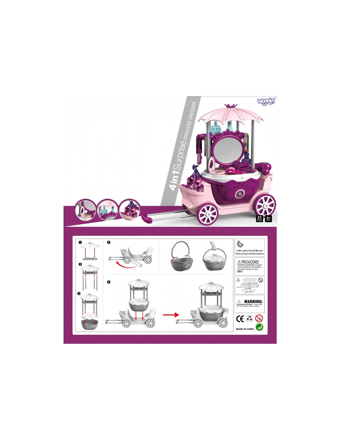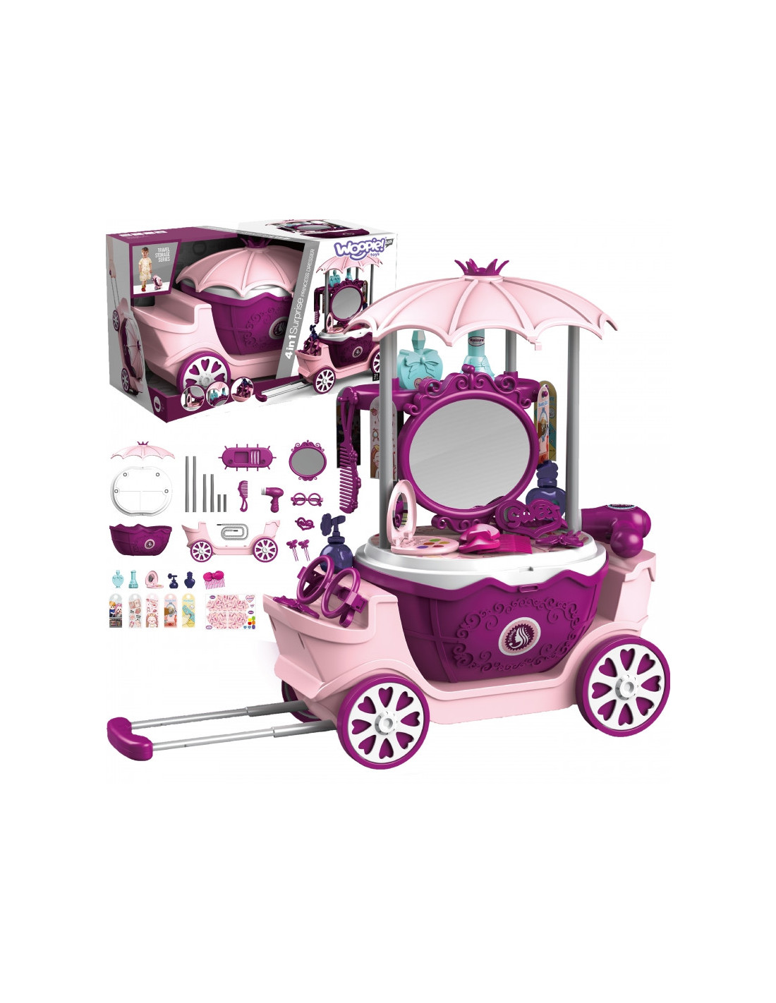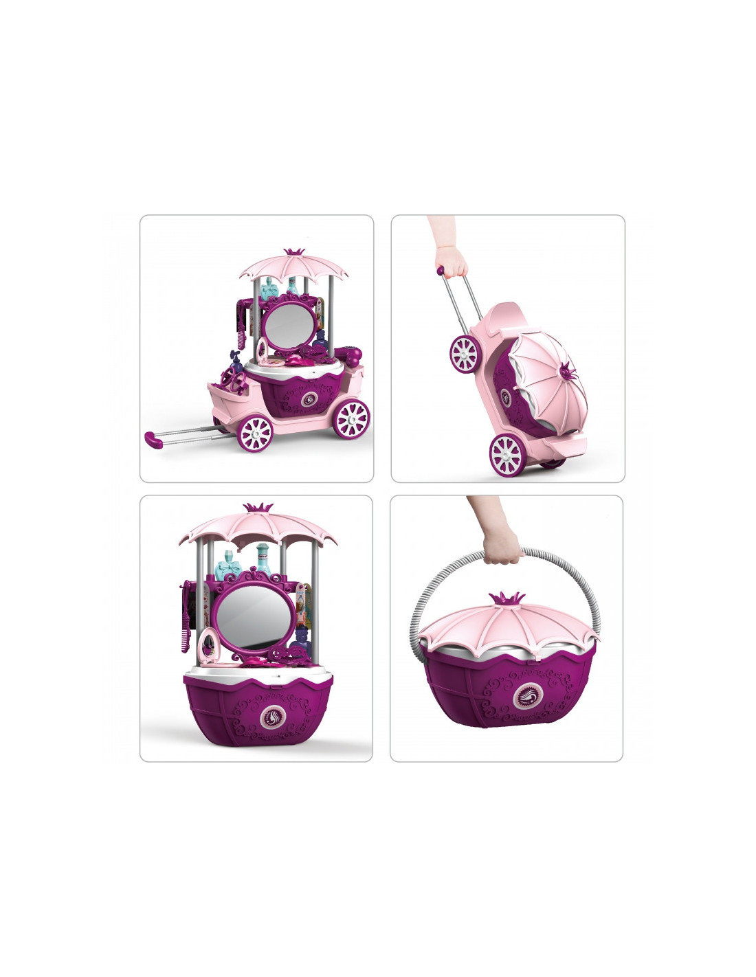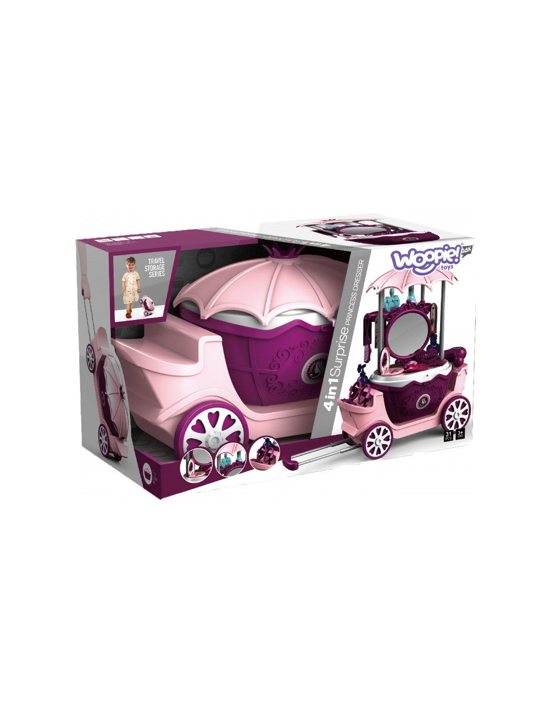 Grožio salonas - tualetinis staliukas lagamine 4in1 iš WOOPIE prekės ženklo yra neribota galimybė žaisti mažąjį makiažo meistrą. Šio rinkinio dėka vaikas gali įkurti savo nešiojamą makiažo studiją ir joje sukurti nuostabias šukuosenas bei makiažą. Šiame žaisle pagrindinį vaidmenį vaidina vaizduotė ir kūrybiškumas - vaikas gali laisvai sutvarkyti savo svetainę ir aptarnauti klientus. Rinkinį sudarantys elementai yra tvirti ir pagaminti iš geros kokybės medžiagų, o tai garantuoja ilgalaikį ir saugų žaidimą. Studija gali būti įkvėpimas vaikams mėgdžioti suaugusiuosius ir įgyti tarpasmeninių įgūdžių. Žaislas padeda lavinti smulkiąją motoriką, taip pat vaiko vaizduotę ir kūrybiškumą.