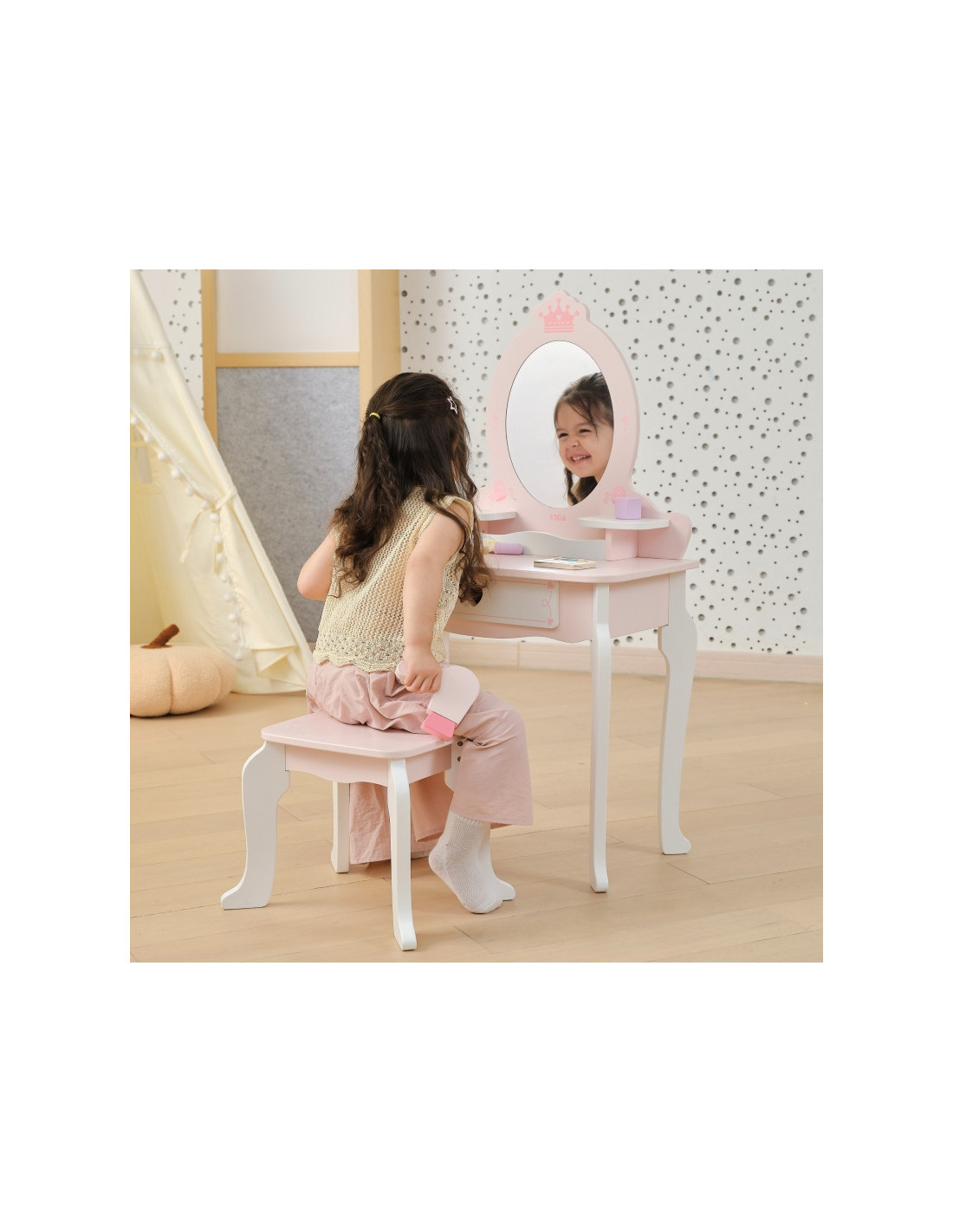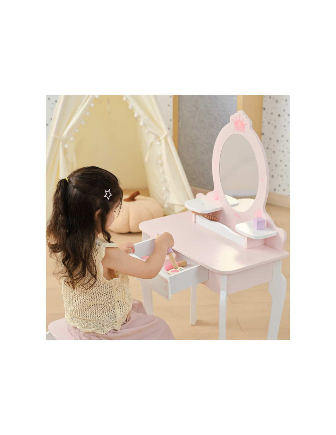 ✔️Tualetinis staliukas su veidrodžiu – saugus veidrodis elegantiškame, rožiniame rėmelyje su dekoratyvine karūna.