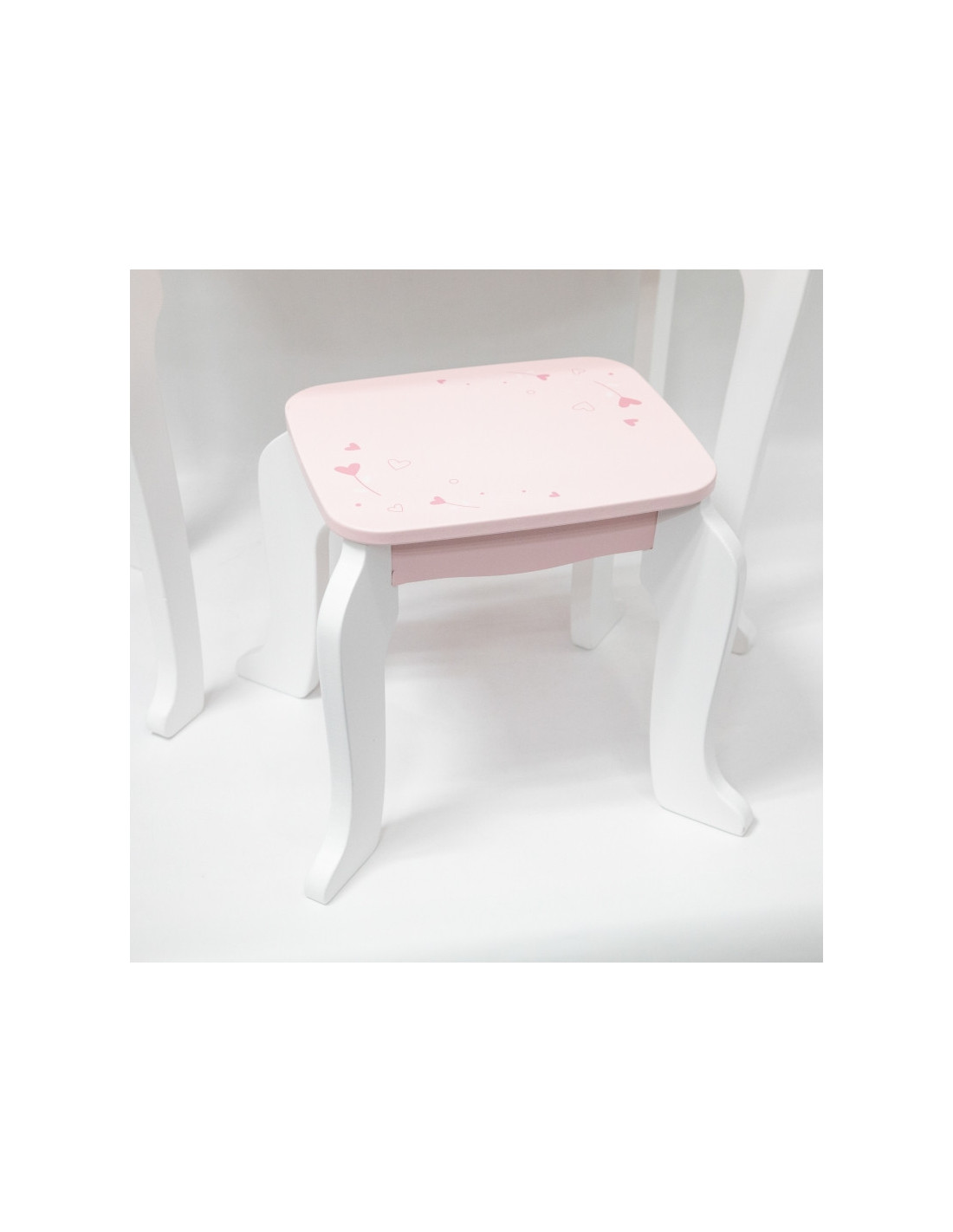 VIGA didelis medinis tualetinis staliukas baltas ir rožinis su veidrodžiu ir kėde