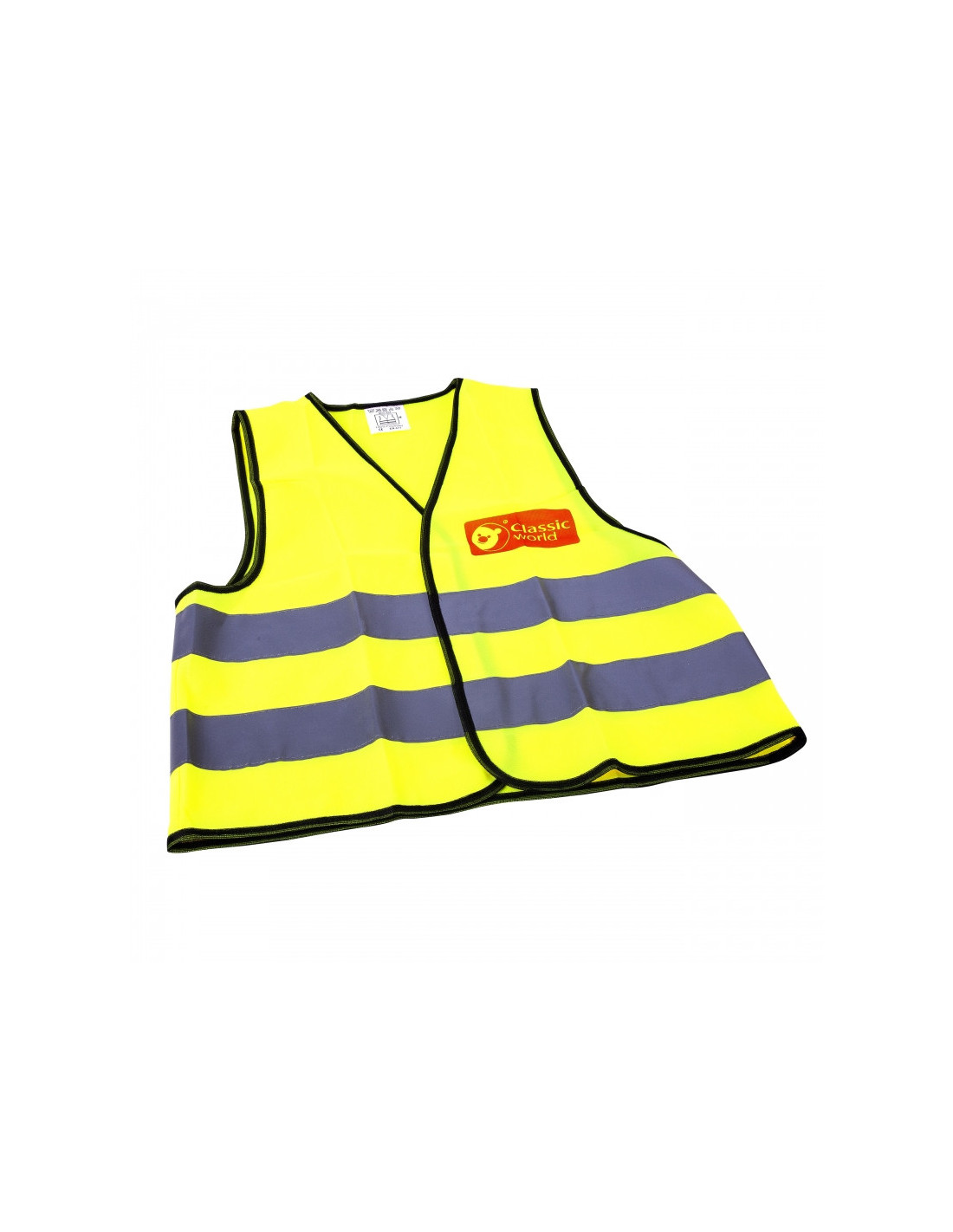 CLASSIC WORLD šviesą atspindinti universali liemenė. Ši ryškiai geltona liemenė su šviesą atspindinčiomis juostelėmis puikiai papildys bet kurio mažojo statybininko, policininko, ugniagesio ar nuotykių ieškotojo aprangą. Ji leidžia vaikams žaisti vaidmenimis kaip suaugusiems, mokant juos matomumo ir eismo saugumo svarbos, įskaitant važiavimą dviračiais, paspirtukais ar vežimėliais. Lengva ir patogi, ji skatina aktyvų ir išradingą žaidimą tiek patalpose, tiek lauke, įkvepia realistiškiems vaidmenų žaidimams ir vaizduotei.