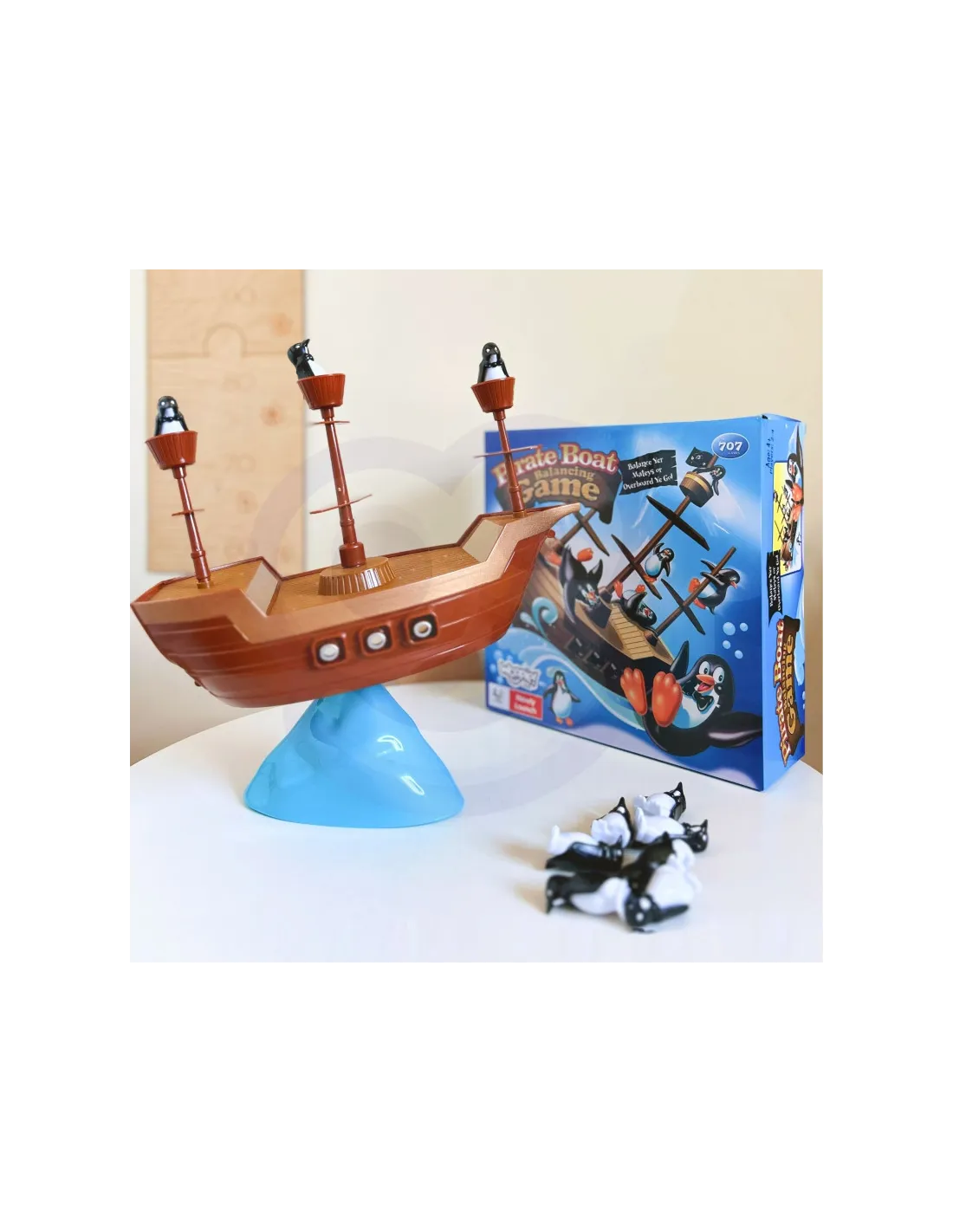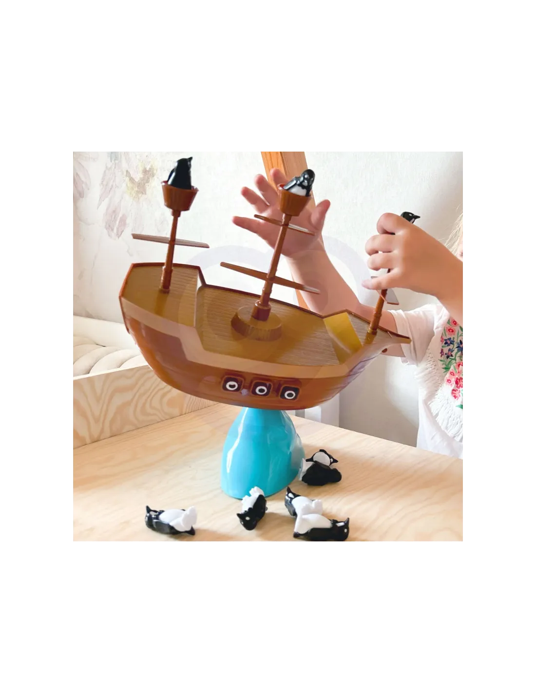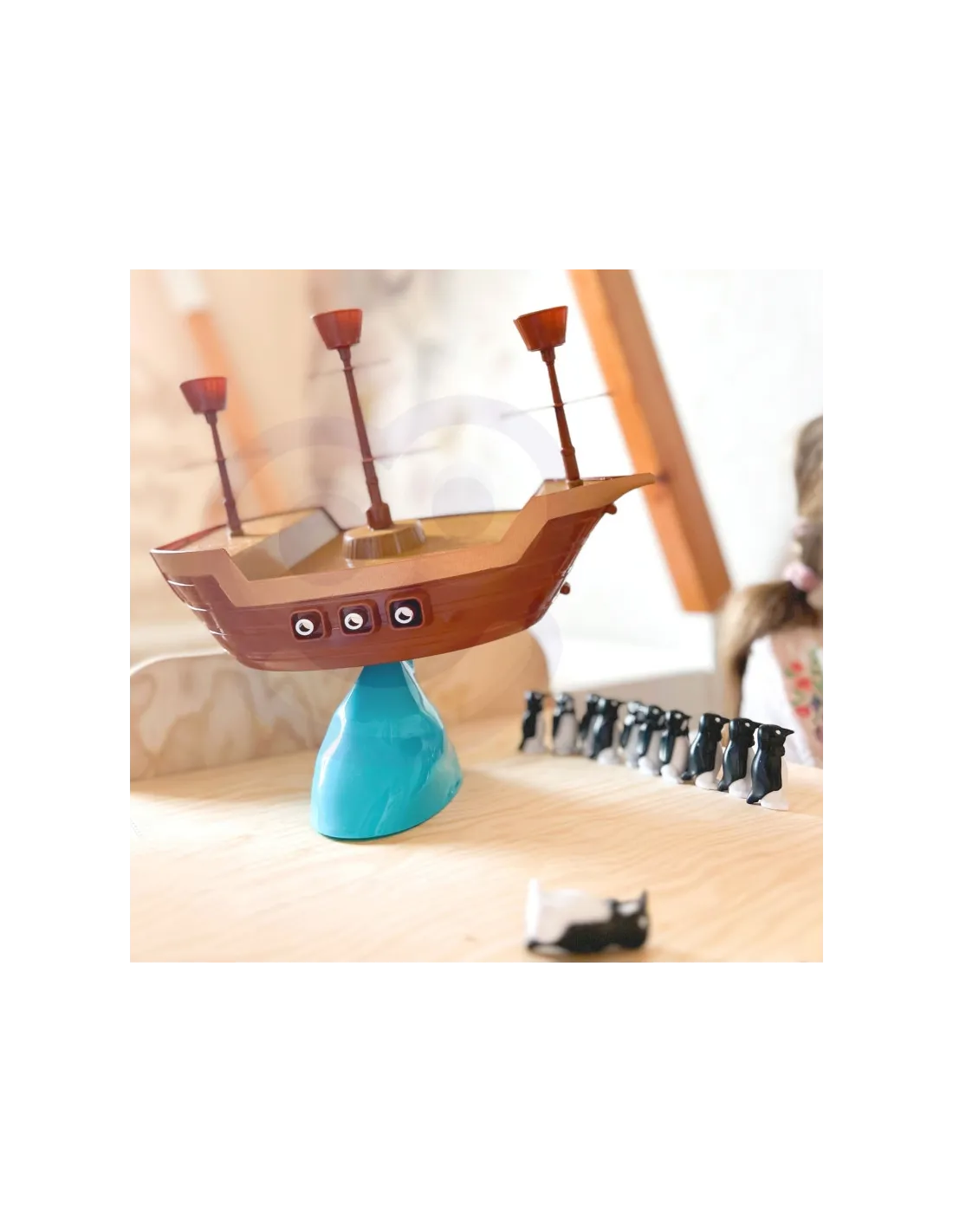 Paskutinis žaidėjas, padedantis savo pingviną ant piratų laivo kaladės jam nenuvirtus, laimi!