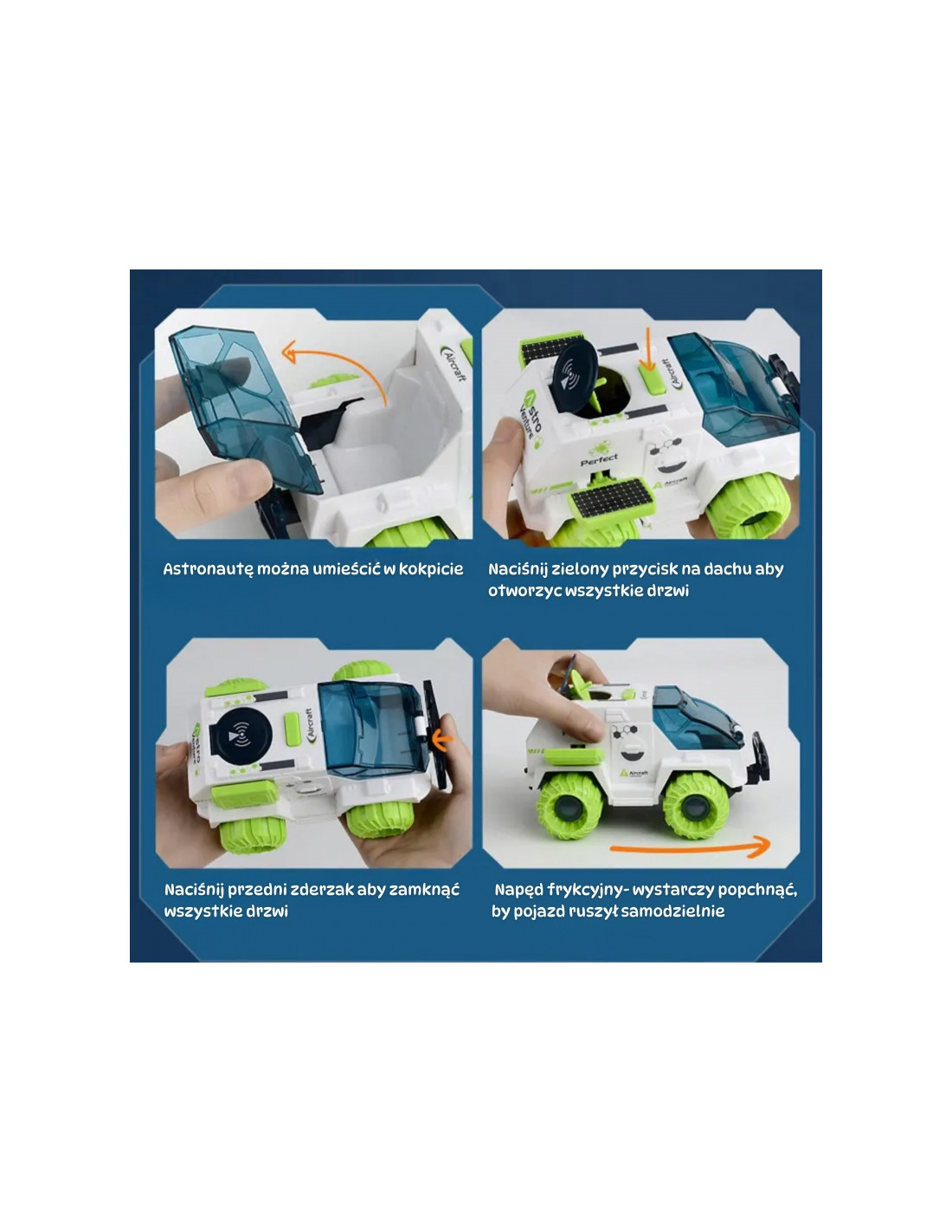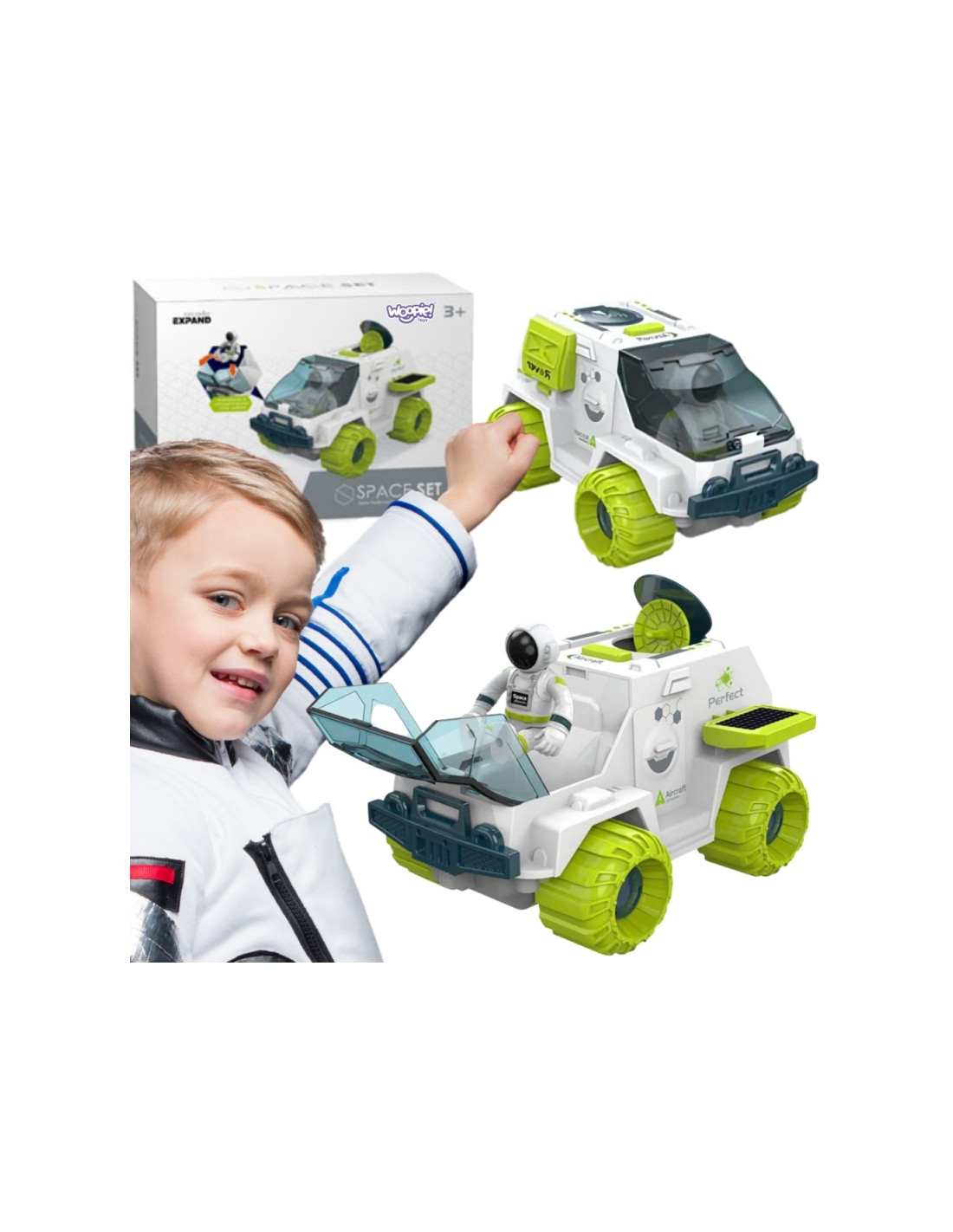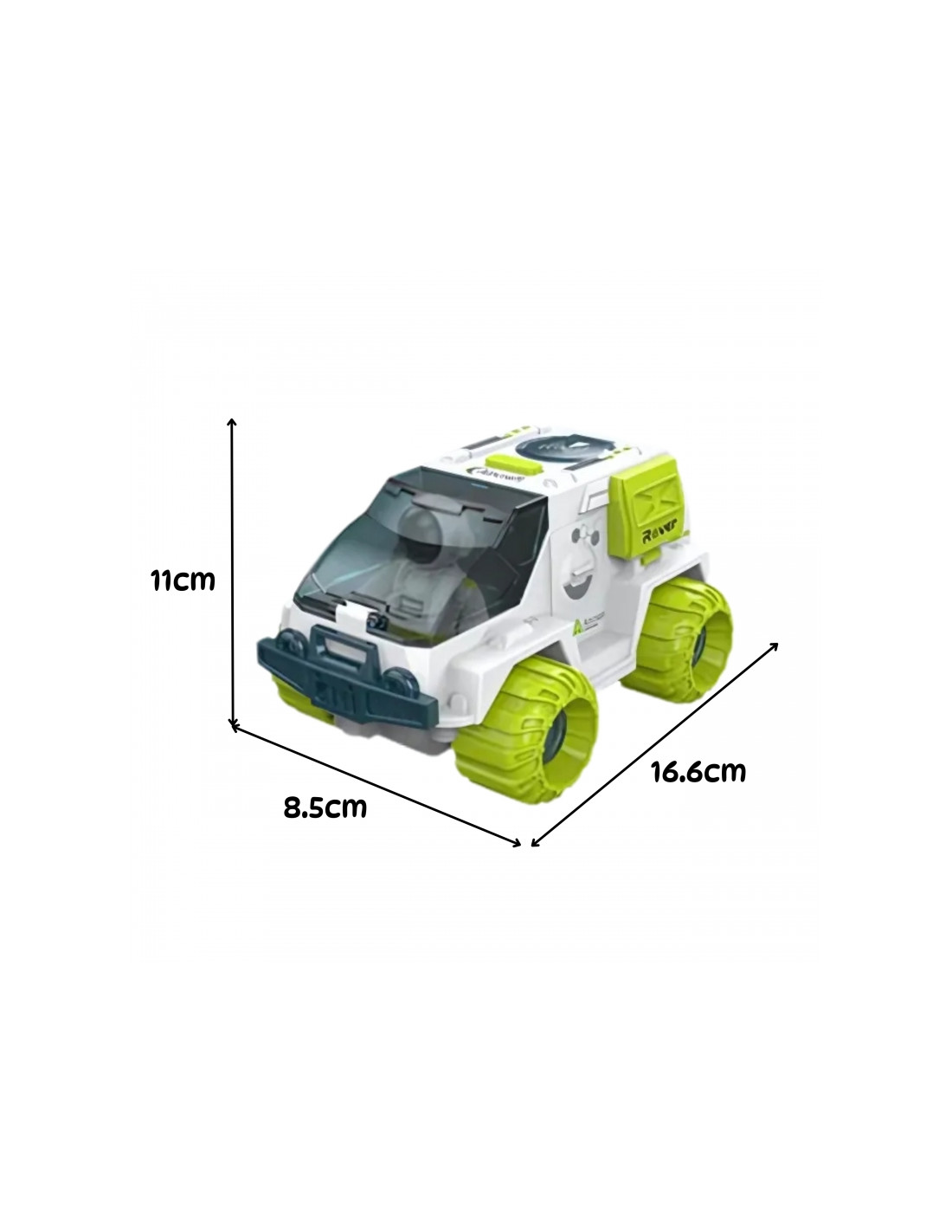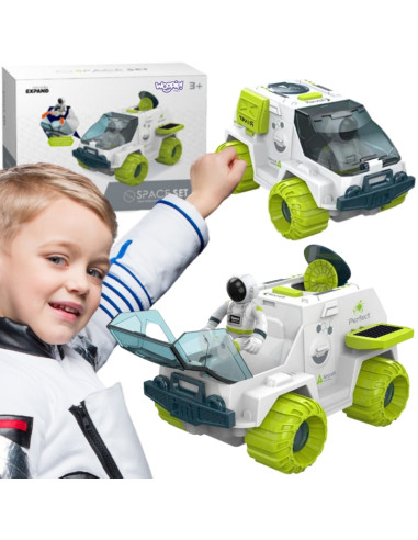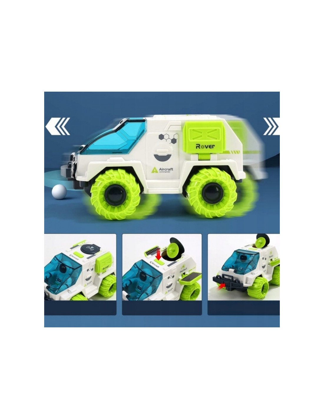 Pasinerkite į žavingų kosmoso tyrinėjimų pasaulį su unikaliu Woopie kosminiu marsaeigiu ! Ši novatoriška transporto priemonė su astronauto figūrėle yra puikus pasirinkimas mažiesiems tyrinėtojams, svajojantiems užkariauti svetimas planetas. Dėl išmanaus dizaino ir interaktyvių funkcijų vaikai ne tik smagiai leidžia laiką, bet ir lavina savo pažintinius, motorinius bei vaizduotės įgūdžius. Ši kosminė transporto priemonė žavi savo futuristiniu dizainu – baltas kėbulas kartu su ryškiai žaliais ratais ir detalėmis atrodo kaip tikra NASA tyrimų mašina. Dėl atidaromos kabinos jūsų mažylis gali lengvai įsodinti į ją astronautą, kuris sėdi prie valdymo pulto, pasiruošęs naujiems iššūkiams. Ant transporto priemonės stogo yra interaktyvus radaras – paspaudus mygtuką, antena automatiškai pakyla, suteikdama papildomo linksmumo ir staigmenos elemento. Ir tai dar ne viskas! Kai misija bus baigta, tiesiog paspauskite priekinį bamperį , ir radaras automatiškai susitrauks – tai tarsi tikra miniatiūrinė kosmoso technologija! Neslystančios guminės padangos užtikrina stabilumą ant įvairių paviršių, o trinties pavara leidžia dinamiškai judėti nenaudojant baterijų – tiesiog paspauskite, ir automobilis su trenksmu pajuda į priekį! Tai puikus būdas skatinti vaiko fizinį aktyvumą ir koordinaciją . Šis rinkinys yra ideali dovana bet kuriam vaikui, besidominčiam mokslu, kosmosu, technologijomis ir nuotykiais. Jis puikiai tinka tiek berniukų, tiek mergaičių poreikiams, lavina įvairius svarbius įgūdžius. Tai ne tik žaislas – tai tikro tarpžvaigždinio nuotykio pradžia , prasidedanti tiesiog jūsų namuose!