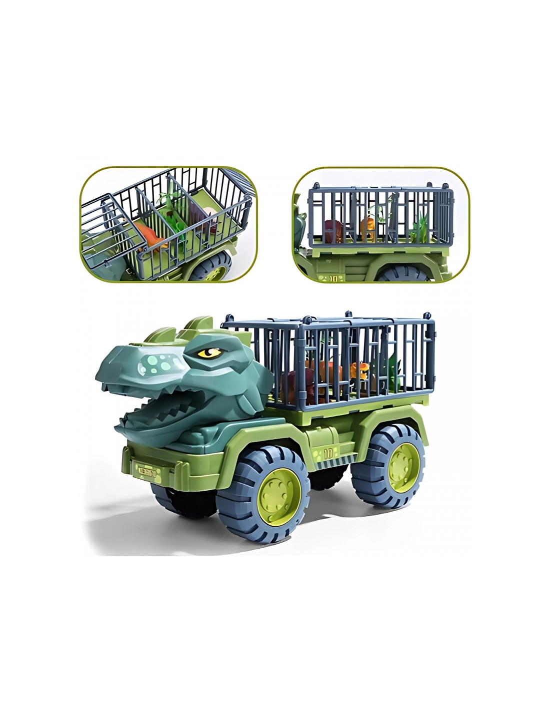 Pristatome unikalų Woopie dinozauro formos transporterį – įspūdingo sunkvežimio ir tiranozauro motyvo derinį, kuris žaidimą pakelia į visiškai naują lygį. Ši didelė transporto priemonė yra ne tik figūrėlių transportavimo priemonė, bet ir visavertė pasakojimo aikštelė, kurioje vaikai gali kurti savo juros periodo ir automobilių nuotykius. Su atidaromais narvais, žvyneliais ir nagų detalėmis bei krovininiu skyriumi transporteris atrodo įspūdingai ir įtraukia į kūrybišką žaidimą. Jo stipriosios pusės slypi tvirtoje konstrukcijoje ir kruopščiame meistrišku darbu. Transporto priemonės kėbulas sukurtas pagal dinozauro odą – su tekstūruotomis žvynelėmis, ryškia burna ir nugaros kuodu. Spalvos parinktos taip, kad pabrėžtų natūralųjį transporto priemonės charakterį ir tuo pačiu patraukliai atrodytų vaiko kambaryje. Gamyboje naudojamos medžiagos yra patvarios, atsparios smūgiams ir saugios vaikams – be aštrių briaunų ir suapvalintos apdailos. Rinkinyje esančios dinozaurų figūrėlės yra lengvos ir pritaikytos mažoms rankytėms, todėl jas lengva valdyti ir žaisti sklandžiai. Šis žaislas derina dinozauro ir transporto temą, skatina vaizduotę, lavina rankinius įgūdžius, loginį mąstymą ir džiaugsmą žaidžiant savo istorijas.