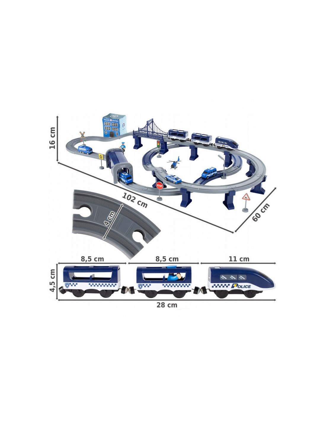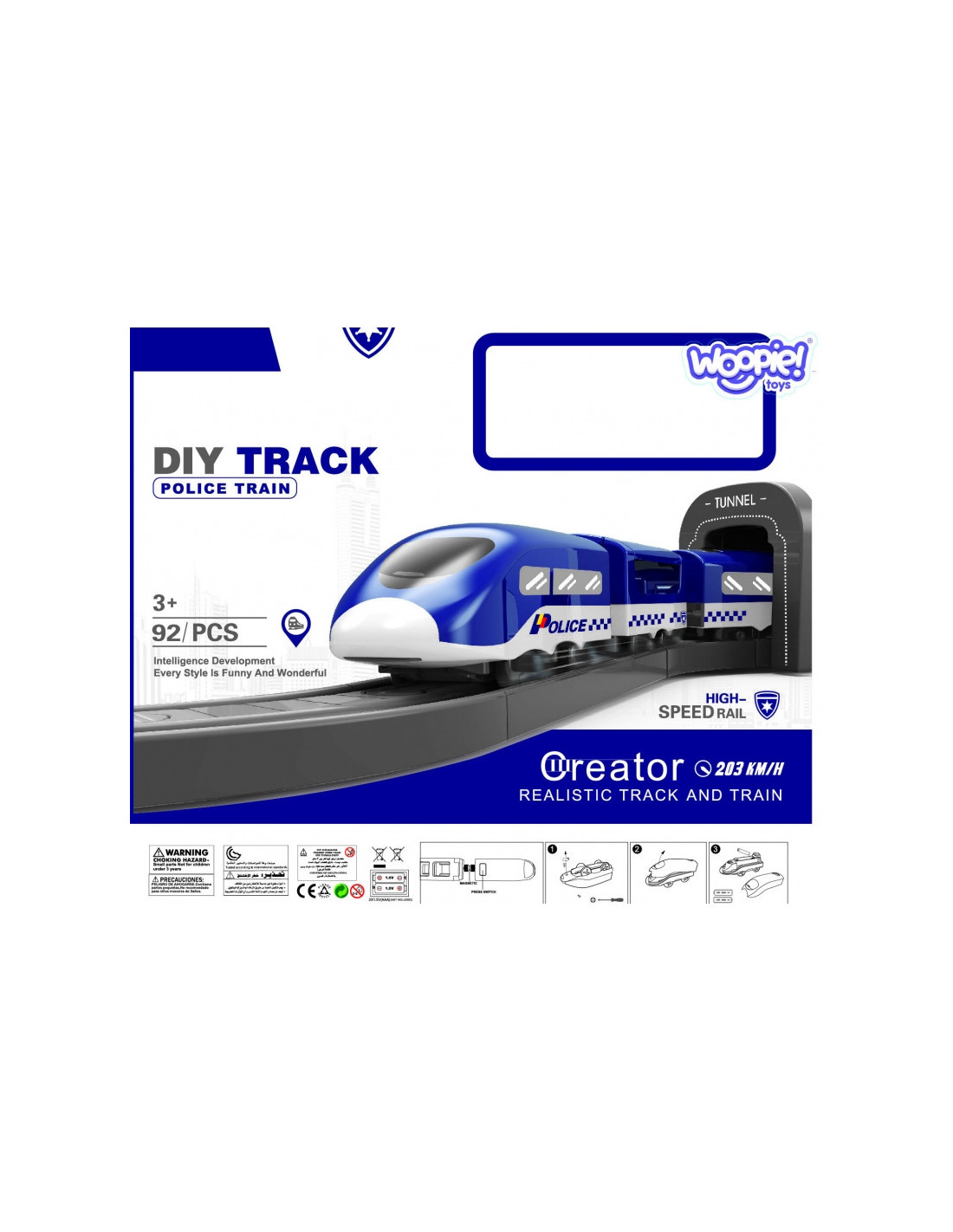 Žinomo prekės ženklo elektrinis policijos stoties traukinys Woopie yra idealus pasiūlymas jūsų mažiesiems automobilių sporto gerbėjams . Spalvinga eilė pradžiugins įvairaus amžiaus vaikus, suteiks daug atrakcijų ir begalę emocijų. Rinkinį sudaro 92 elementai, įskaitant m.in. modernų akumuliatorinį lokomotyvą, bėgių kelio elementus, policijos automobilius ir sraigtasparnį. Tačiau šis žaislas ne tik labai smagus, bet ir suteikia vaikui puikių raidos galimybių. Ypač lavinama orientacija erdvėje, techninis pojūtis ir, žinoma, vaizduotė. Traukinukas supakuotas originalioje dėžutėje, idealiai tinkančioje dovanai.