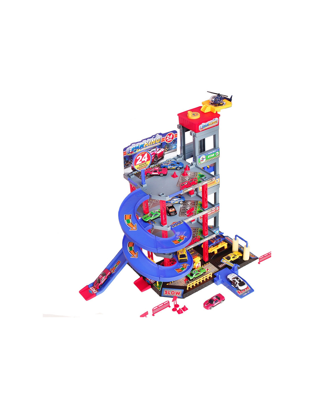 - Įeina: 4 automobiliai ir sraigtasparnis, automobilių stovėjimo aikštelės elementai, kelio ženklai, kūgiai, automobilių stovėjimo aikštelės įvažiavimo elementai, liftas ir lipdukai,