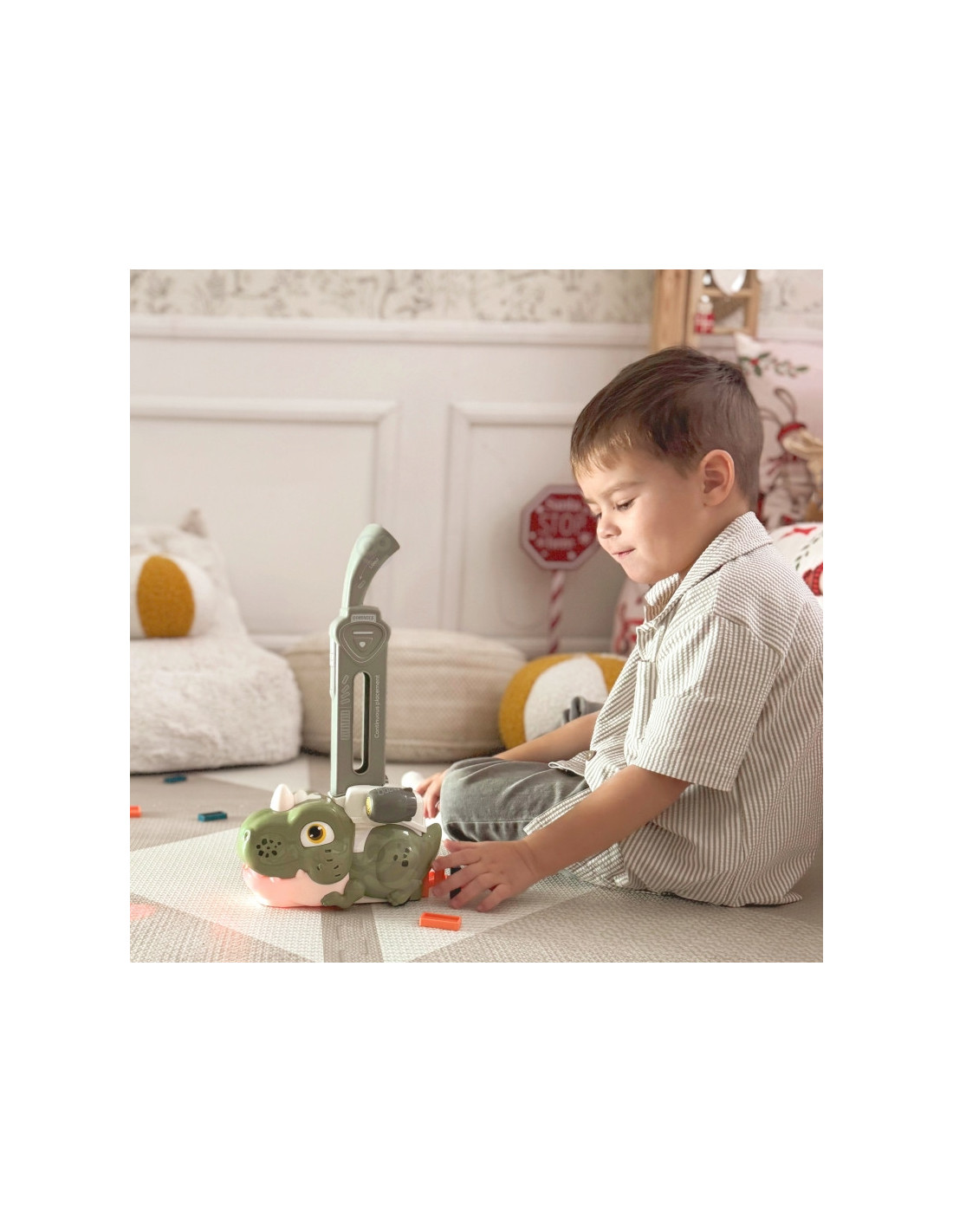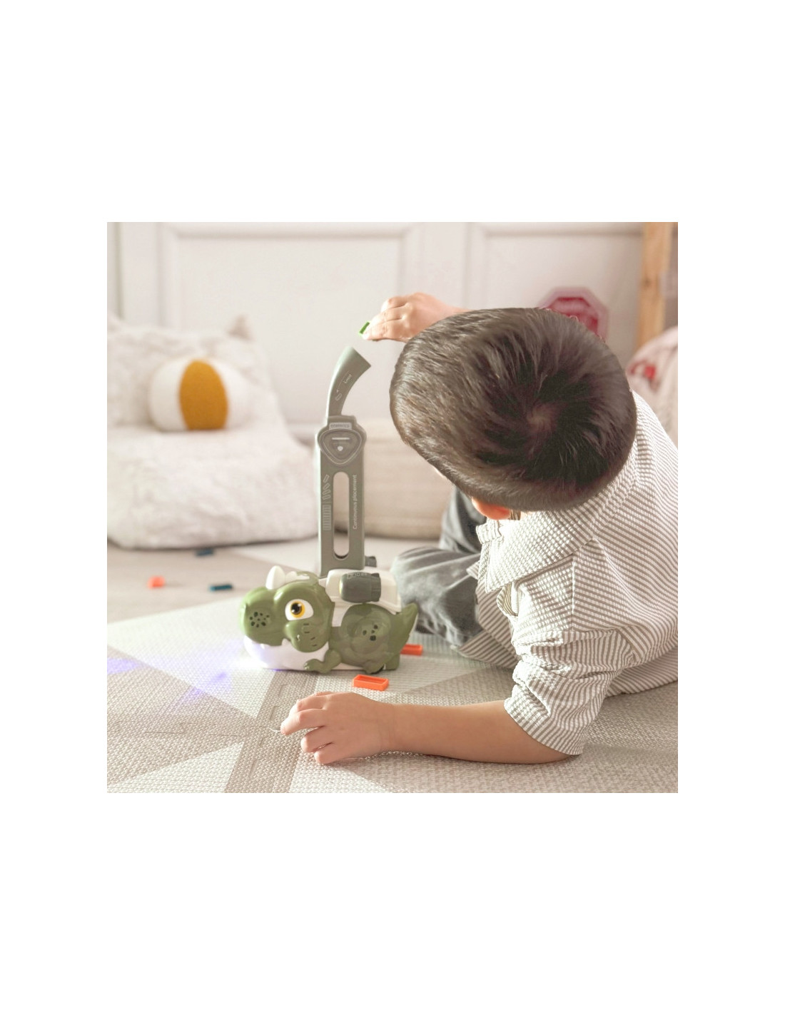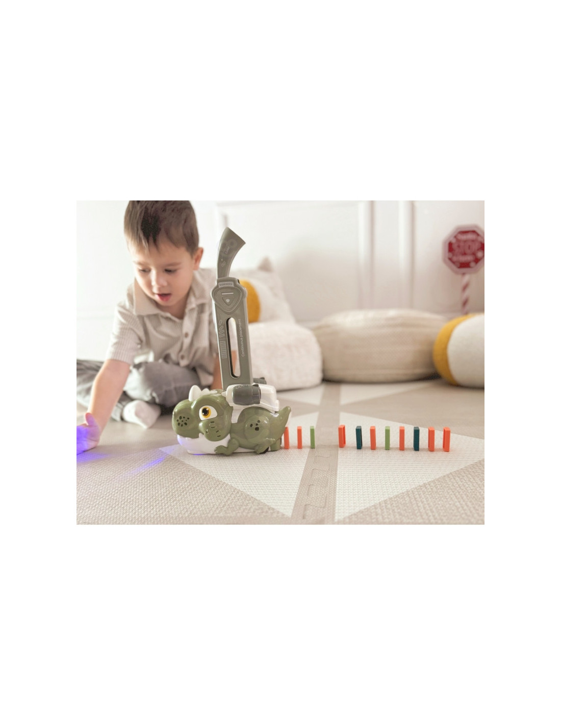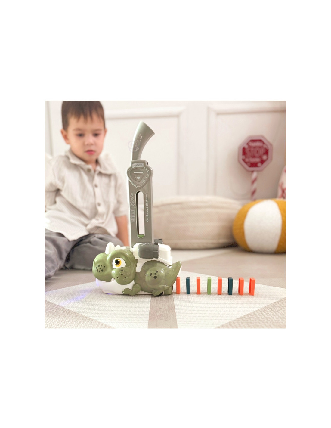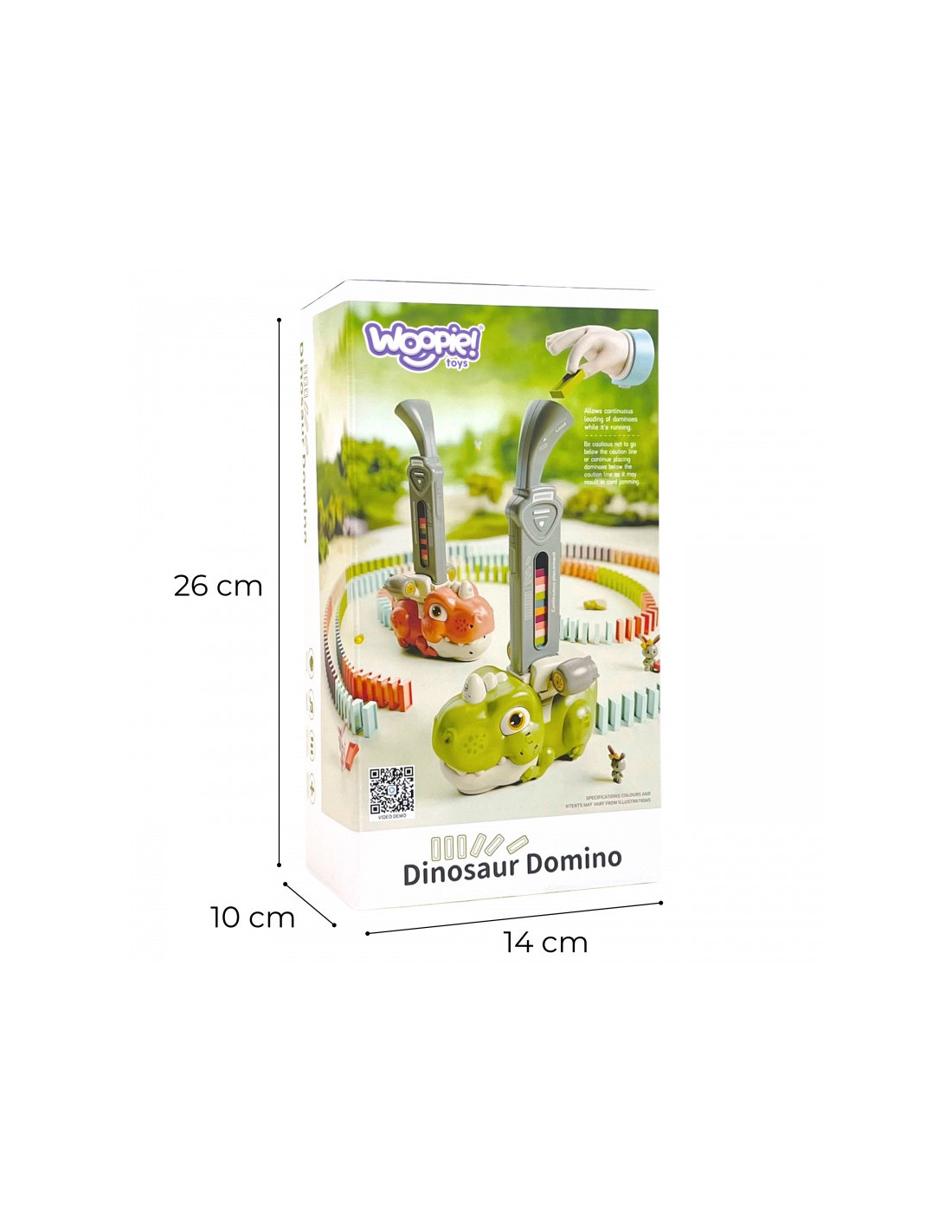 WOOPIE prekės ženklo "Spalvotas dinozaurų domino" - tai žaidimas, kuriame derinami žaisliniai traukinukai ir domino, kad būtų sukurtas malonus ir originalus žaidimo būdas. Dėl garso ir apšvietimo žaidimas tampa dar įdomesnis ir patrauklesnis bei skatina vaikų susidomėjimą žaidimu. Norint pradėti žaidimą, tereikia užpildyti traukinius domino padėklu, pradėti žaisti ir mėgautis procesu. Be to, traukinukus lydi saviti garsai ir apšvietimas, kurie žaidimui suteikia dar daugiau dinamiškumo.