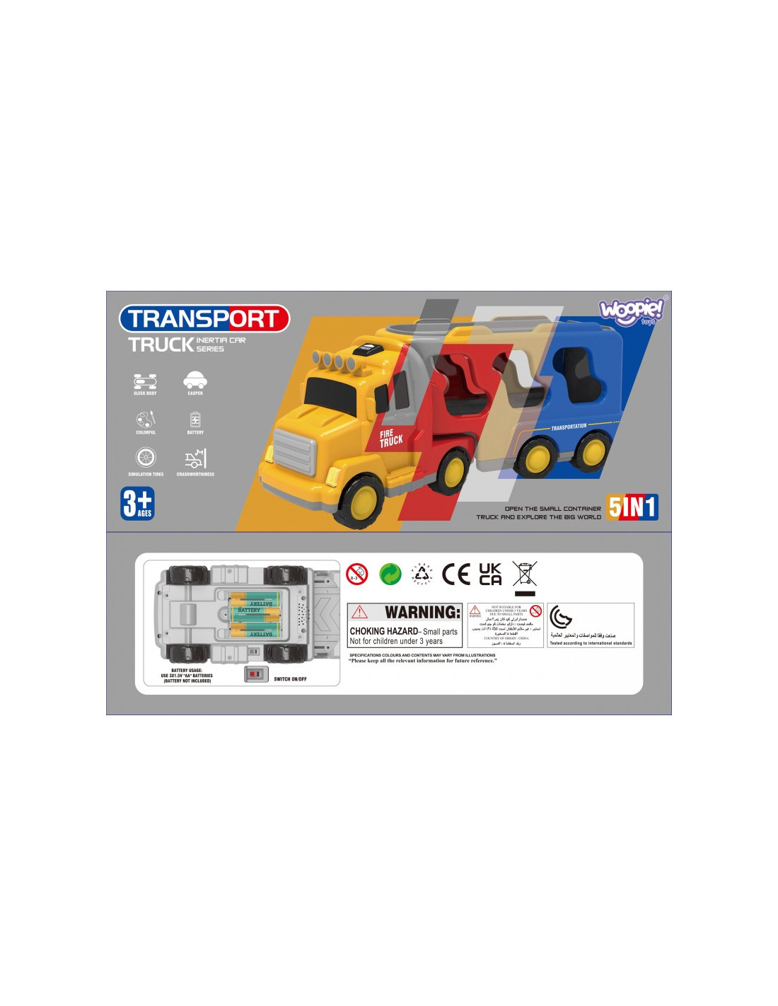 Didelis ugniagesių rinkinys Vejos automobilis + 4 automobiliai iš prekių ženklų Woopie Šis žaislas " 5 viename", sukurtas atsižvelgiant į mažuosius ugniagesių entuziastus, yra puikus rinkinys kiekvienam mažajam gelbėtojui! Paspauskite sunkvežimio kabinos viršuje esantį mygtuką, kad pamatytumėte ryškias mirksinčias šviesas ir išgirstumėte tikroviškas sirenas, kurios labai patinka vaikams. Rinkinį sudaro didelis transportavimo sunkvežimis ir keturios ugniagesių transporto priemonės: gaisrinis automobilis, automobilinės kopėčios, sraigtasparnis, purkštuvo automobilis ir visureigis. Kiekviena transporto priemonė turi judančių dalių, kurios leis jūsų vaikui pasijusti tikru didvyriu per gelbėjimo operacijas! Rinkinys yra puiki dovanos idėja gimtadienio, Kalėdų ar kitomis progomis.