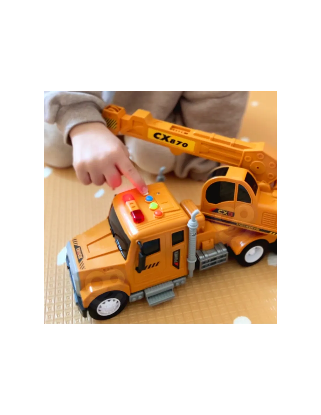 WOOPIE prekės ženklointeraktyvusis kranas su kilnojamuoju kabliu pavers kiekvieną vaiko žaidimą nuostabiu nuotykiu! Su garsais, šviesos efektais ir judančiomis dalimis jis suteiks valandų valandas kūrybingų žaidimų. Kranas turi daugybę funkcijų, tokių kaip: reguliuojamas rankos aukštis ir ilgis, galimybė manipuliuoti kablio virve ir šviesos ant stogo, kaip tikrame krane. Žaislas pagamintas 1:14 masteliu, o kiekviena detalė yra kruopščiai detalizuota! Laukia nuotykiai - leiskite savo vaikui imtis svajonių automobilio operatoriaus vaidmens!