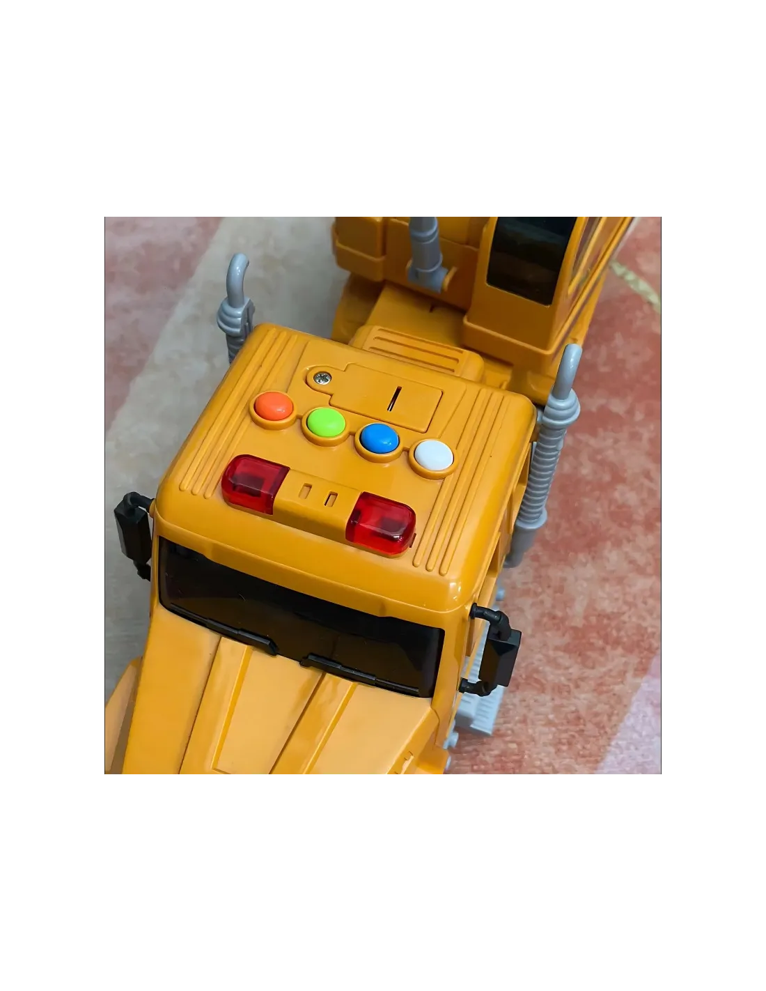 - - Šviesos ir garso efektai - 4 spalvoti mygtukai automobilio viršuje, kuriais įjungiamos šviesos ir garsai