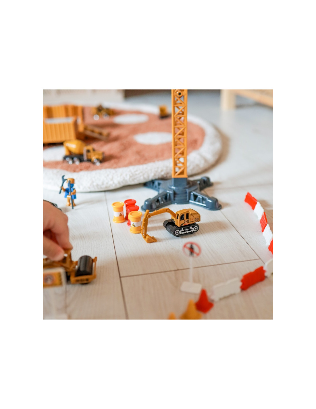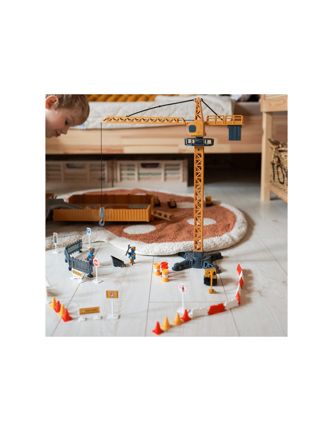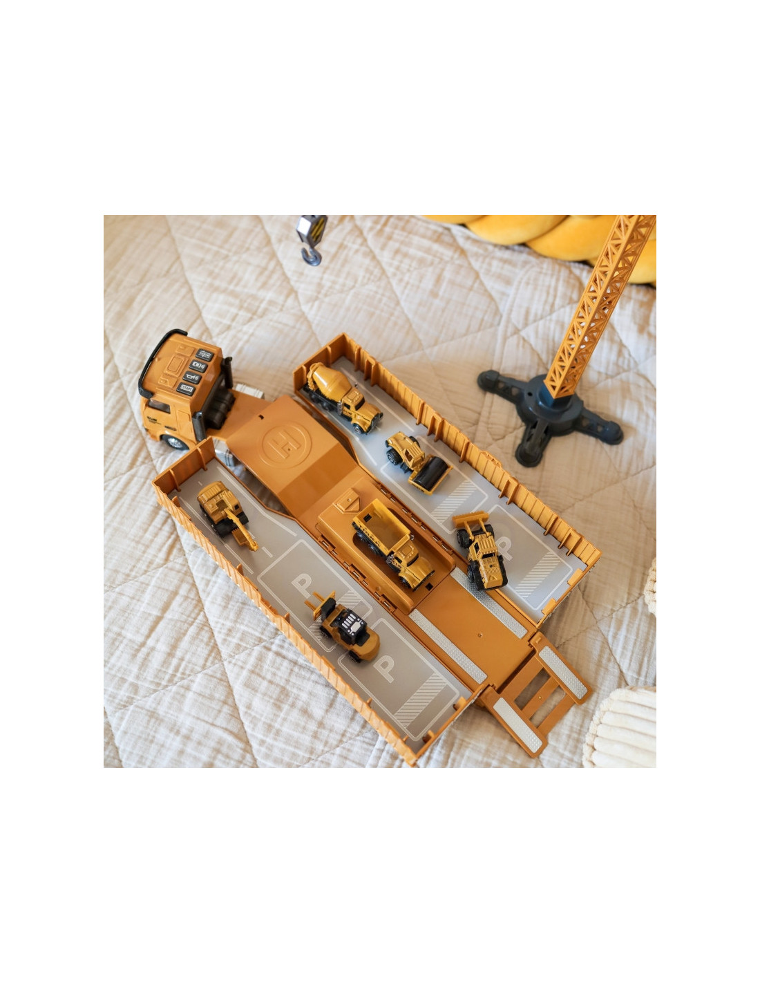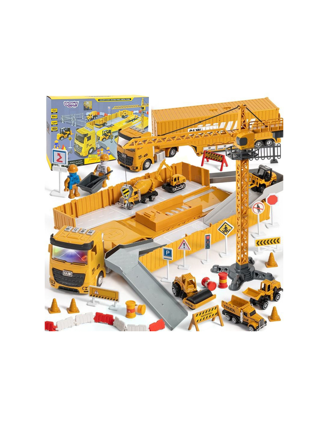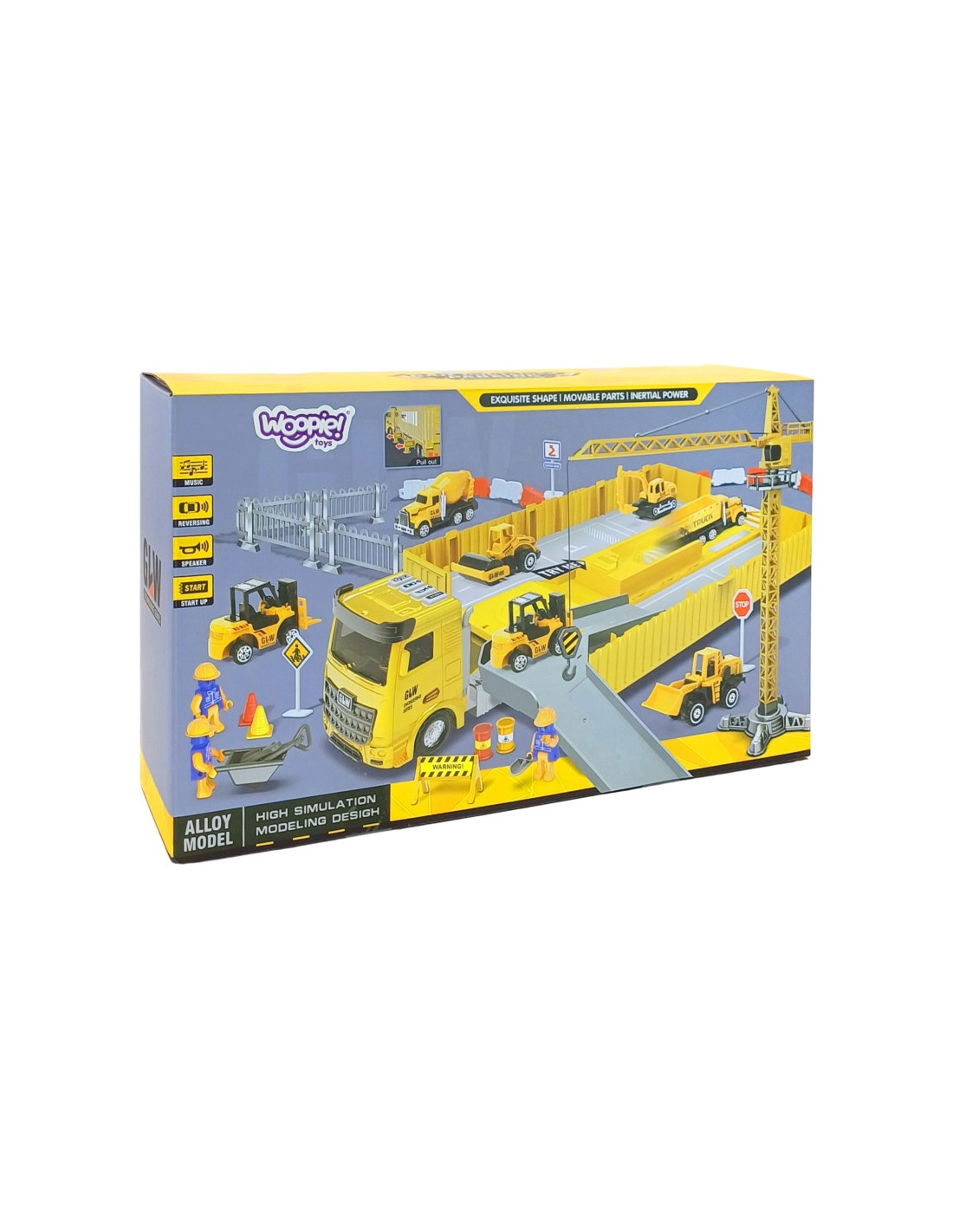 WOOPIE "6-in-1" statybinio sunkvežimio rinkinys "Crane Resoraki" priedai - tai įspūdingas didelis automobilis, kuris akimirksniu virsta didžiule statybų aikštele. Aukštas, tvirtas kranas su metaliniais svarmenimis perkels medžiagas į reikiamą vietą, o pastatyti ženklaiužtikrins saugumą statybvietėje. Šis žaislas garantuos valandų valandas puikios pramogos, kuri tikrai neprailgs