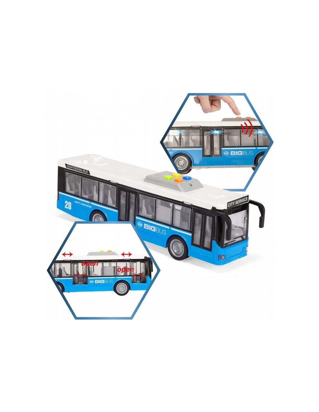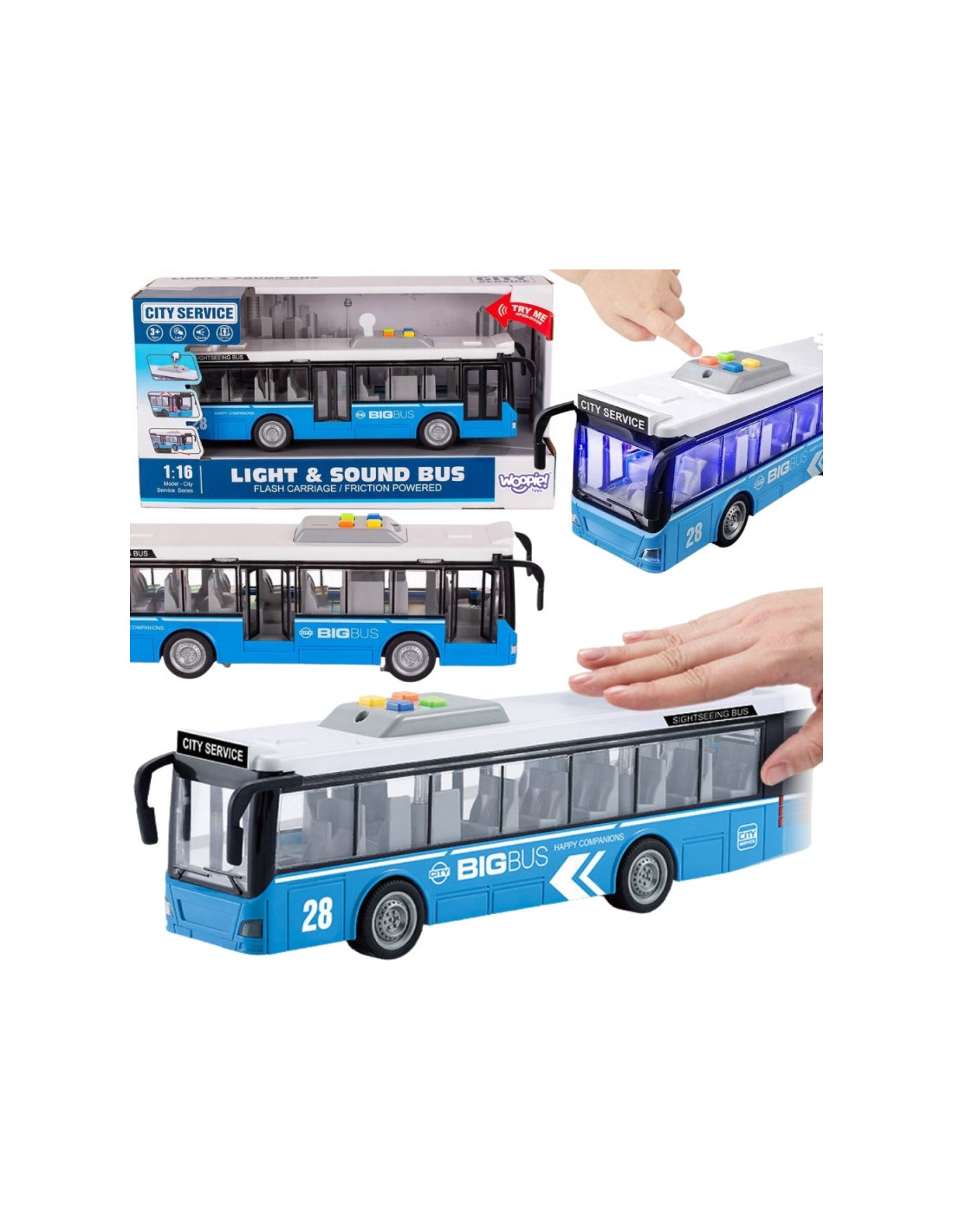 Puiki pramoga mažiesiems viešojo transporto mėgėjams! Žaislinis miesto autobusas WOOPIE idealiai tinka mažiesiems automobilių ir viešojo transporto mėgėjams. Tikroviškos detalės, garsai, šviesos ir galimybė atidaryti duris suteikia daug džiaugsmo ir padeda lavinti vaiko vaizduotę. Transporto priemonė turi daugybę integruotų funkcijų, kurios neleis nuobodžiauti. Joje įrengti įvairūs garso efektai, vidaus apšvietimas ir atidaromos priekinės bei galinės durys. Žaislas turi keturis guminius ratus ir frikcinę pavarą. Tiesiog stumkite jį pirmyn arba atgal ir jis pats nuvažiuos net kelis metrus.
