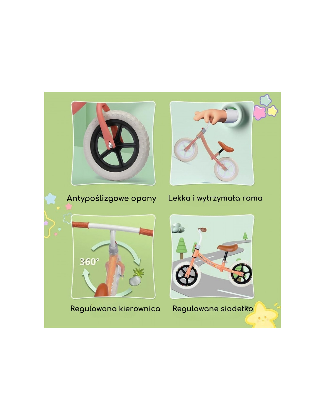Atraskite oranžinį „Woopie“ balansinį dviratį, kuris taps puikiu pirmuoju dviračiu jūsų vaikui! Lengva konstrukcija, EVA putplasčio ratukai ir ergonomiškas dizainas užtikrina patogų ir saugų važiavimą. Reguliuojamas vairas ir balnelis leidžia pritaikyti dviratį prie mažylio ūgio, todėl jis auga kartu su juo. Tai puikus būdas mokytis pusiausvyros, lavinti koordinaciją ir stiprinti raumenis smagiai leidžiant laiką. Patvari konstrukcija ir neslystančios rankenos užtikrina saugų sukibimą ir saugumą kiekviename važiavimo etape.