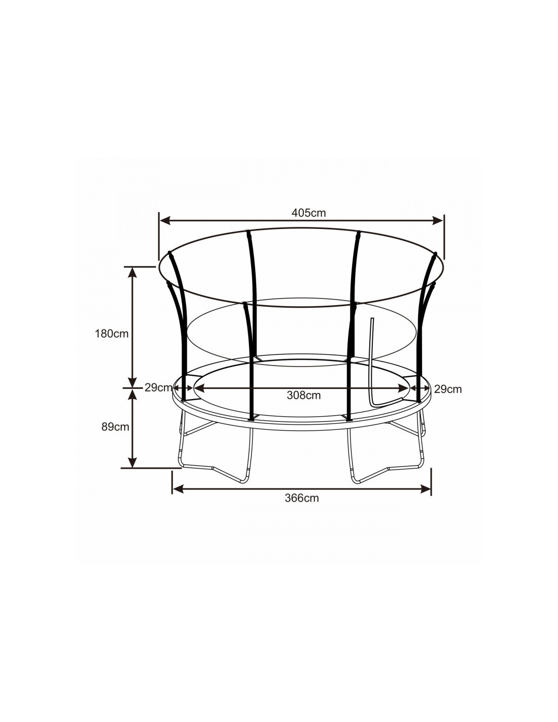 - Batuto skersmuo yra 366 cm, o apsauginis tinklas užtikrina maksimalų malonumą ir saugumą žaidžiant lauke