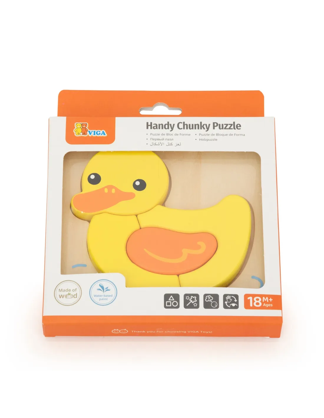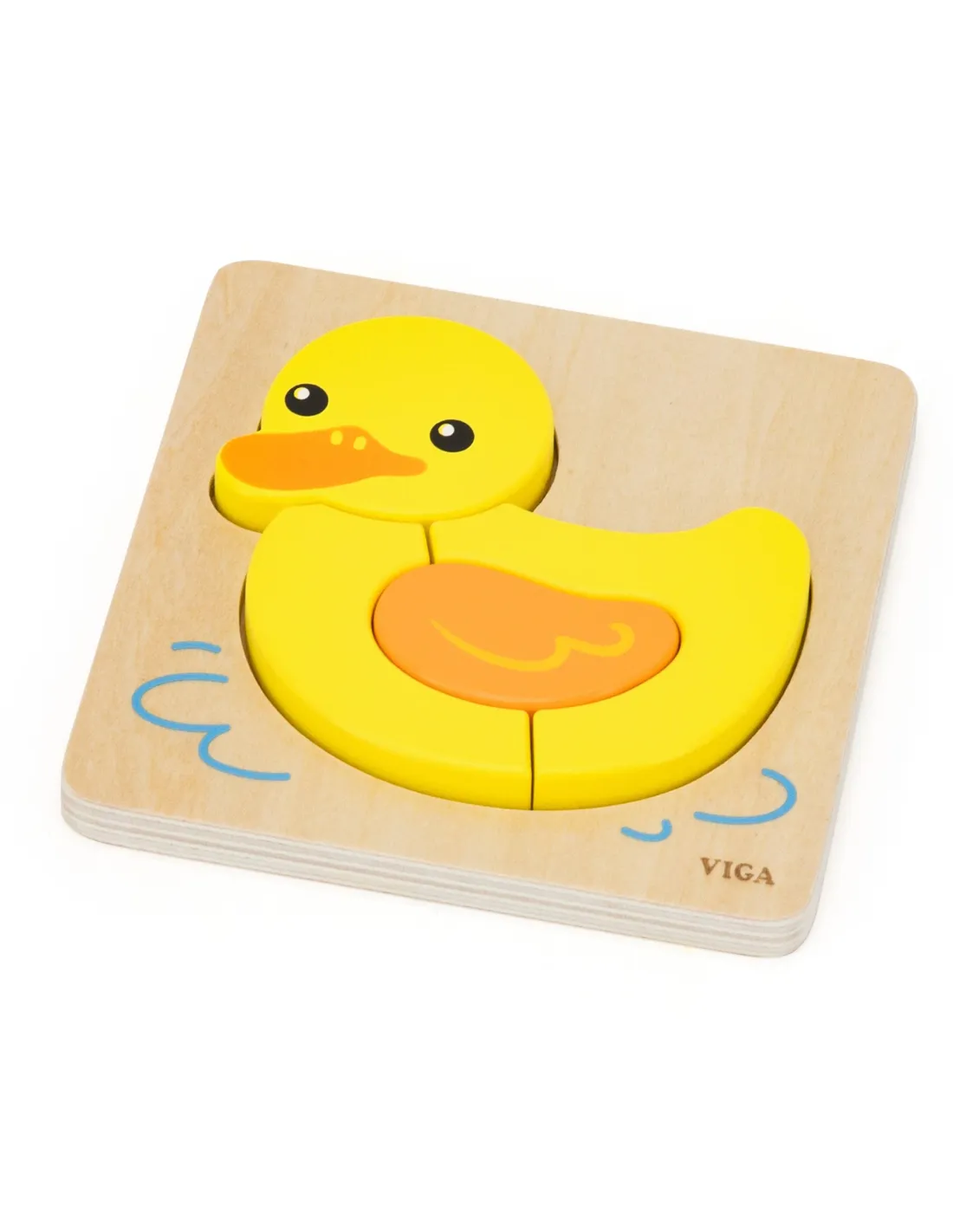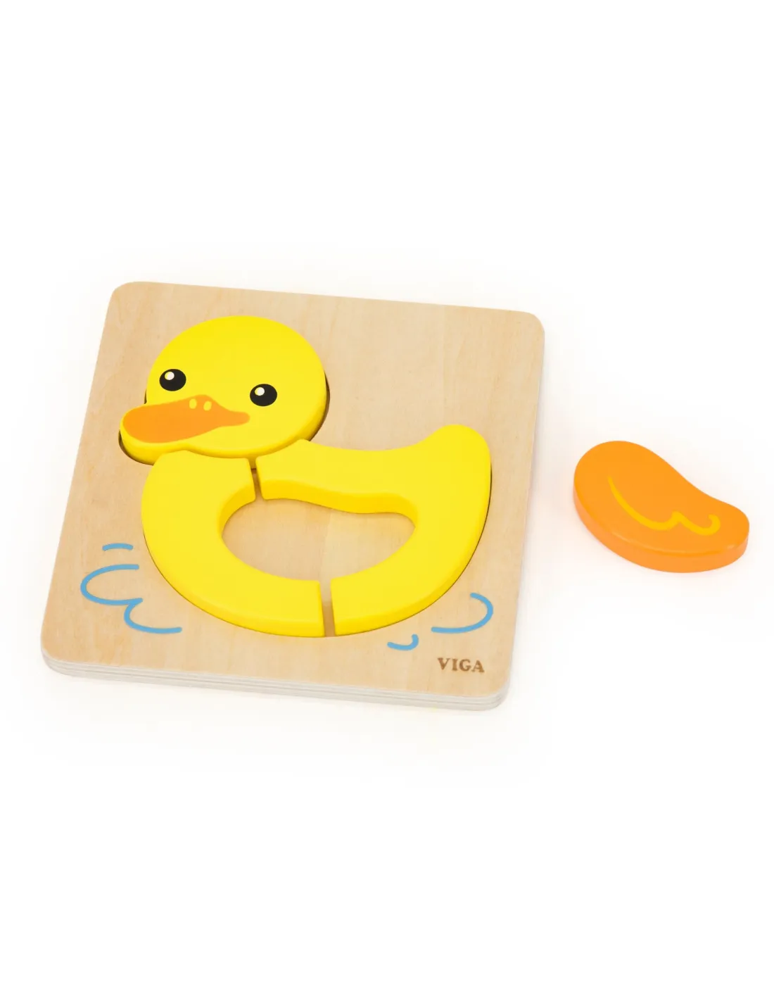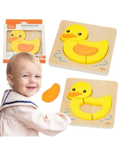 Discover the magic of learning through play with this adorable duck from Viga , who invites your little one into a world of shapes and colors ! This unique puzzle is designed specifically for little hands, offering the perfect combination of entertainment and fine motor skills training . Its vibrant, bright colors and user-friendly design immediately capture your child's attention, encouraging their first independent successes. Thanks to its rounded edges and thick pieces, play is completely safe and incredibly comfortable. It's the perfect choice for a thoughtful gift that supports your child's development.