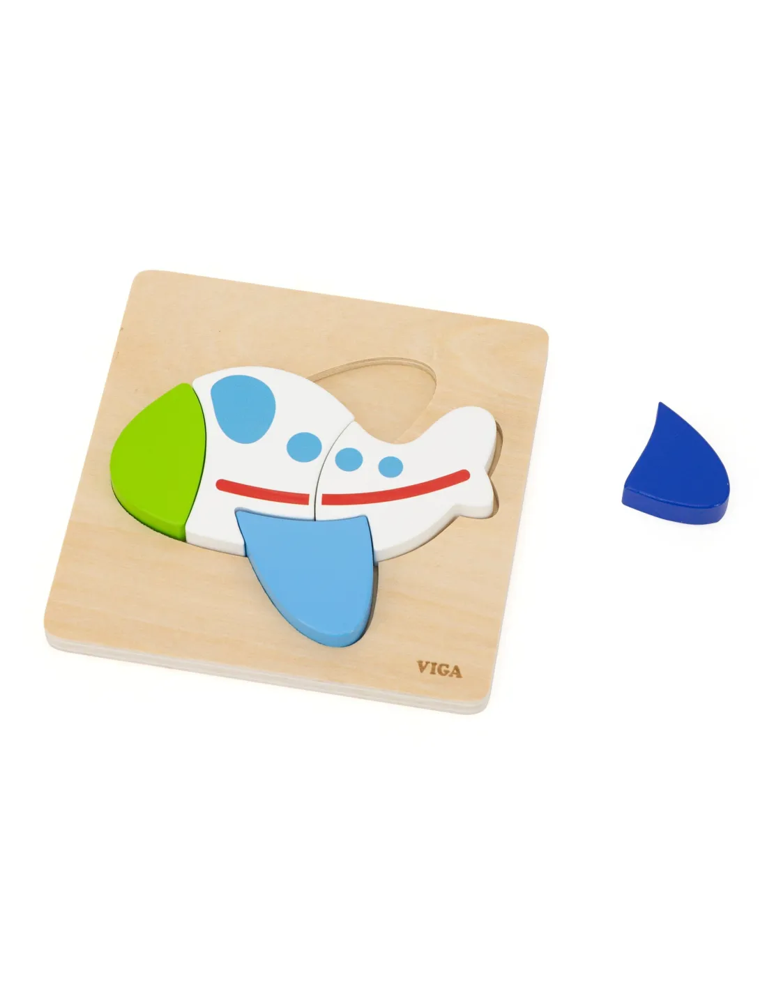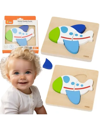 Discover the magic of learning with this airplane-shaped puzzle from Viga , which invites you to explore. This unique puzzle is designed specifically for little hands , offering the perfect combination of entertainment and fine motor skills training . Its vibrant, bright colors and user-friendly design immediately capture your child's attention, encouraging their first independent successes. Rounded edges and thick pieces ensure safe and comfortable play. It's the perfect choice for a thoughtful gift that supports your child's development.