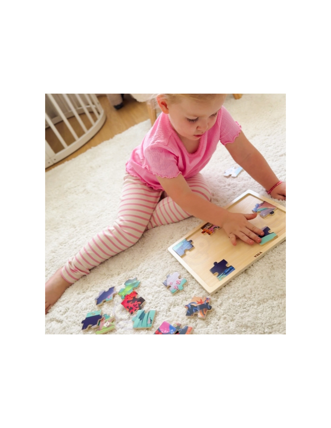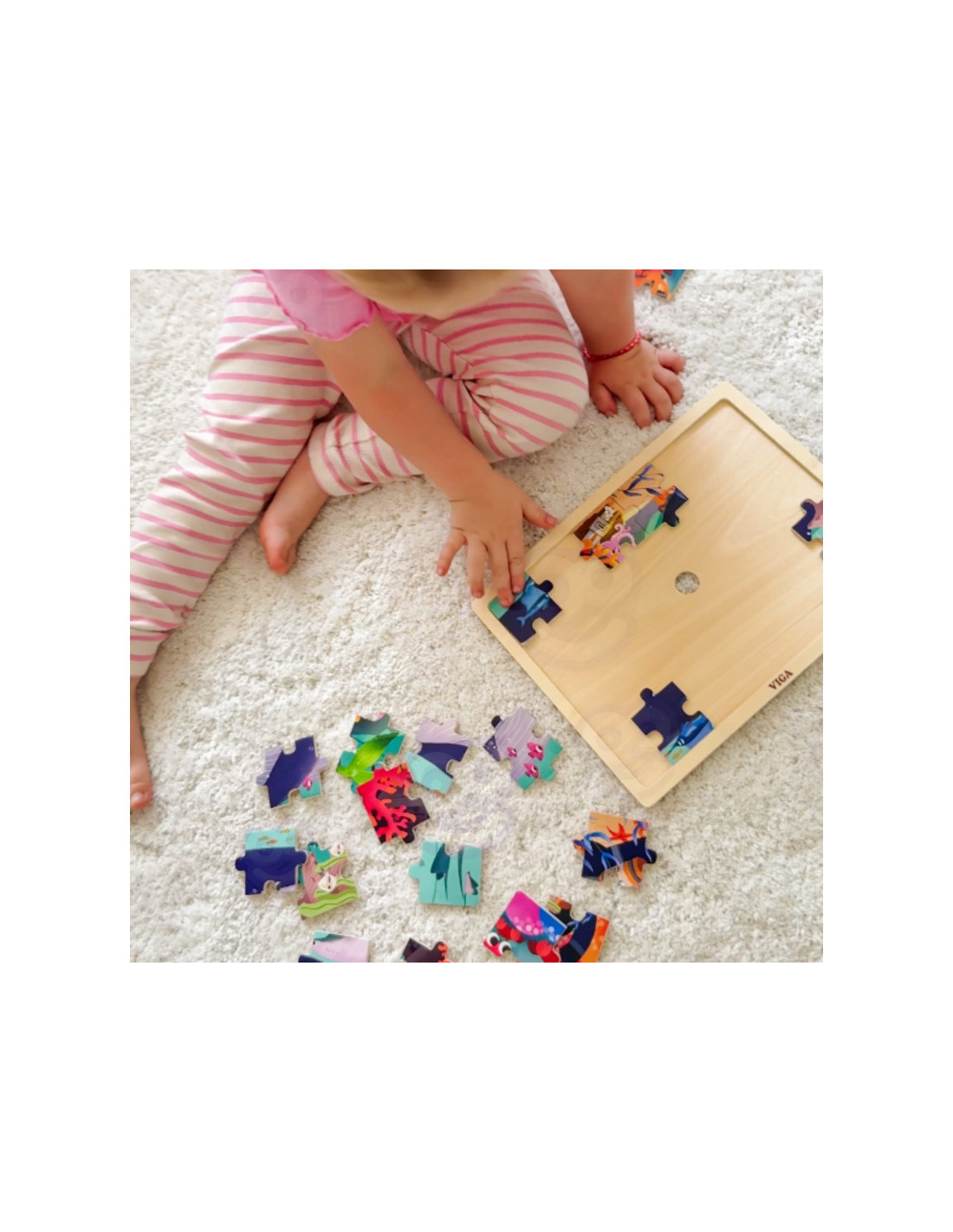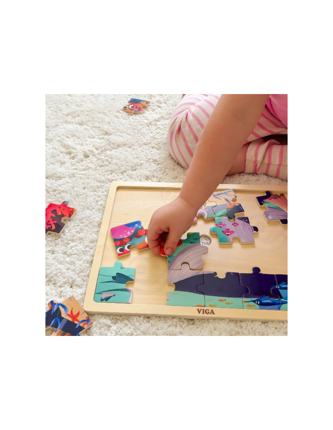 VIGA dėlionė „Jūros paslaptys“ yra serijos dalis. Visos dėlionės detalės yra įdėtos į medinį pagrindą, kuris suteikia stabilų paviršių dėlionei surinkti. Papildoma pagalba, kurią galima naudoti tolesniam mokymuisi, yra tai, kad visos dėlionės detalės yra sunumeruotos nuo 1 iki 24. Ši pagalba turėtų padėti vaikams neprarasti drąsos dėliojant dėlionę. Dėlionėje „Jūros paslaptys“ yra undinės, naro, įvairių žuvų, koralinio rifo, nuskendusio laivo ir paslėpto lobio paveikslėliai.