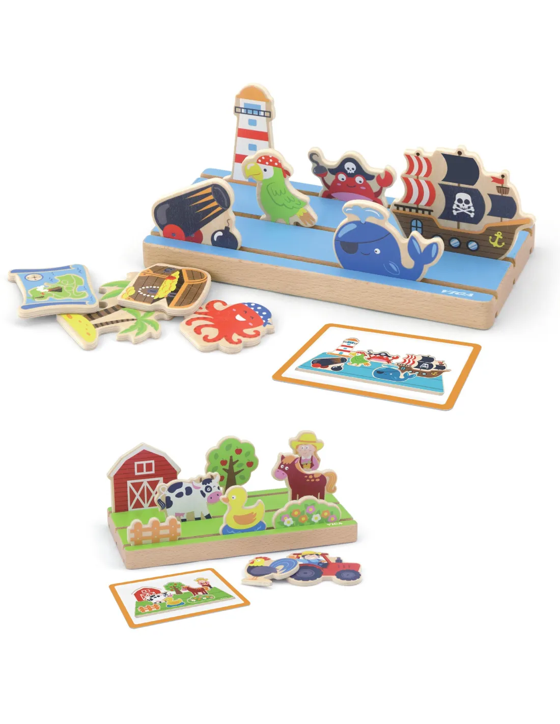 Viga medinis nuotolinio mokymosi dėlionė 2 viename Ūkis ir jūra
