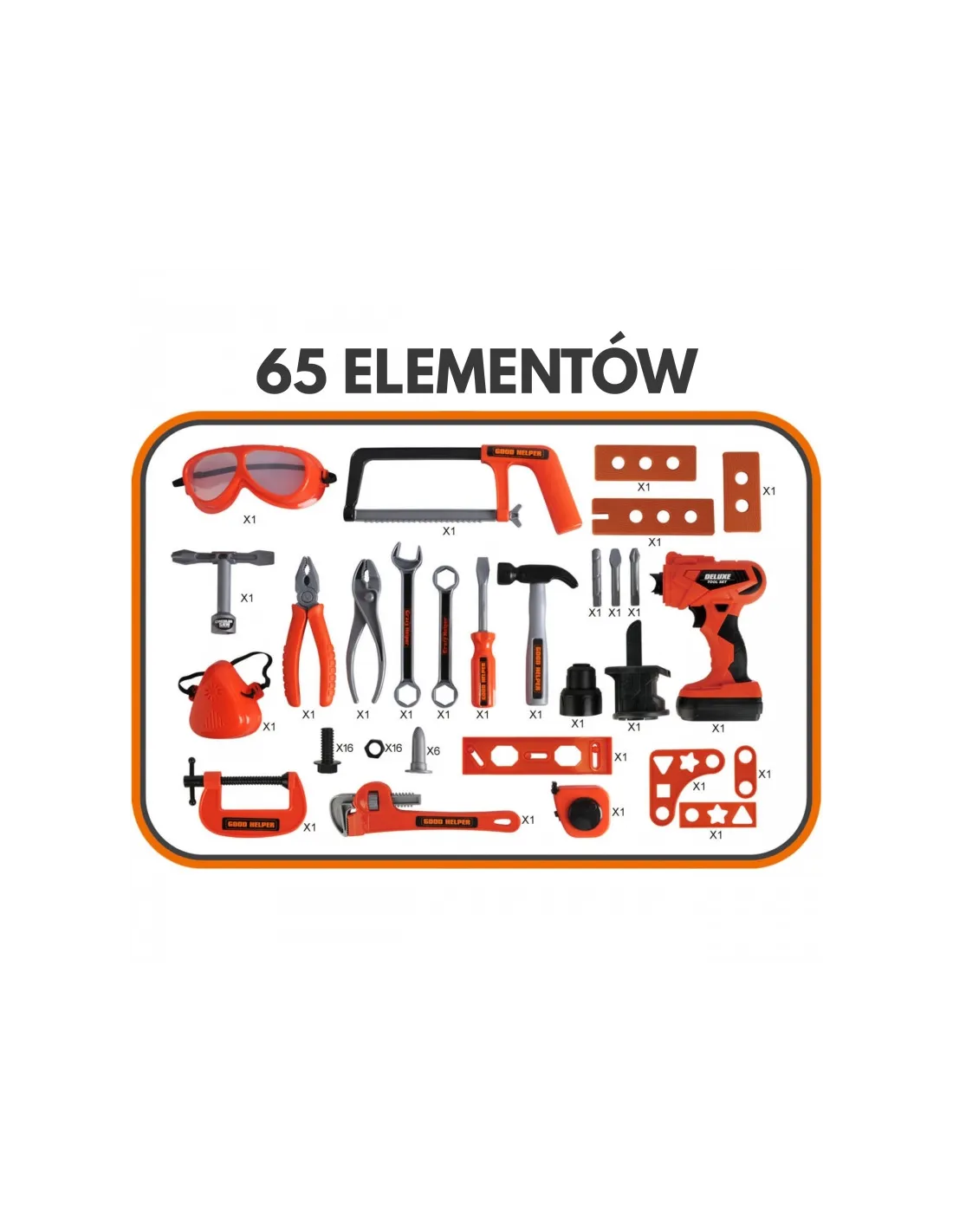 WOOPIE Mobili įrankių dėžė "Dirbtuvės 2in1" 65 el.