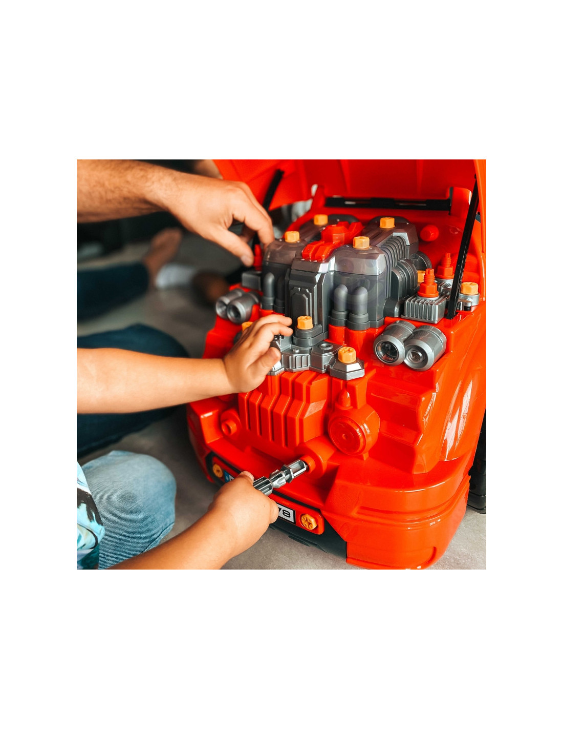 - - žaislas veiksmingai imituoja priekinę sunkvežimio dalį su pakeliamu variklio dangčiu, vairu ir prietaisų skydeliu,