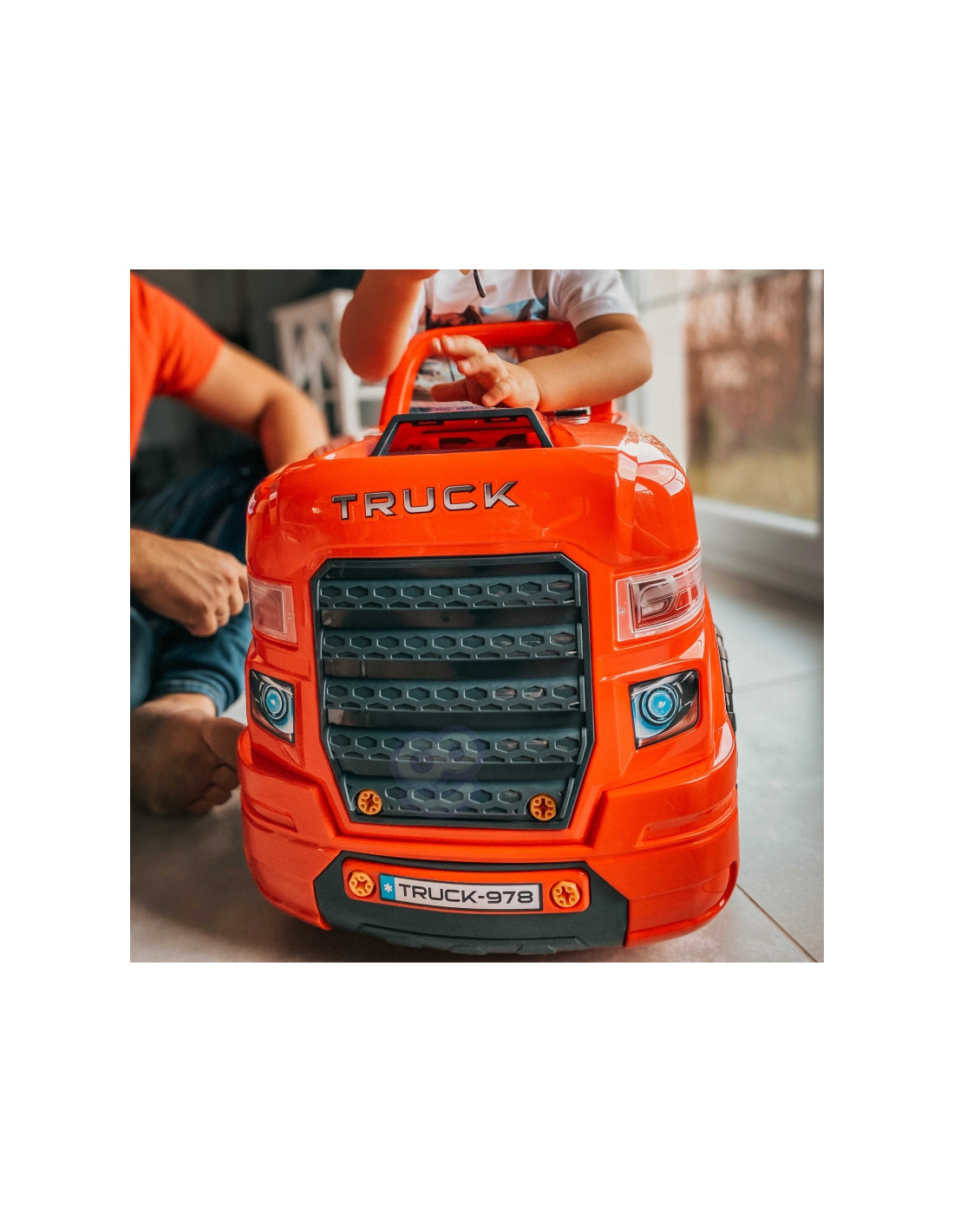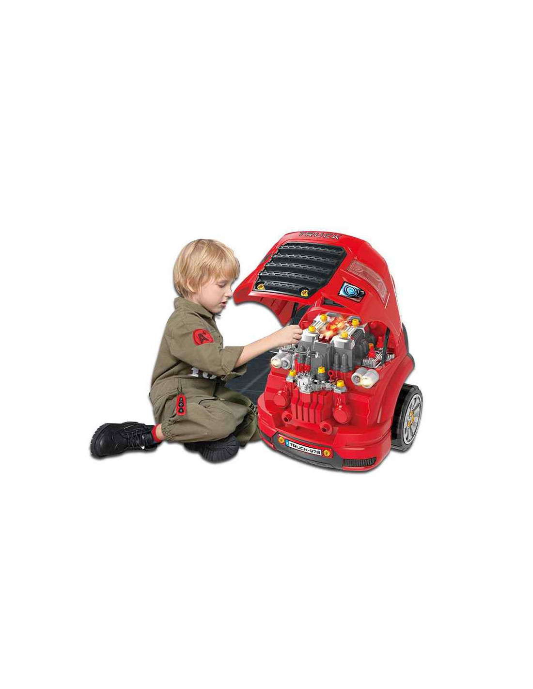 Žaislas, imituojantis WOOPIE sunkvežimio priekį su pakeliamu variklio dangčiu, vairu ir prietaisų skydeliu. Atidaręs po vairu esančią daiktadėžę, vaikas joje ras daugybę įdomybių - įrankių, rankenėlių ir varžtų. Jaunasis mechanikas gali atlikti daugybę savo transporto priemonės remonto ir apžiūros darbų (pvz., ratų, sparnų, variklio, uždegimo žvakių, radiatoriaus grotelių). Žaisle yra garso modulis (variklio garsas ir garsinis signalas) ir šviesos modulis ( šviečia priekiniai žibintai). Be to, pridedamas nuotolinio valdymo pultelis moduliams valdyti. Norint nuimti ratus, galima naudoti žaisle esantį domkratą. Tai neabejotinai unikalus rinkinys, suteikiantis nesuskaičiuojamą daugybę žaidimo galimybių.
