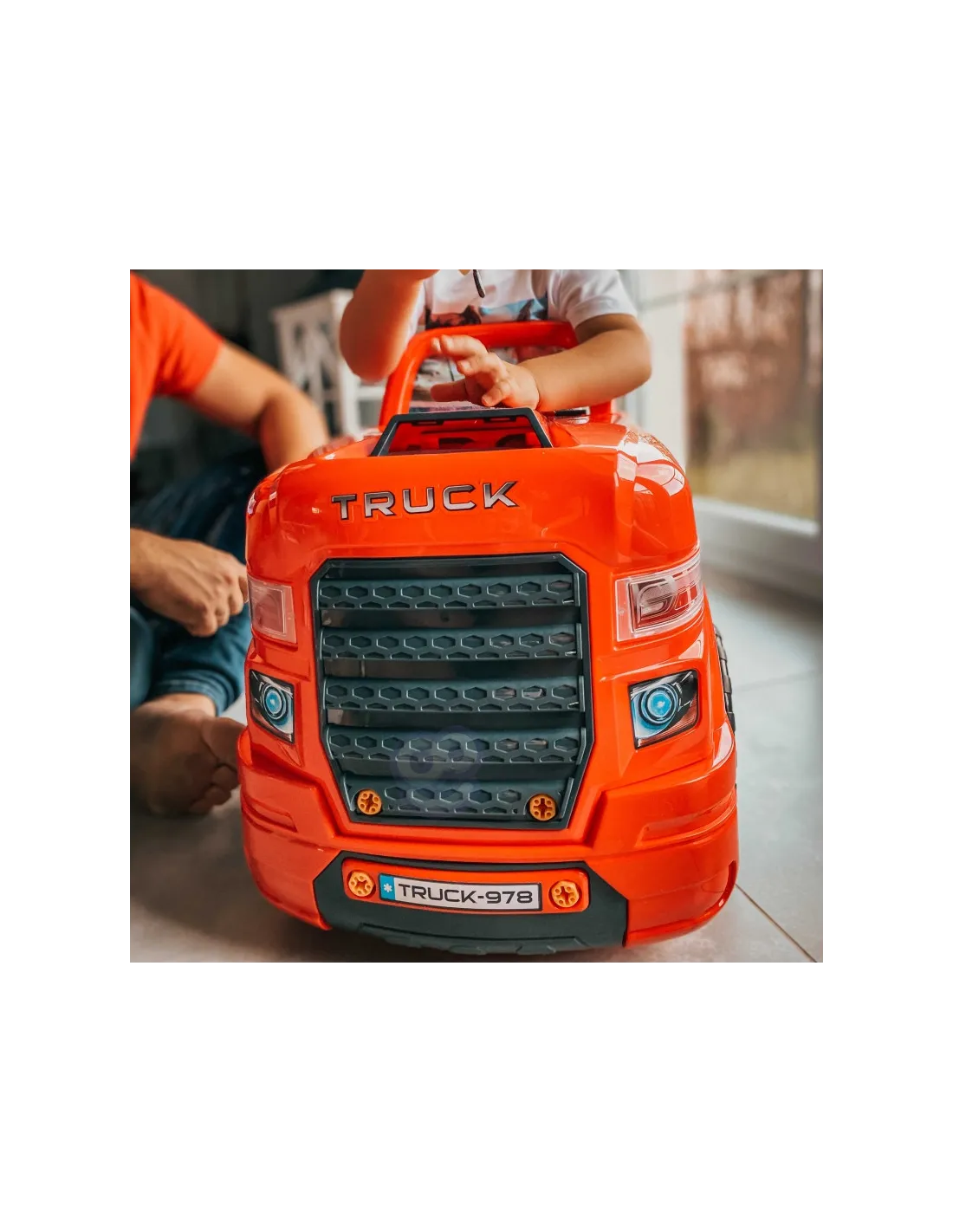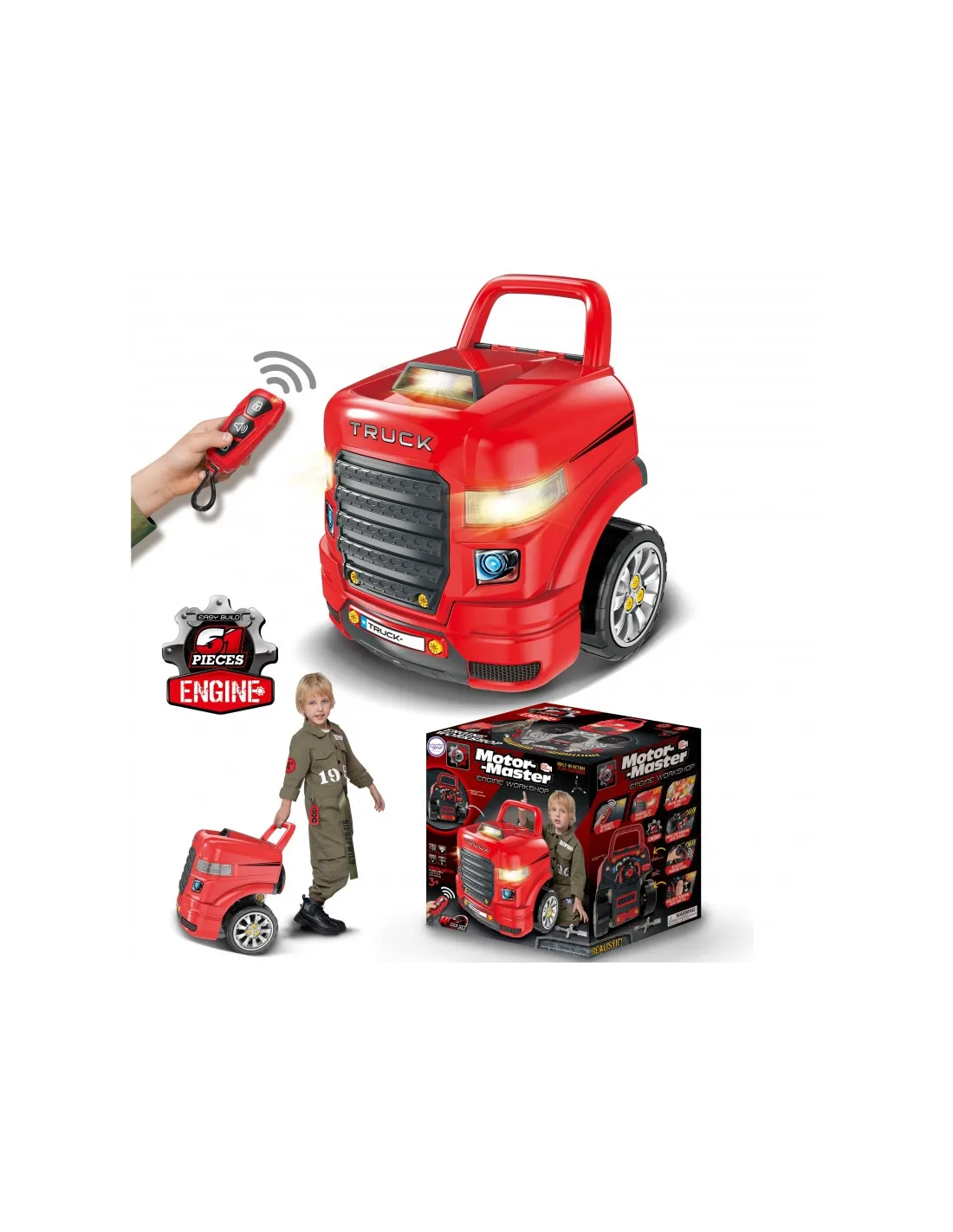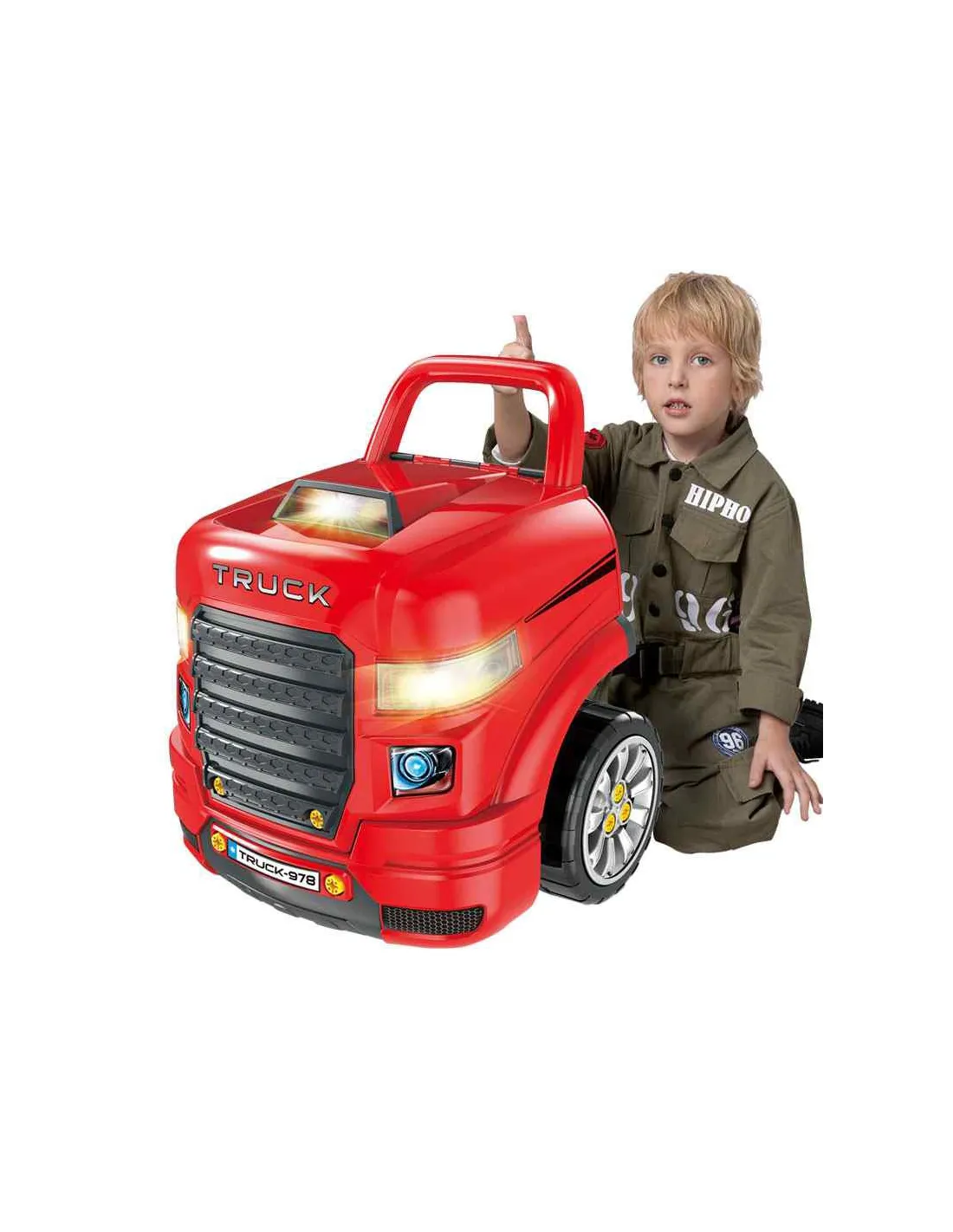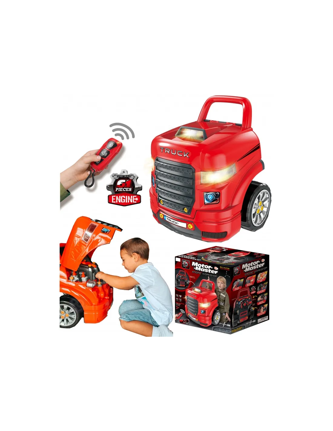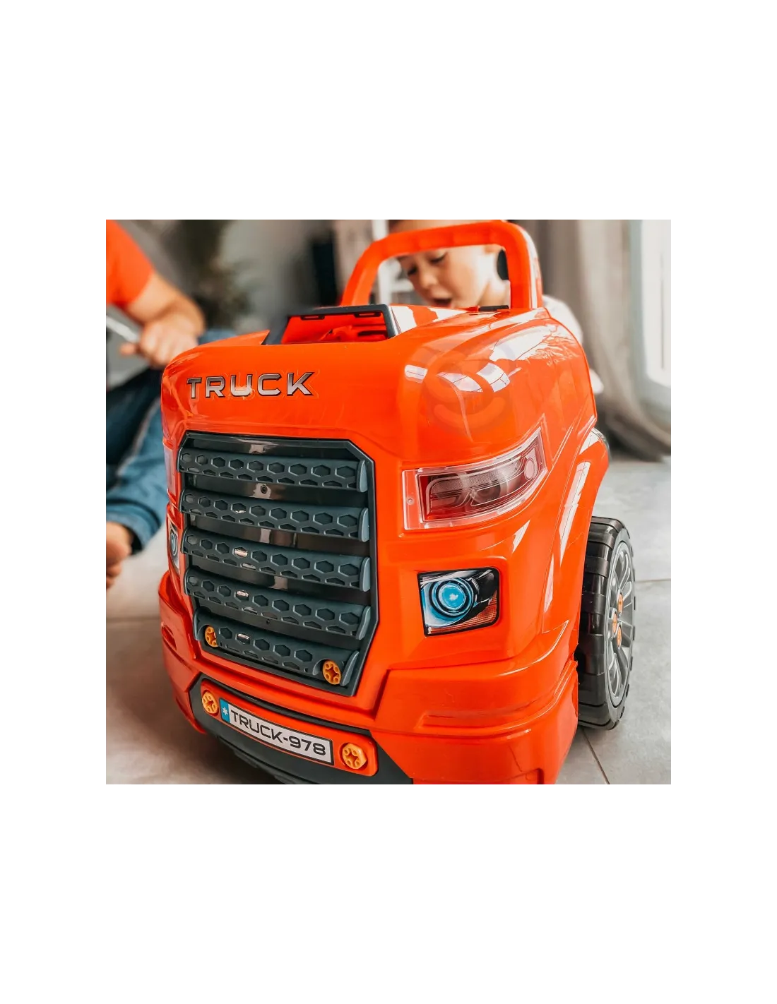 Žaislas, imituojantis WOOPIE sunkvežimio priekį su pakeliamu variklio dangčiu, vairu ir prietaisų skydeliu. Atidaręs po vairu esančią daiktadėžę, vaikas joje ras daugybę įdomybių - įrankių, rankenėlių ir varžtų. Jaunasis mechanikas gali atlikti daugybę savo transporto priemonės remonto ir apžiūros darbų (pvz., ratų, sparnų, variklio, uždegimo žvakių, radiatoriaus grotelių). Žaisle yra garso modulis (variklio garsas ir garsinis signalas) ir šviesos modulis ( šviečia priekiniai žibintai). Be to, pridedamas nuotolinio valdymo pultelis moduliams valdyti. Norint nuimti ratus, galima naudoti žaisle esantį domkratą. Tai neabejotinai unikalus rinkinys, suteikiantis nesuskaičiuojamą daugybę žaidimo galimybių.