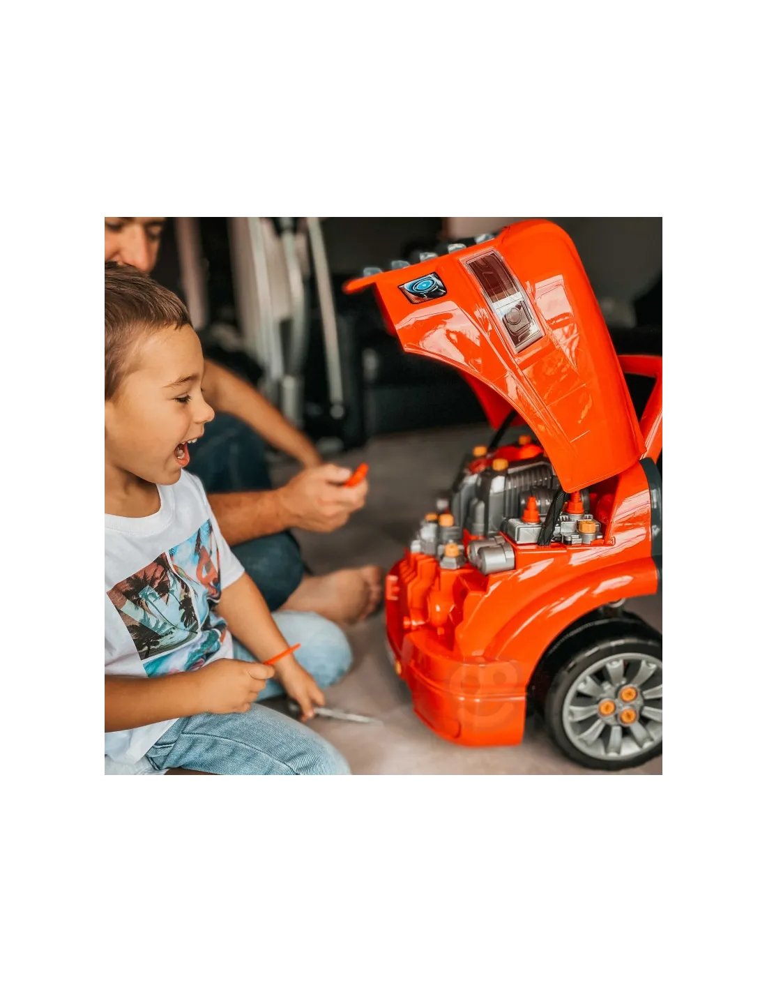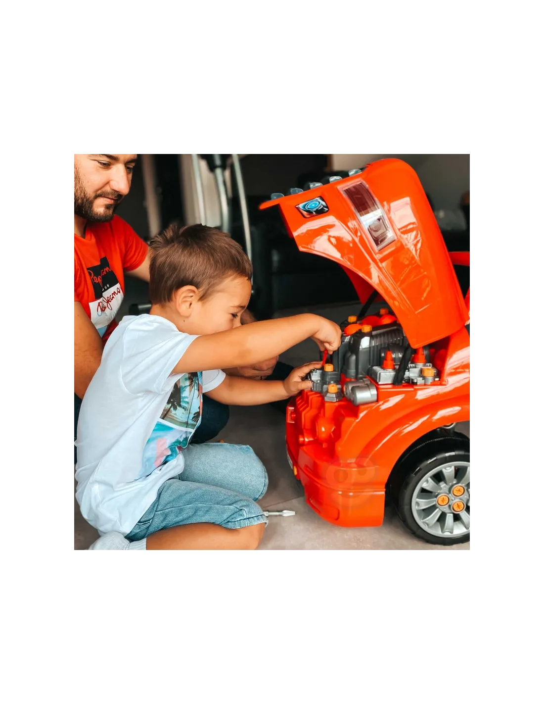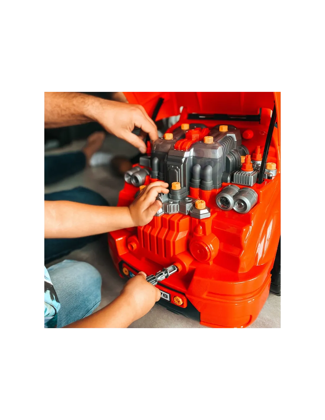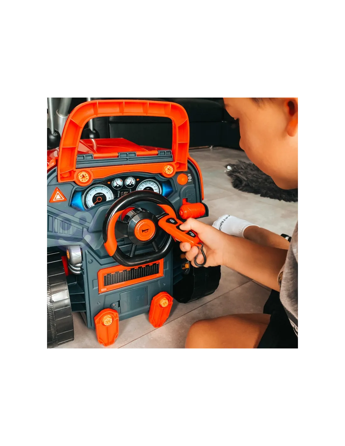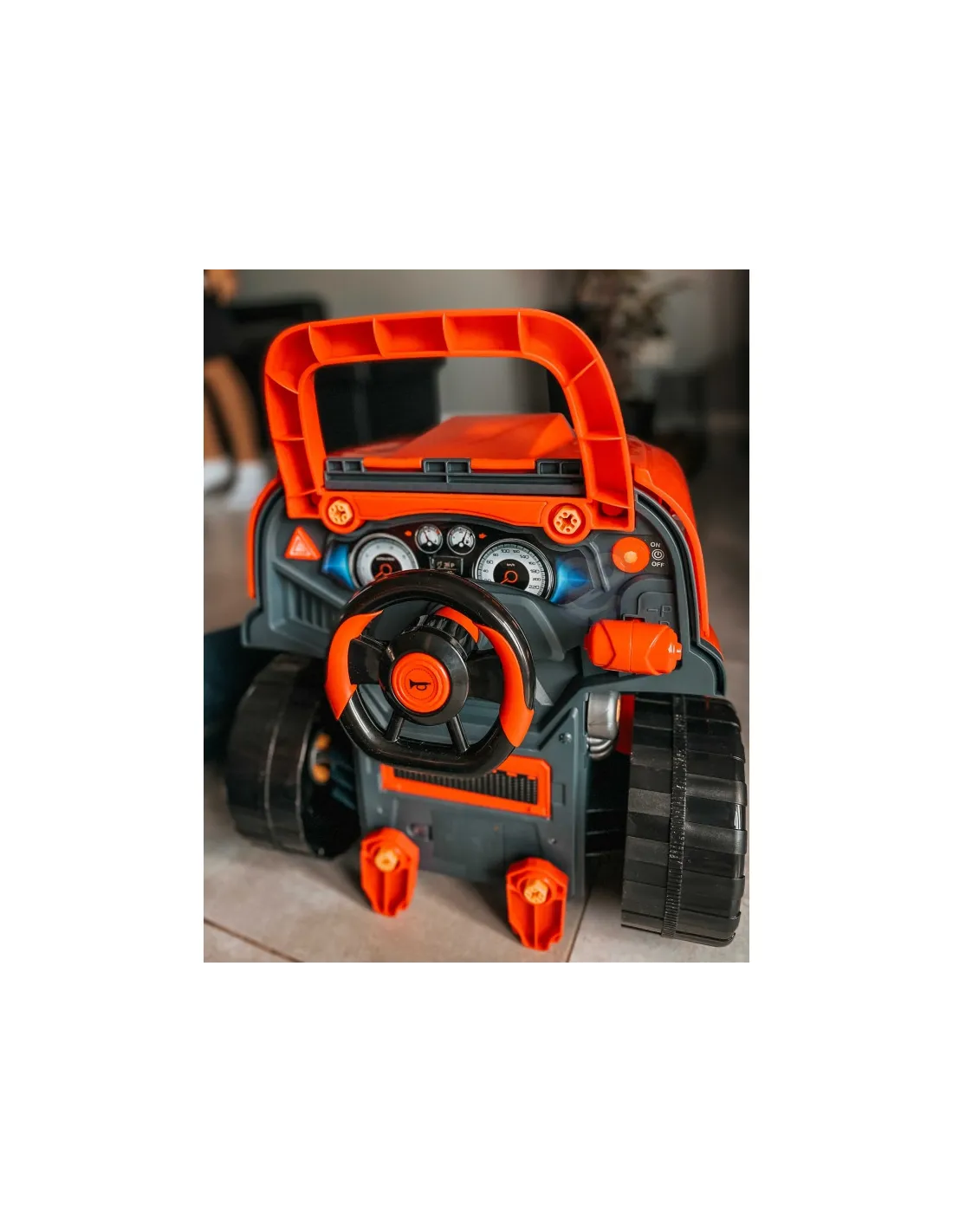 Žaislas, imituojantis WOOPIE sunkvežimio priekį su pakeliamu variklio dangčiu, vairu ir prietaisų skydeliu. Atidaręs po vairu esančią daiktadėžę, vaikas joje ras daugybę įdomybių - įrankių, rankenėlių ir varžtų. Jaunasis mechanikas gali atlikti daugybę savo transporto priemonės remonto ir apžiūros darbų (pvz., ratų, sparnų, variklio, uždegimo žvakių, radiatoriaus grotelių). Žaisle yra garso modulis (variklio garsas ir garsinis signalas) ir šviesos modulis ( šviečia priekiniai žibintai). Be to, pridedamas nuotolinio valdymo pultelis moduliams valdyti. Norint nuimti ratus, galima naudoti žaisle esantį domkratą. Tai neabejotinai unikalus rinkinys, suteikiantis nesuskaičiuojamą daugybę žaidimo galimybių.