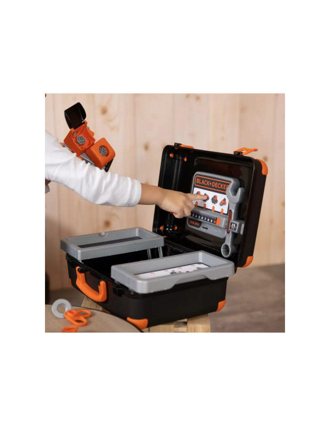 "Black & Decker" įrankių dėklas - tai kūrybiškas rinkinys vaikams, mėgstantiems konstruoti ir meistrauti. Komplekte esantys atsuktuvai, veržliarakčiai ir varžtai leidžia žaisti įvairiai. Žaislai pritaikyti mažoms vaiko rankoms, kad mažyliams statyti būtų intuityvu ir patogu. Žaidžiant su "Black & Decker" rinkiniu skatinamas vaiko motorikos vystymasis. Dėklas yra patogus ir lengvai nešiojamas. Viduje yra vietos visiems priedams.
