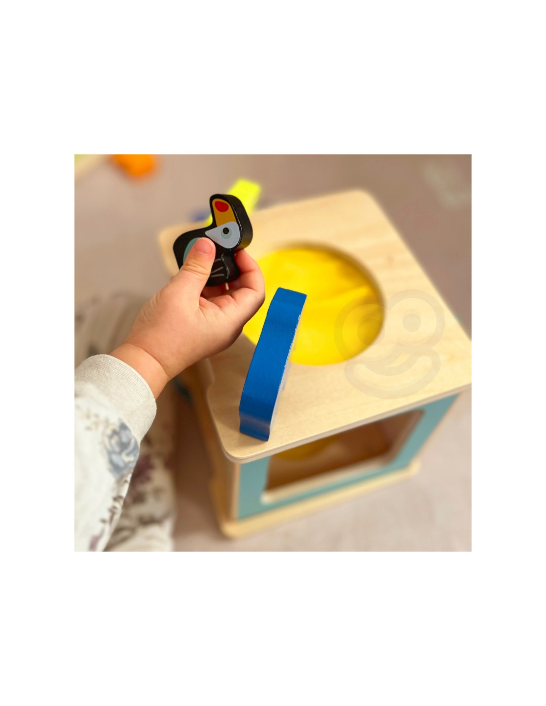 - - Smulkioji motorika - Objektų valdymas dėžutės viduje ir tikslus dėlionių dėliojimas lavina pirštų miklumą.