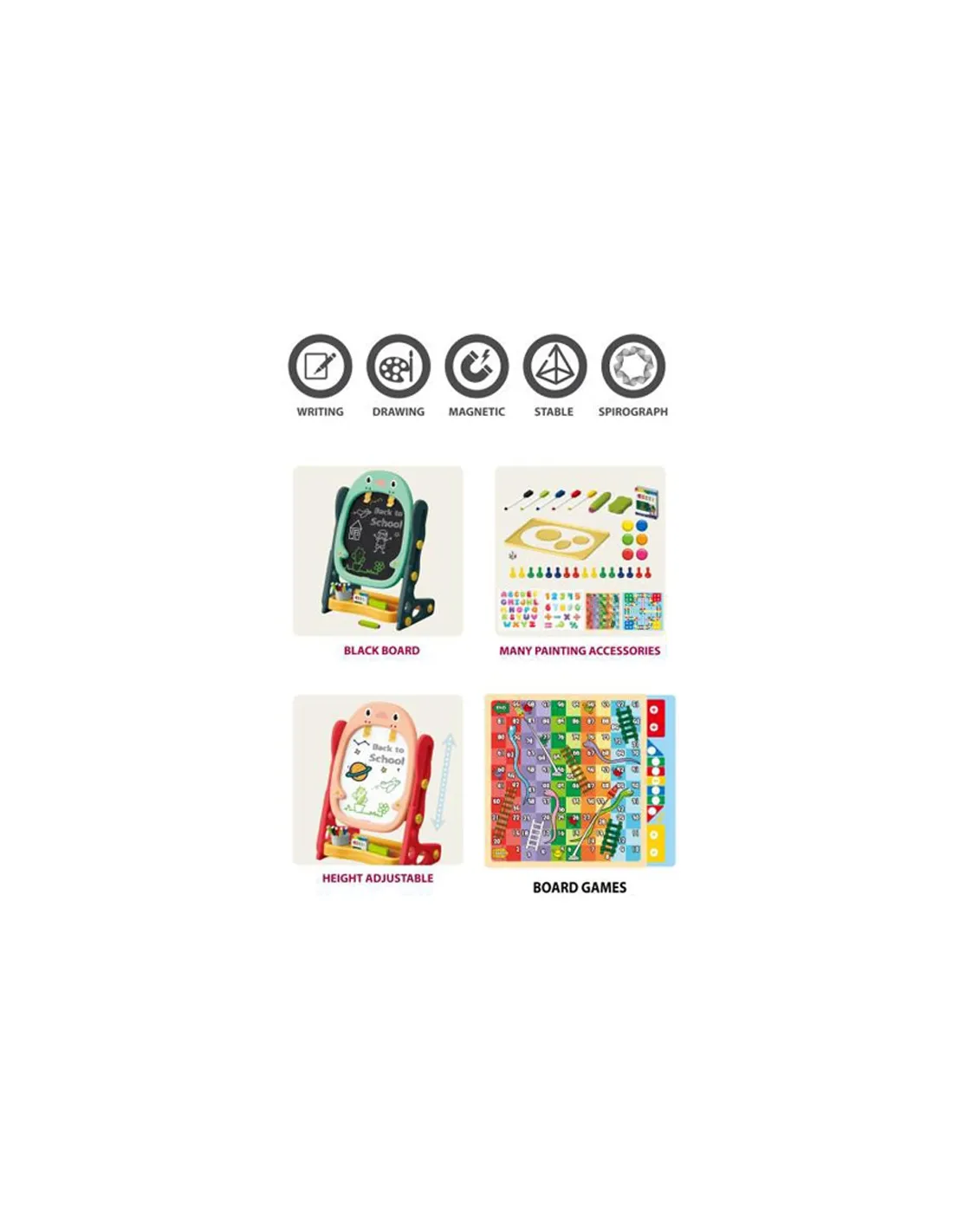 WOOPIEdvipusė magnetinė piešimo lenta yra universali priemonė mokytis ir gilinti meninius įgūdžius. Į rinkinį įeina visas komplektas priedų, skirtų įvairiapusiškam naudojimui. Lentą lengva surinkti , be to, joje galima reguliuoti aukštį, kad ji tiktų bet kuriam vaikui. Žaislas yra būtinas kasdieniam vaiko vystymuisi.