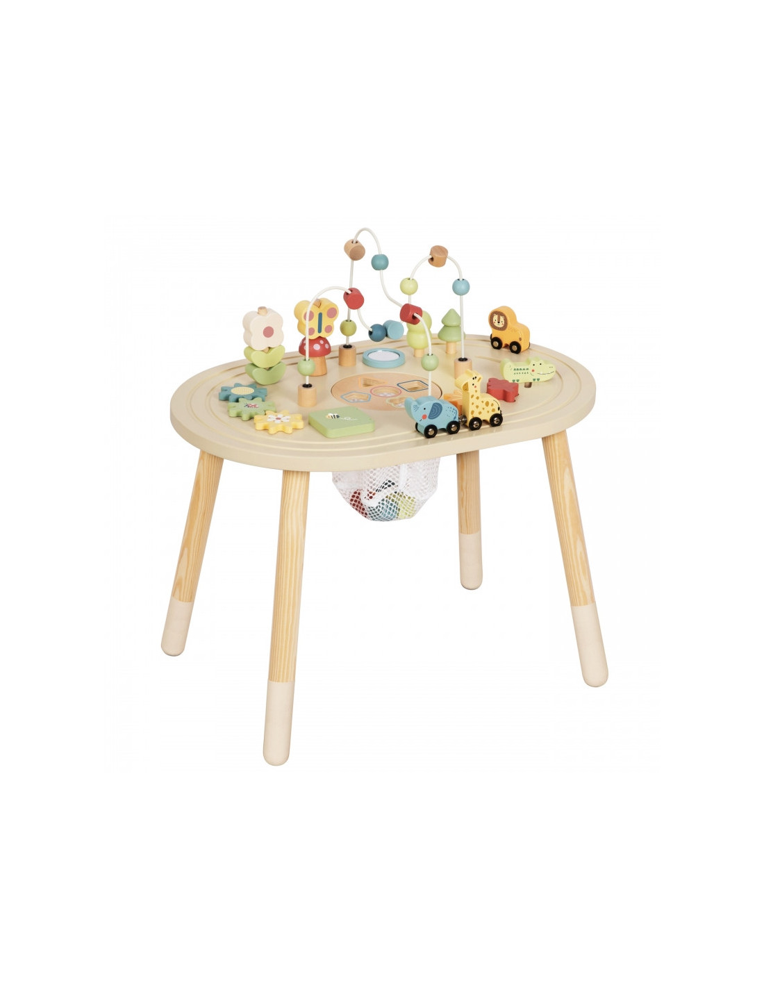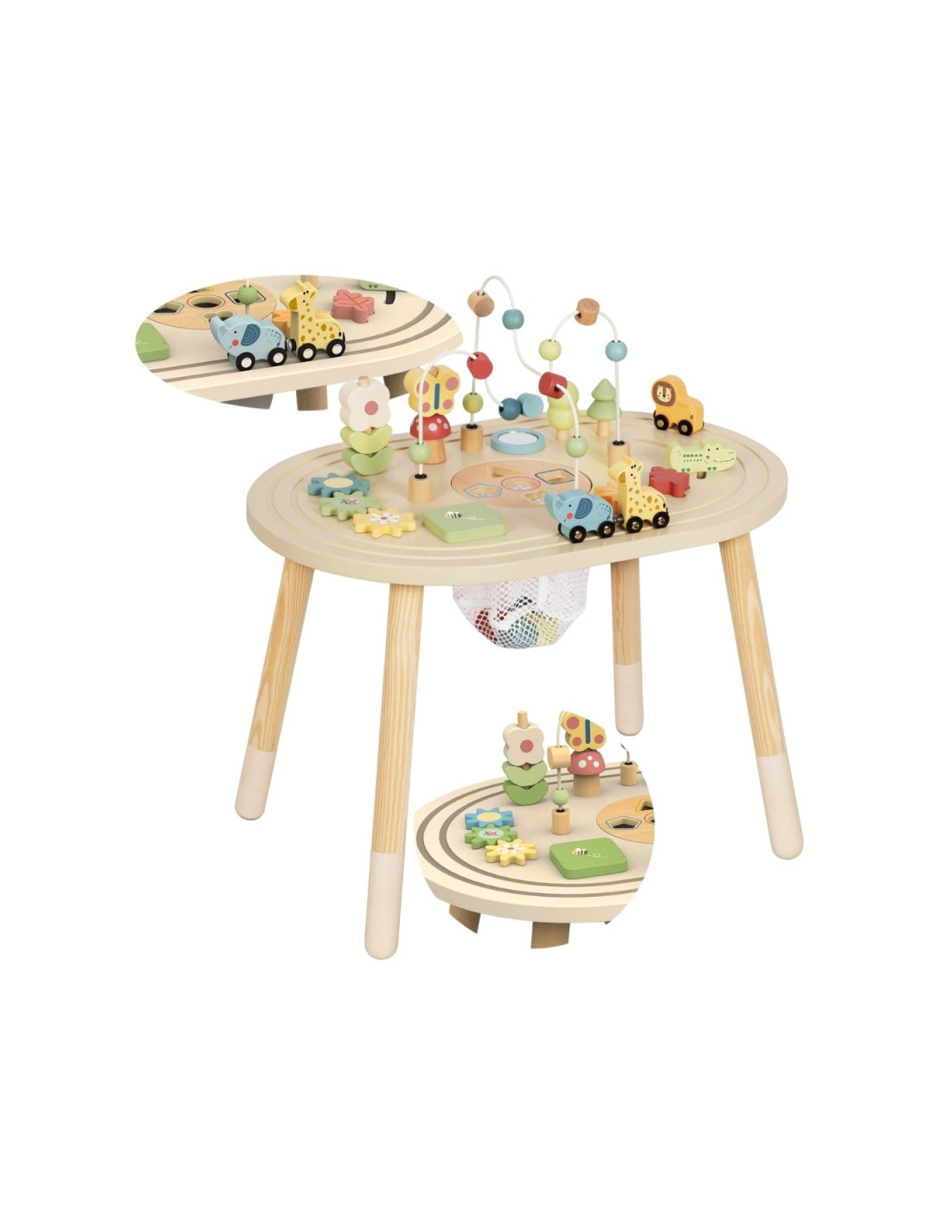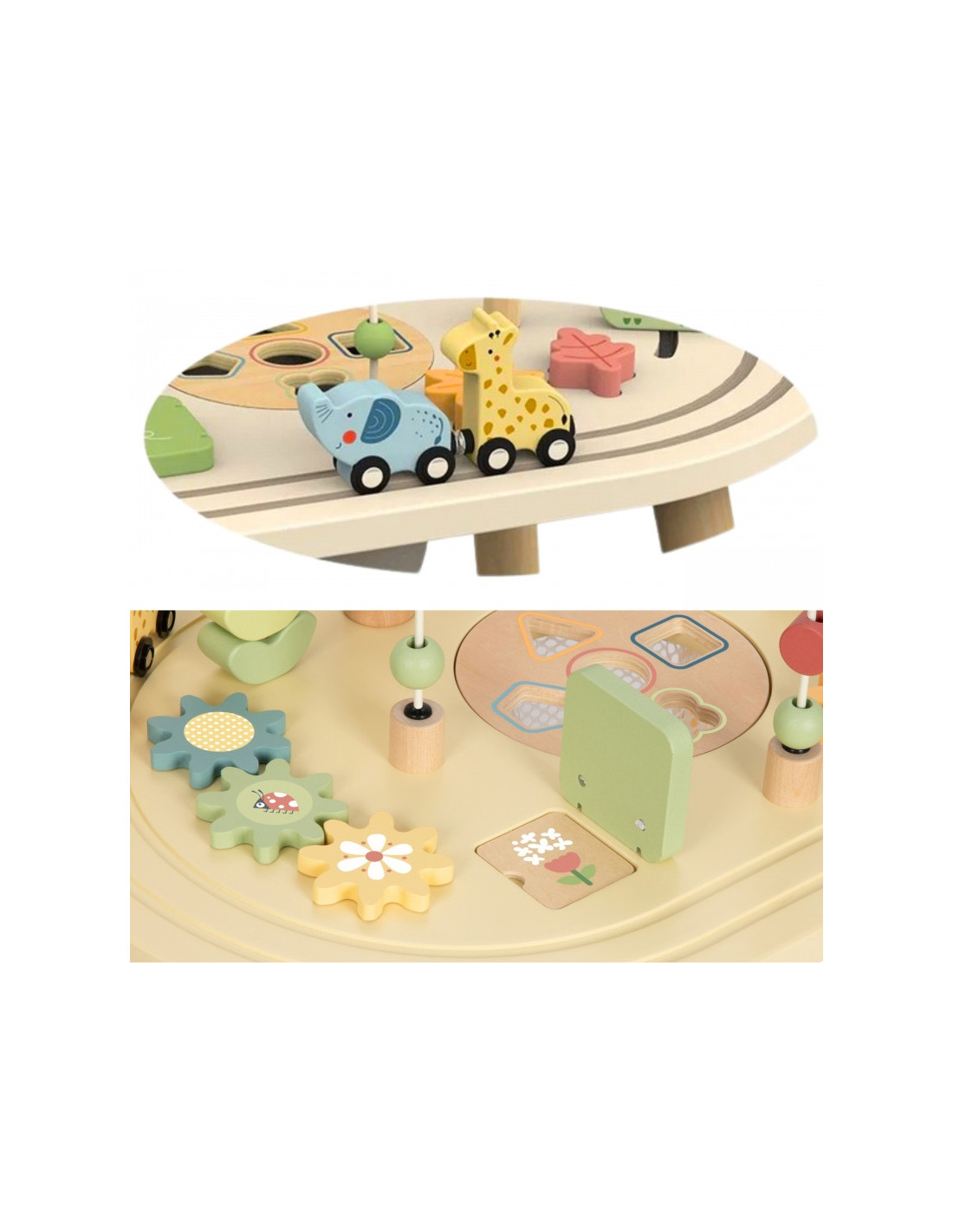Šis žavus medinis mokomasis stalas idealiai tinka patiems mažiausiems pasaulio tyrinėtojams! Šis stalas yra tikras lobis jūsų mažyliui - jis iš karto įtraukia į spalvų, formų ir linksmų garsų pasaulį, kartu ugdydamas daug svarbių įgūdžių. Leiskite vaikui laisvai tyrinėti ir mokytis saugioje aplinkoje, kur kiekvienas prisilietimas ir bandymas pritapti yra maža sėkmė. Tai puikus draugas, su kuriuo galėsite valandų valandas žaisti, kuris auga kartu su jūsų vaiku ir niekada nenuobodžiauja.