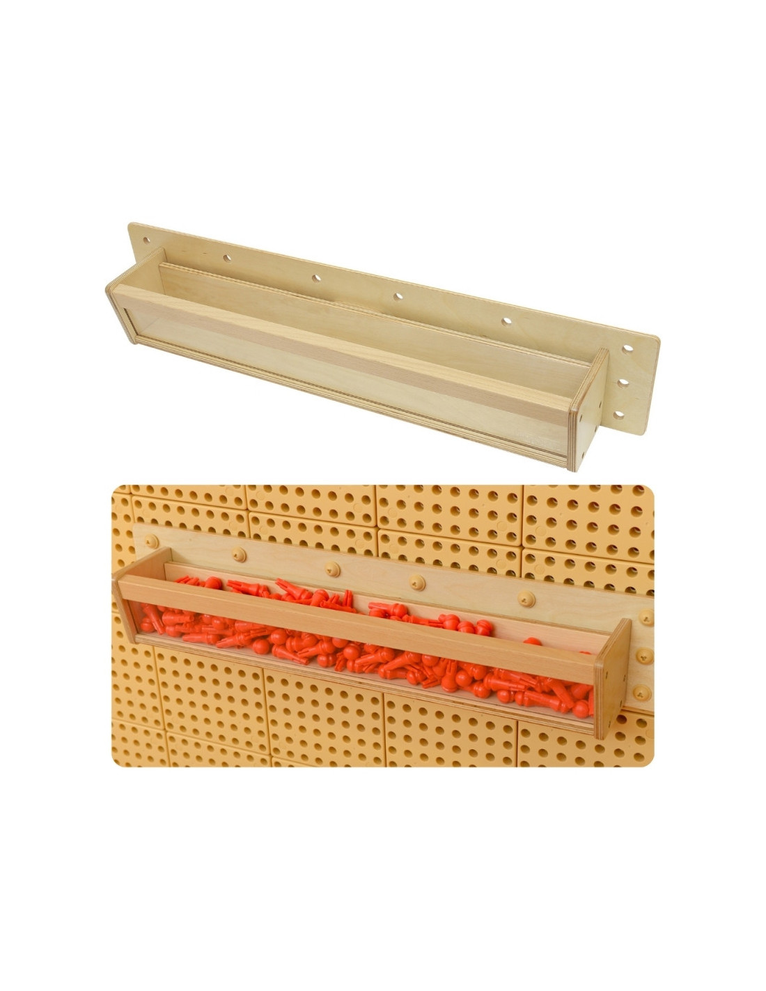 MASTERKIDZ medinis konteineris su skaidria sienele 80 cm ilgio, skirtas STEM mokslo ir kūrybinėms lentoms
